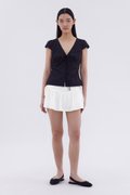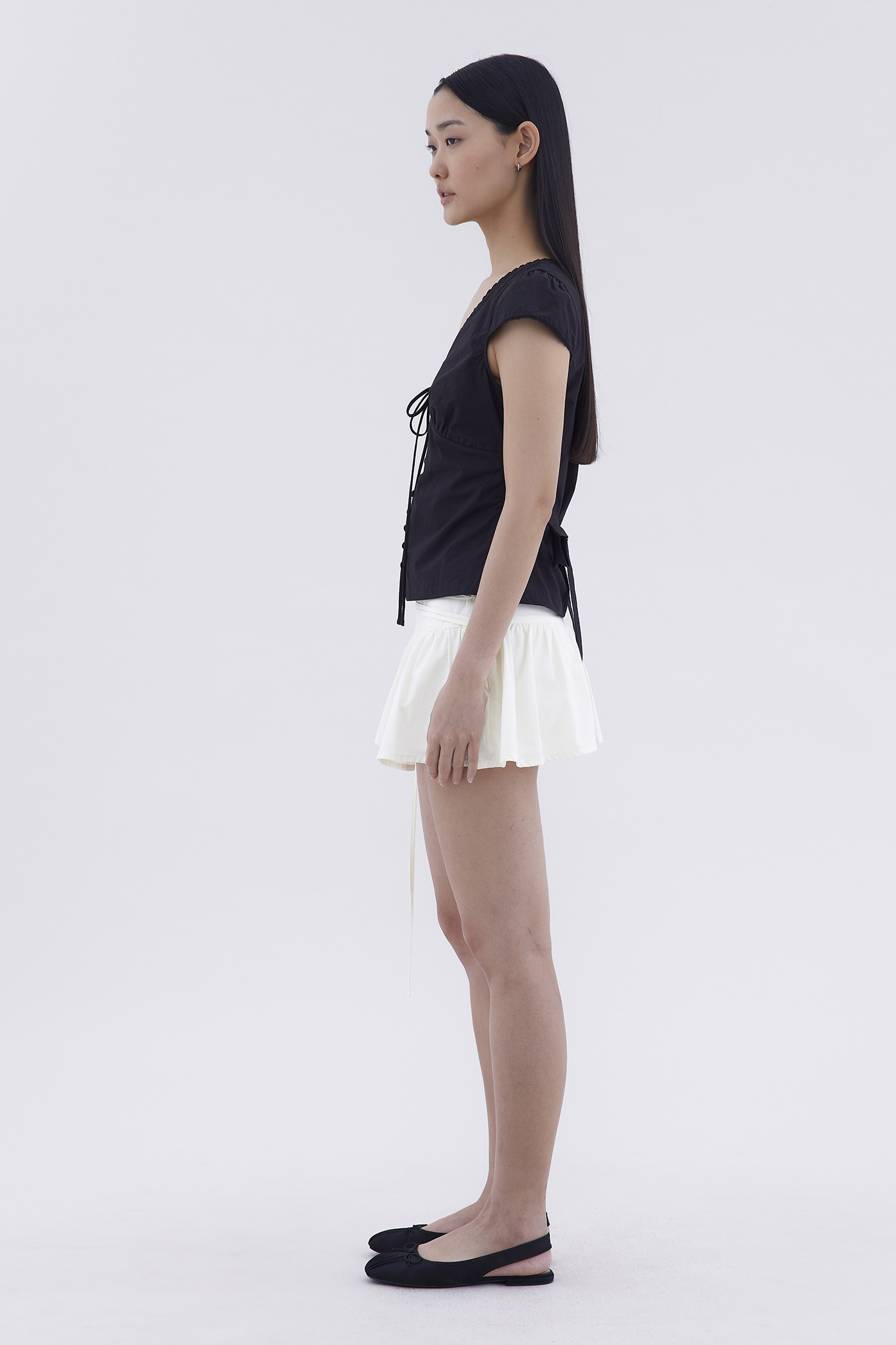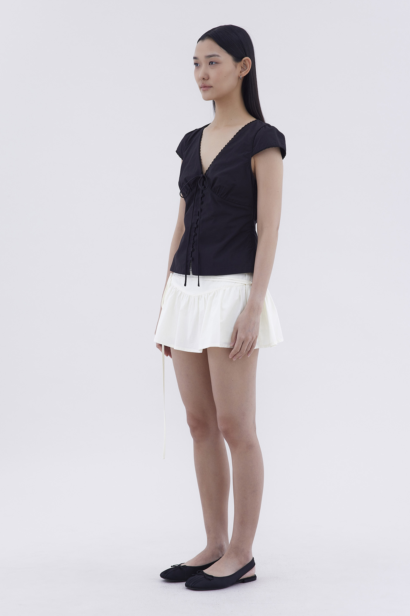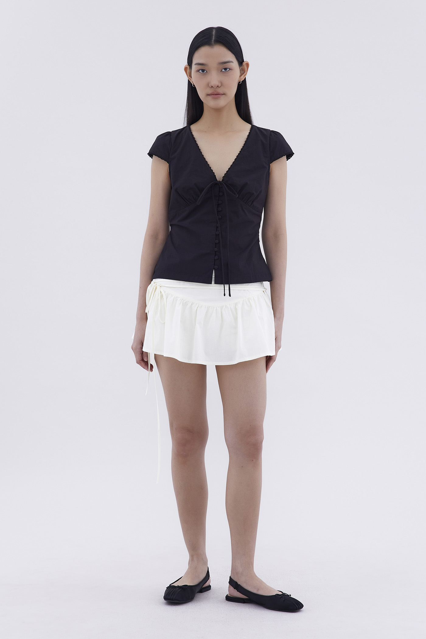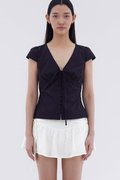 Details that count. Made from crisp and softly structured cotton, this lace-trimmed blouse features a V-shaped bustier neckline with a tie-strap, cap sleeves, front loop buttons and a back tie-strap. Worn in a slim fit with a side zip closure.