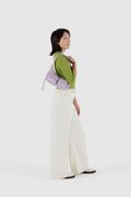 Made of recycled heavyweight nylon with recycled ripstop lining, this bag features two exterior flap pockets with magnetic closure and an adjustable quilted strap.