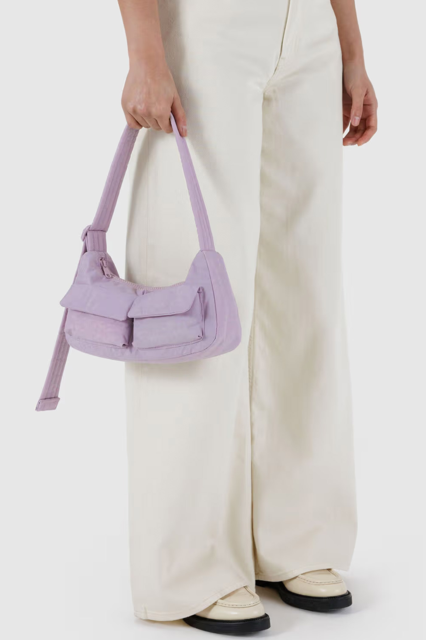 A baguette style purse with two external flap pockets for quick access to your essentials.
