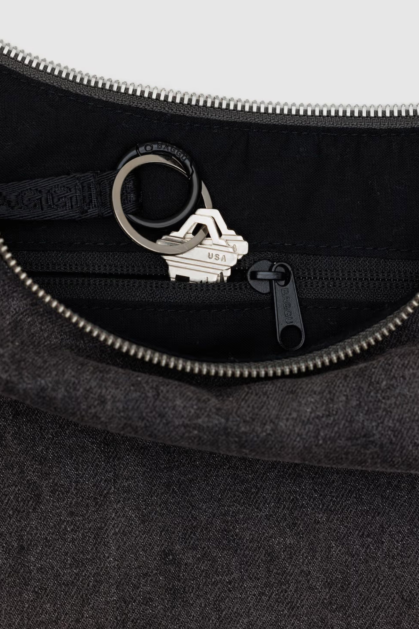 - Internal black logo key leash & metal carabiner