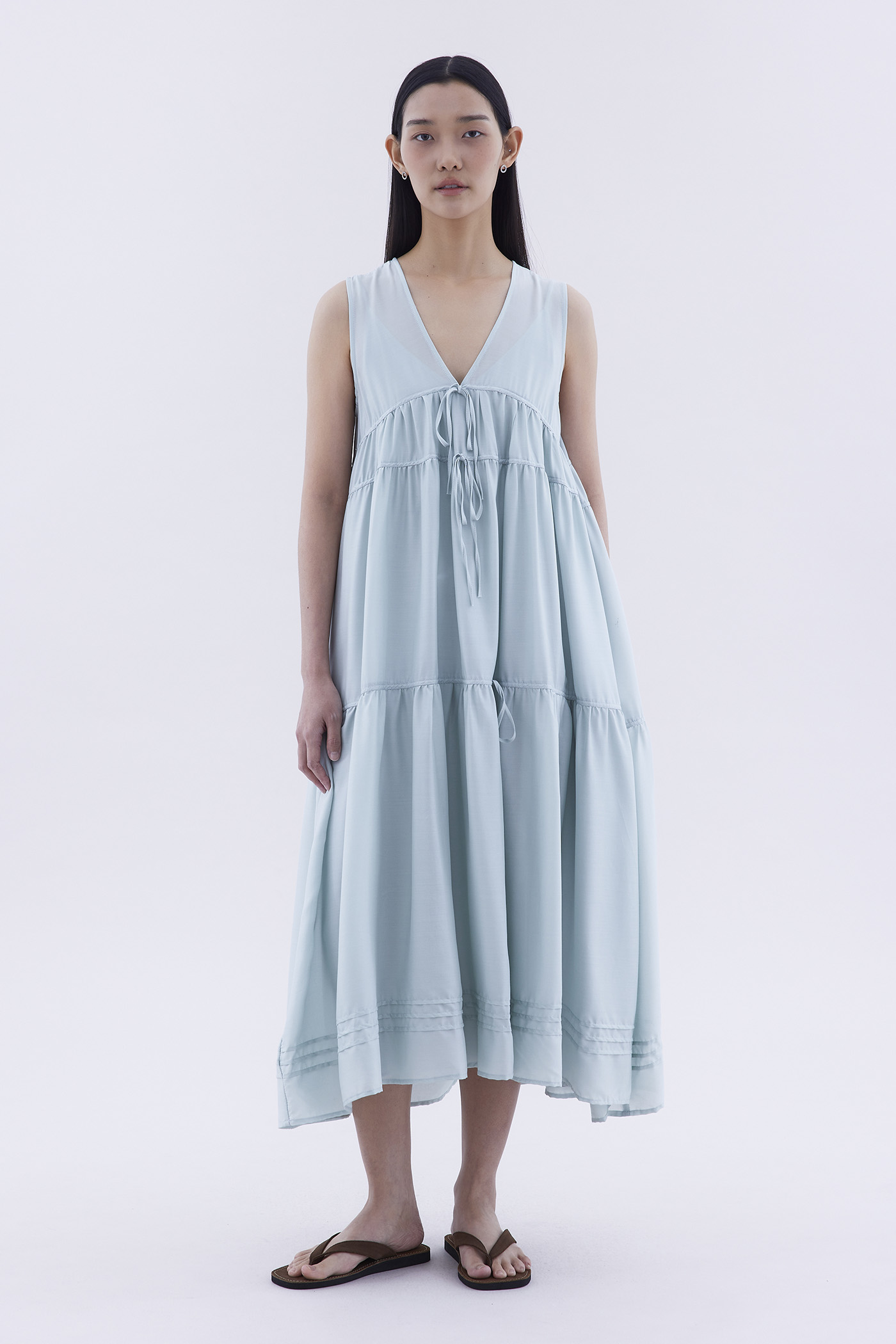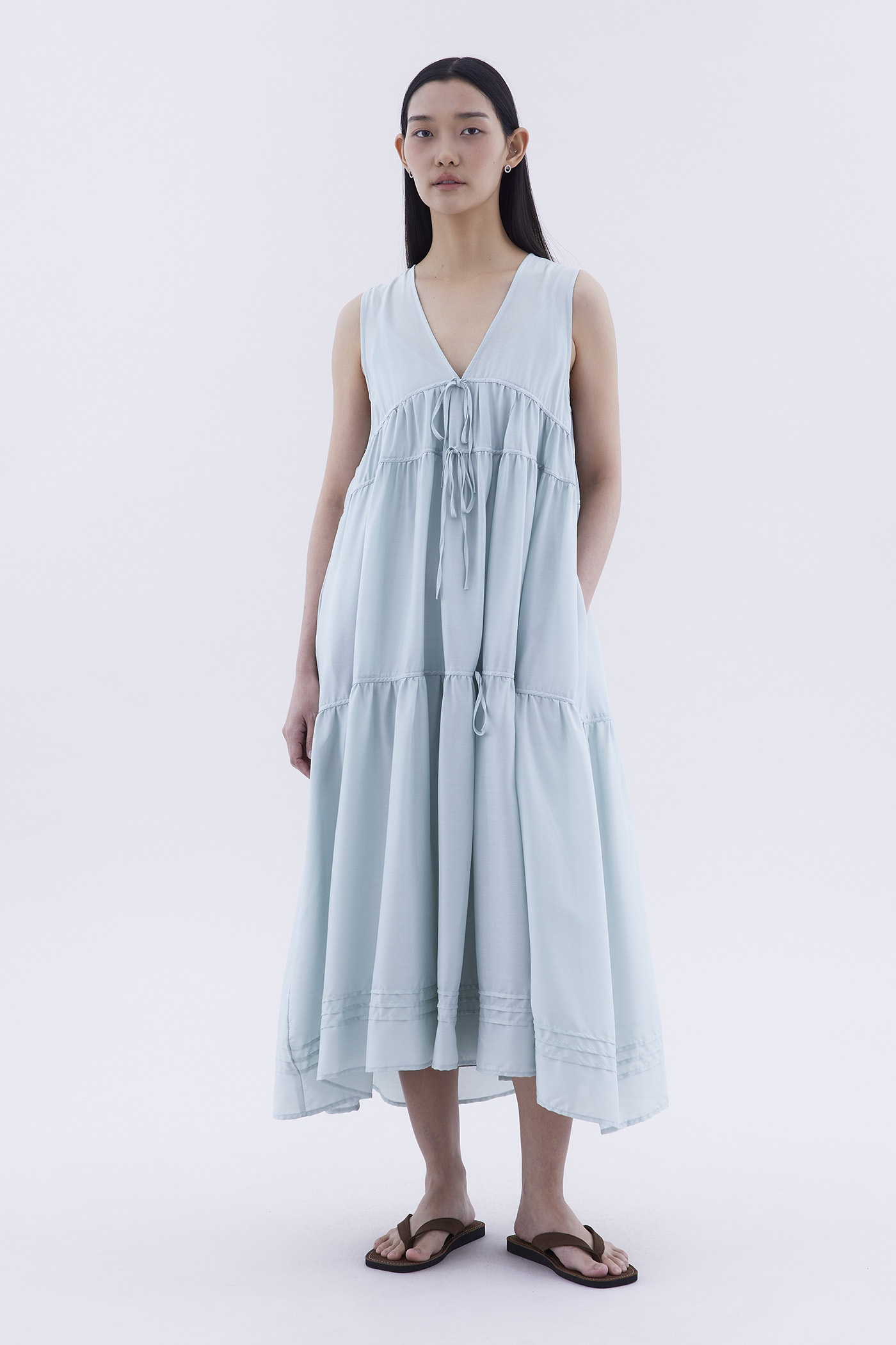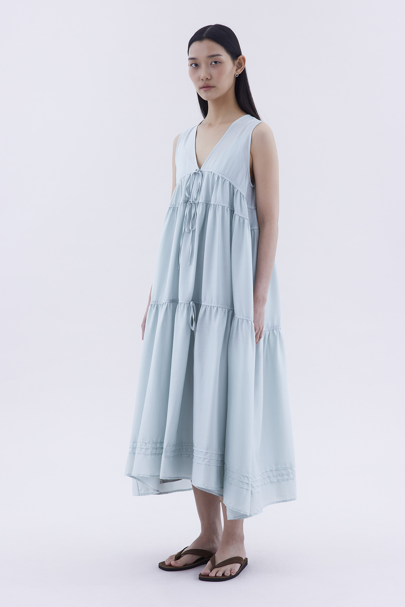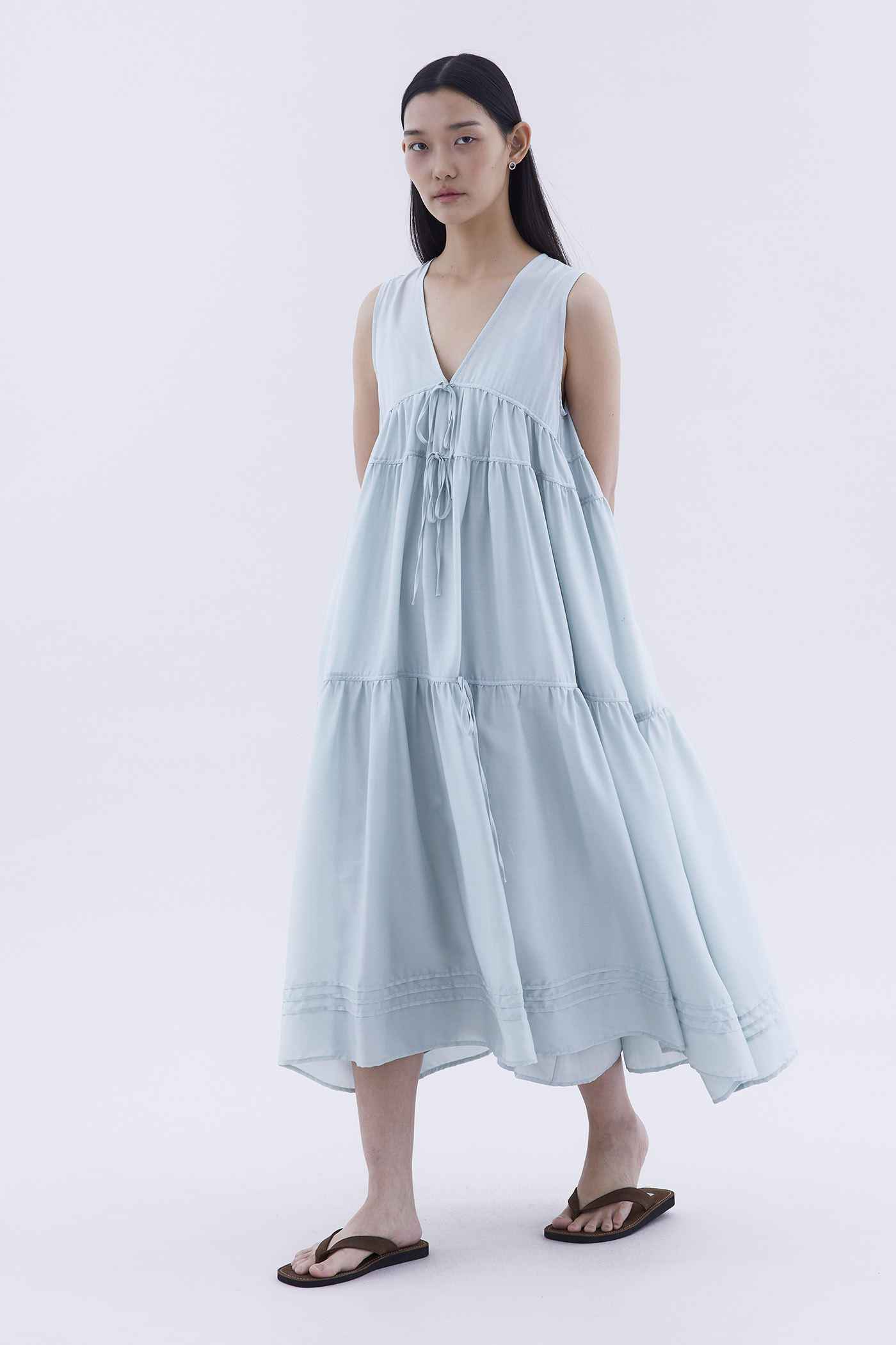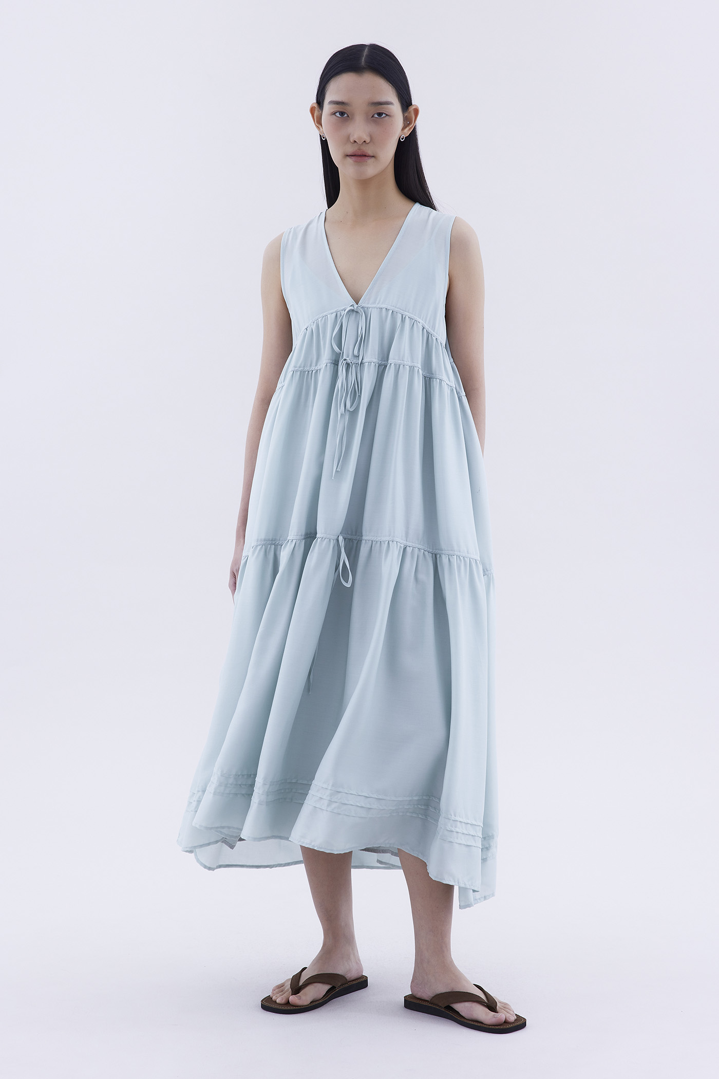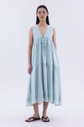 Double down. Made from smooth and flowy Tencel, this two-piece dress features a tiered, semi-sheer outer layer with a V-neckline and front tie-strap, as well as an inner slip with a V-neckline and slim adjustable shoulder straps. Worn in a relaxed fit and maxi length.