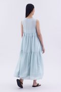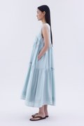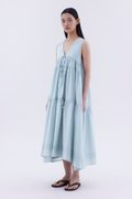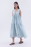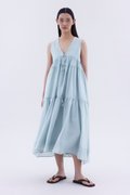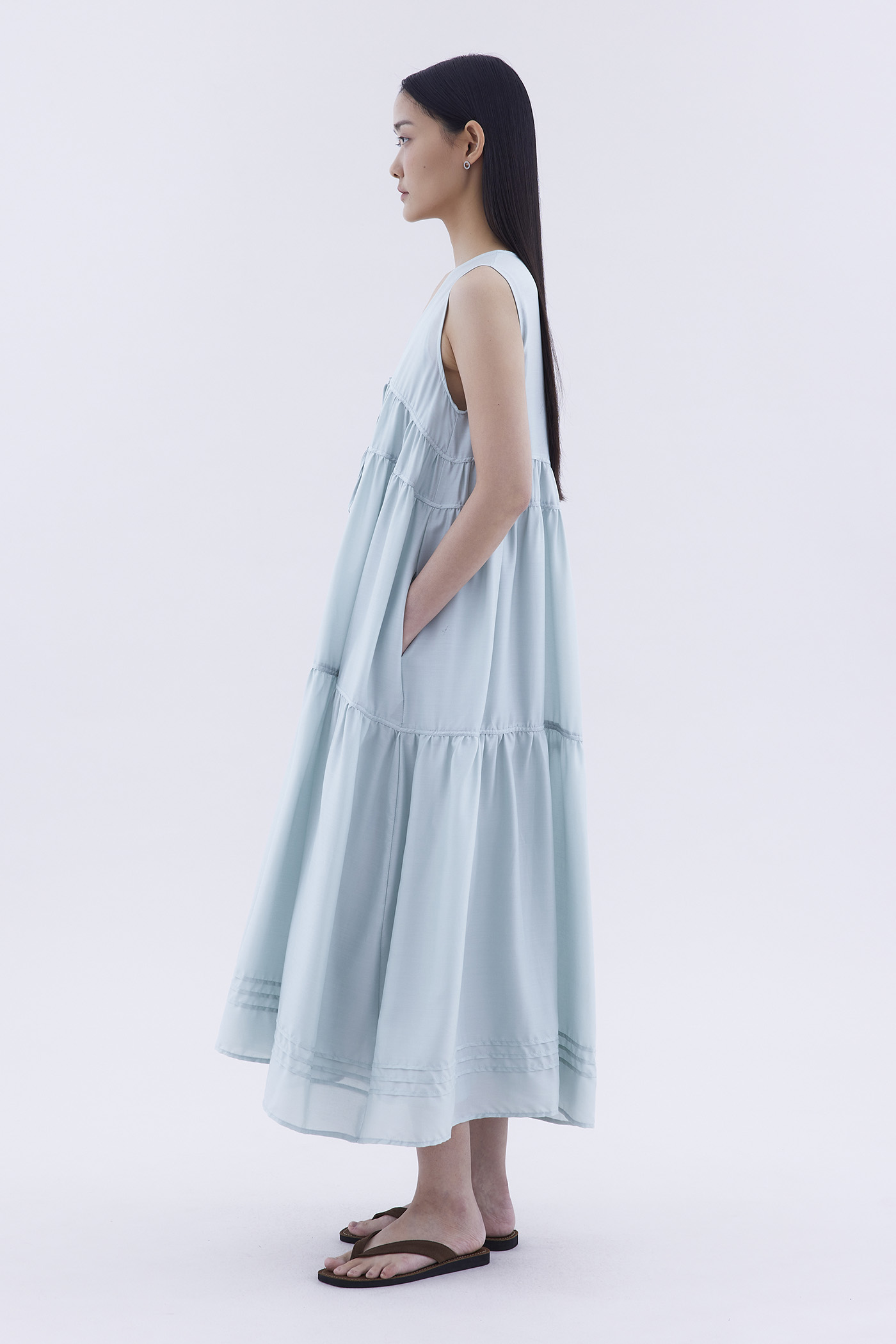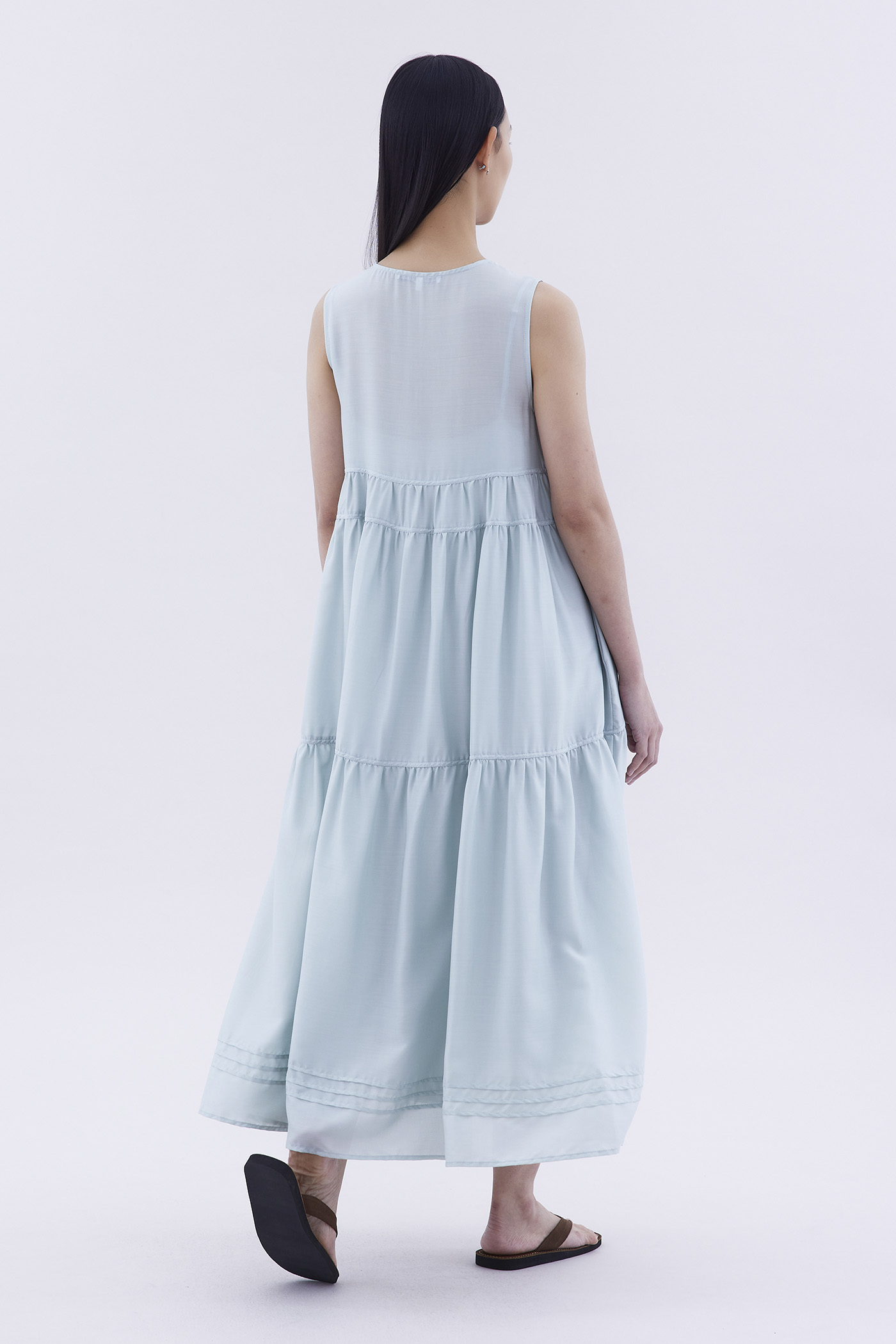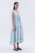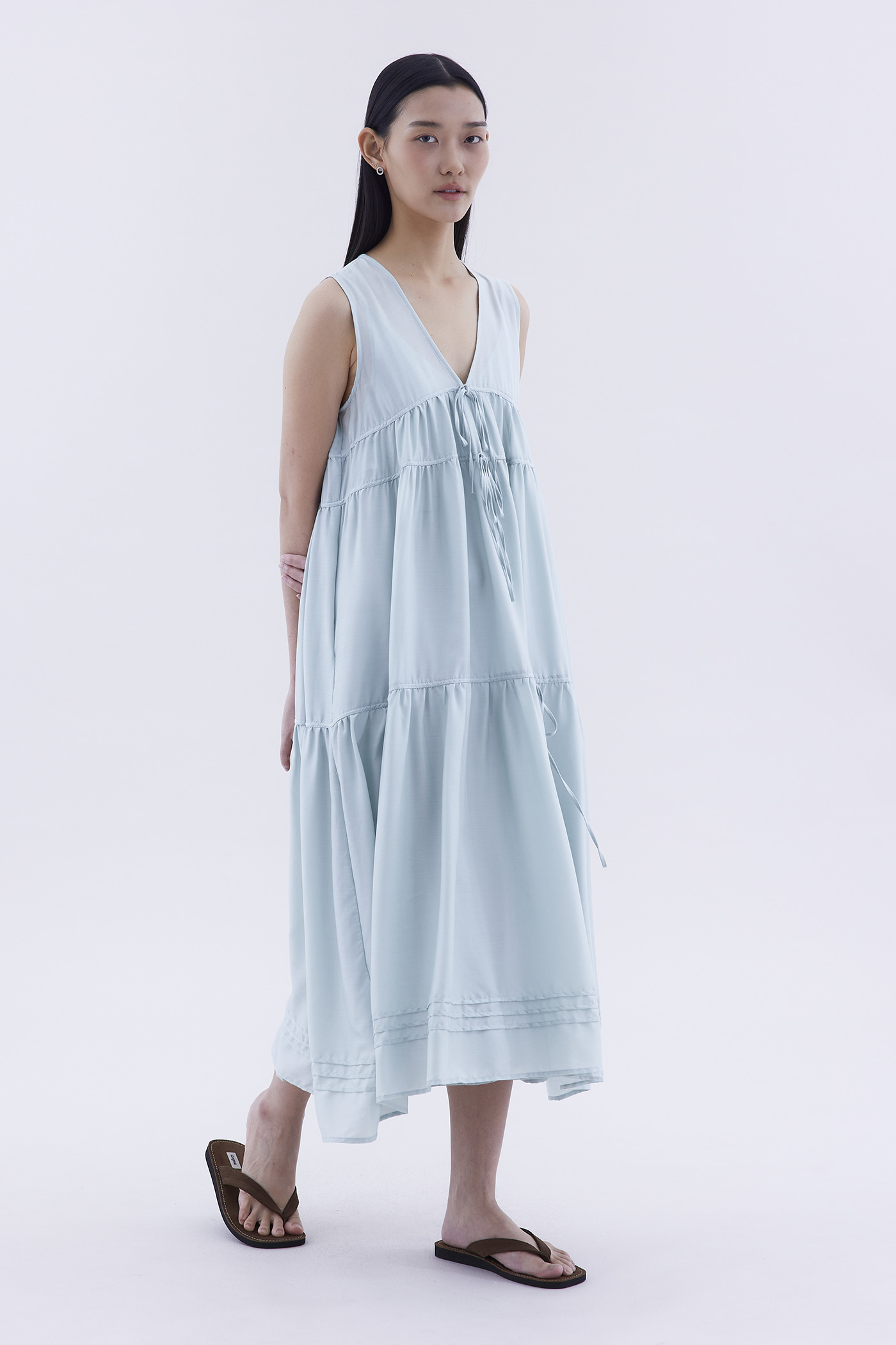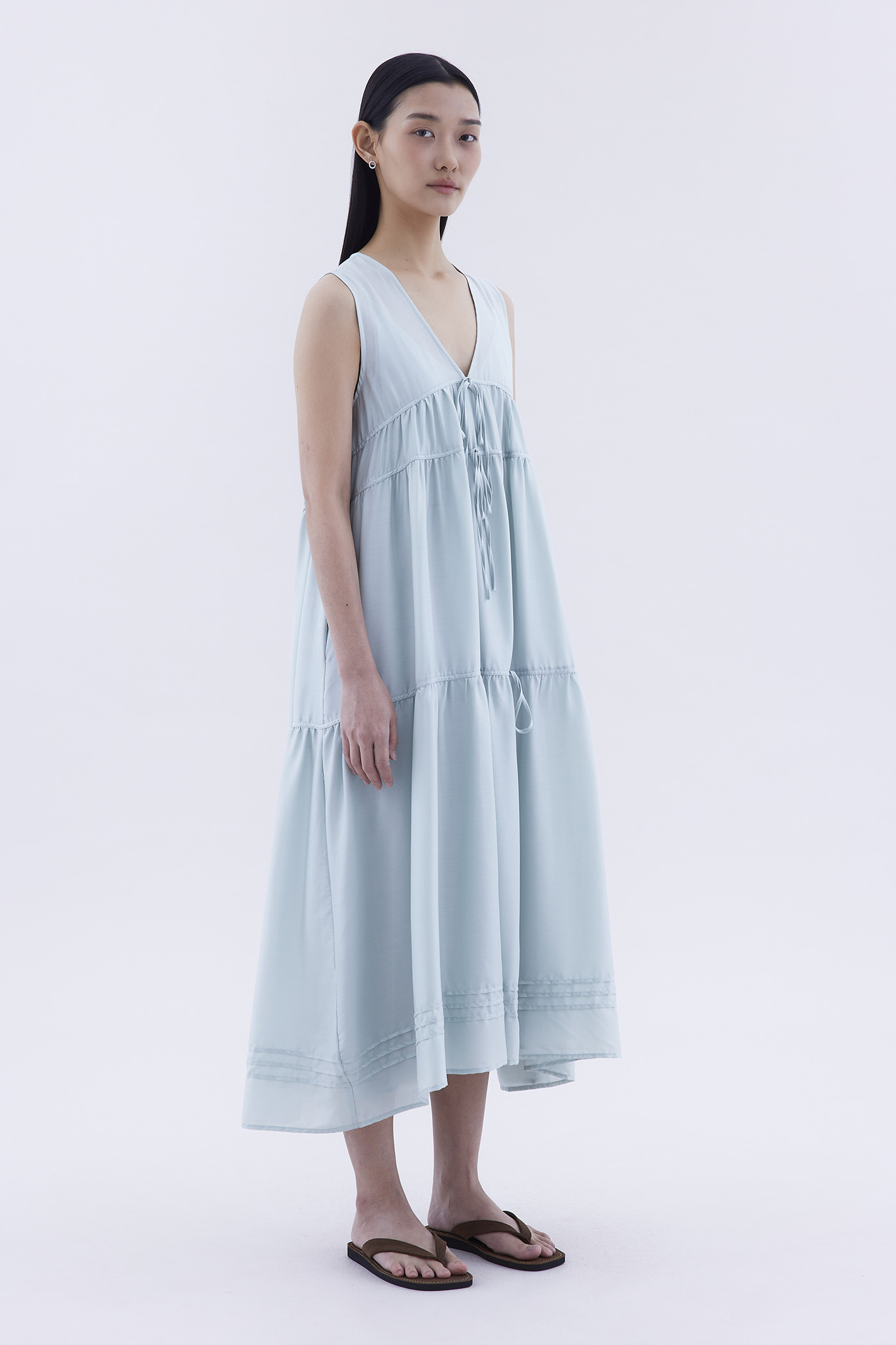 Double down. Made from smooth and flowy Tencel, this two-piece dress features a tiered, semi-sheer outer layer with a V-neckline and front tie-strap, as well as an inner slip with a V-neckline and slim adjustable shoulder straps. Worn in a relaxed fit and maxi length.
