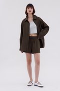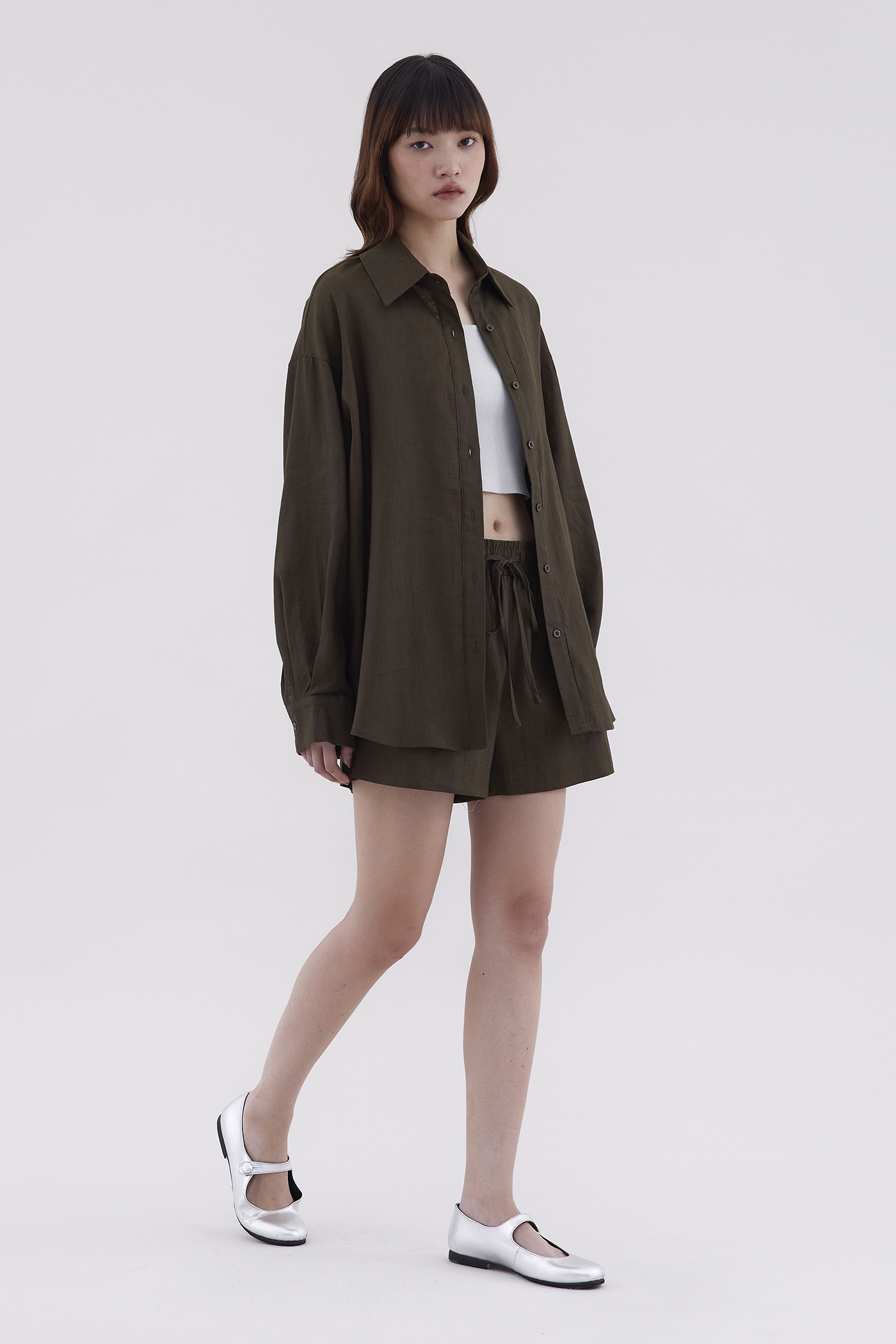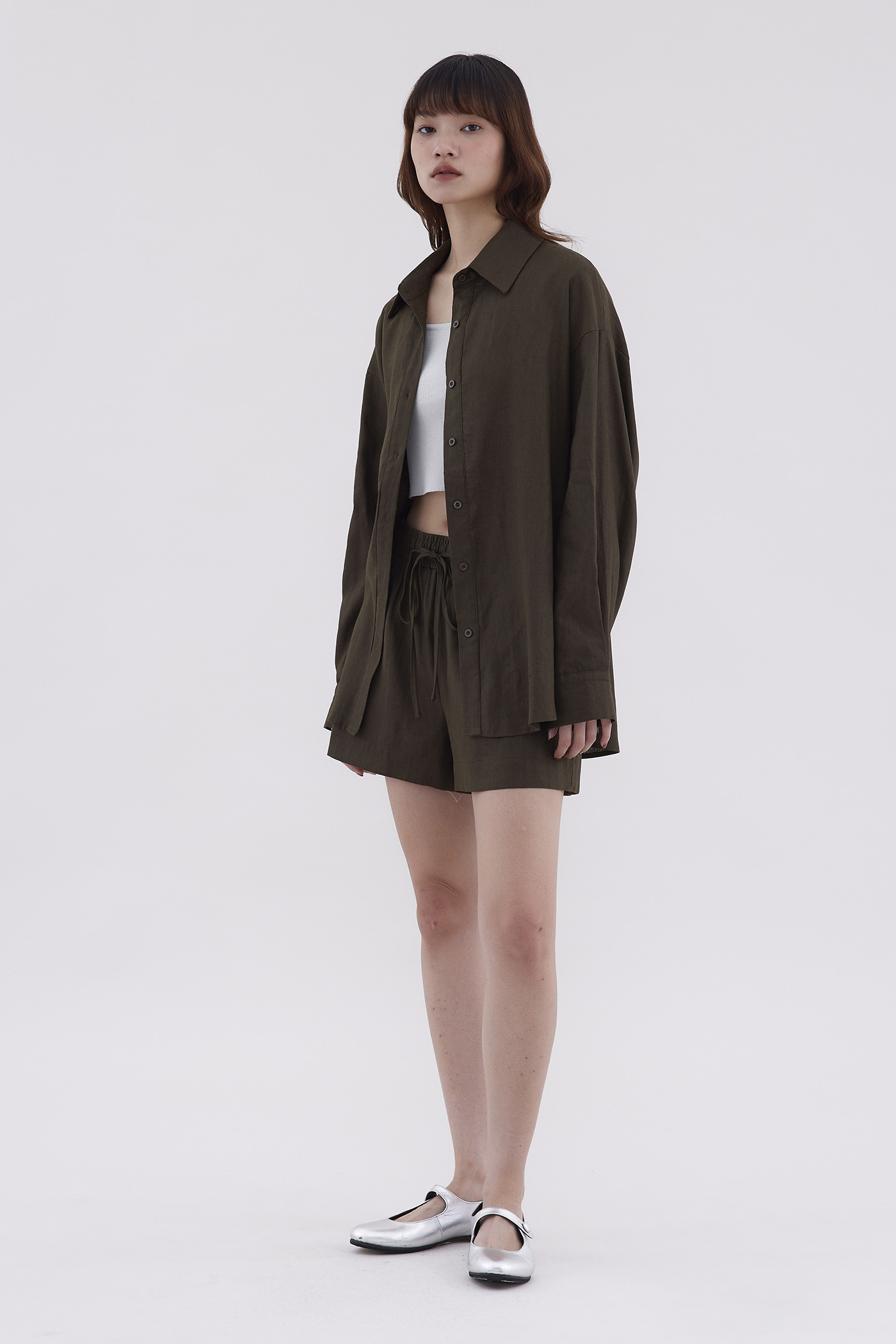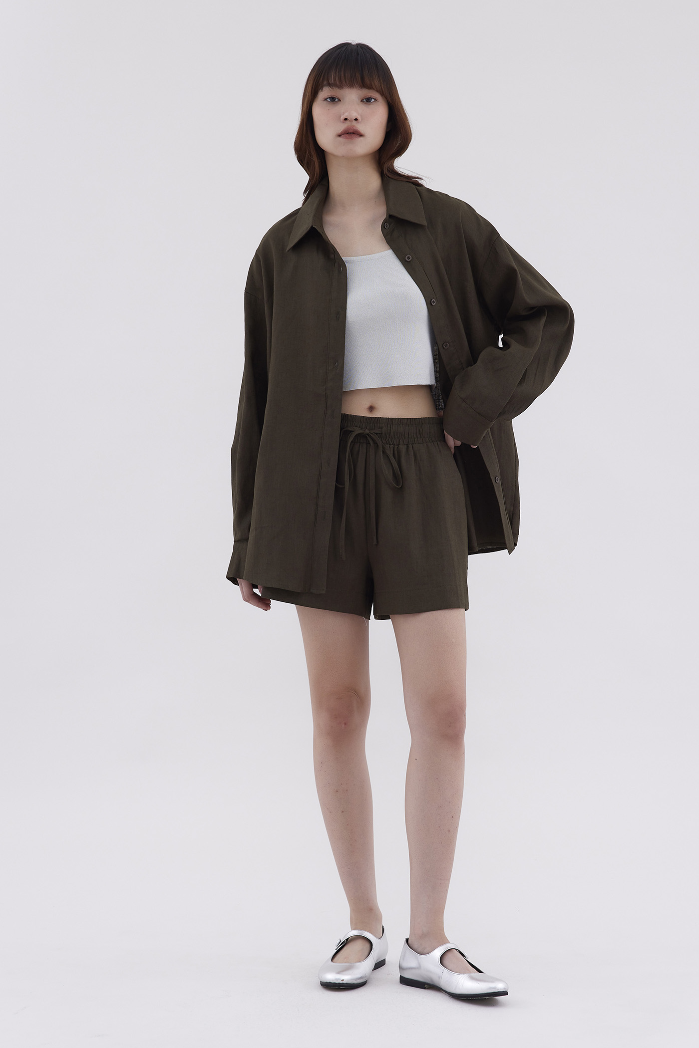 For that cool and comfy look. Cut from airy and non-stretch linen, these shorts feature an elasticated drawstring waistband and slightly flared legs. Worn in a relaxed fit.