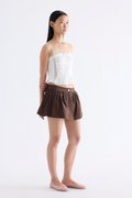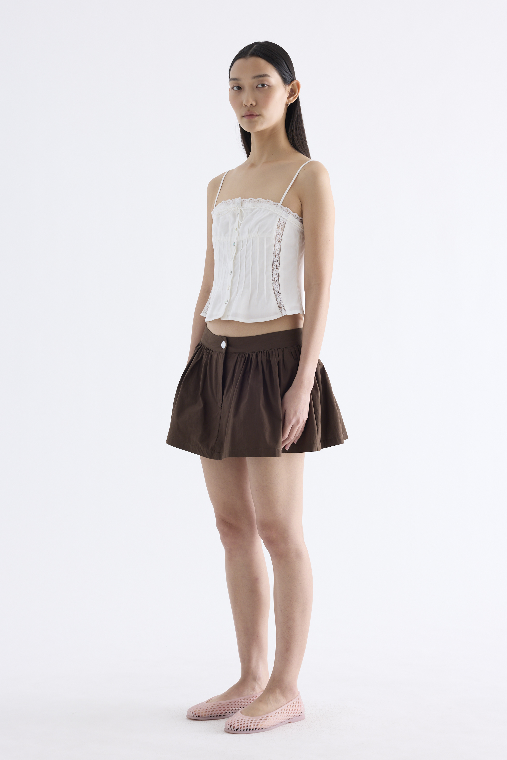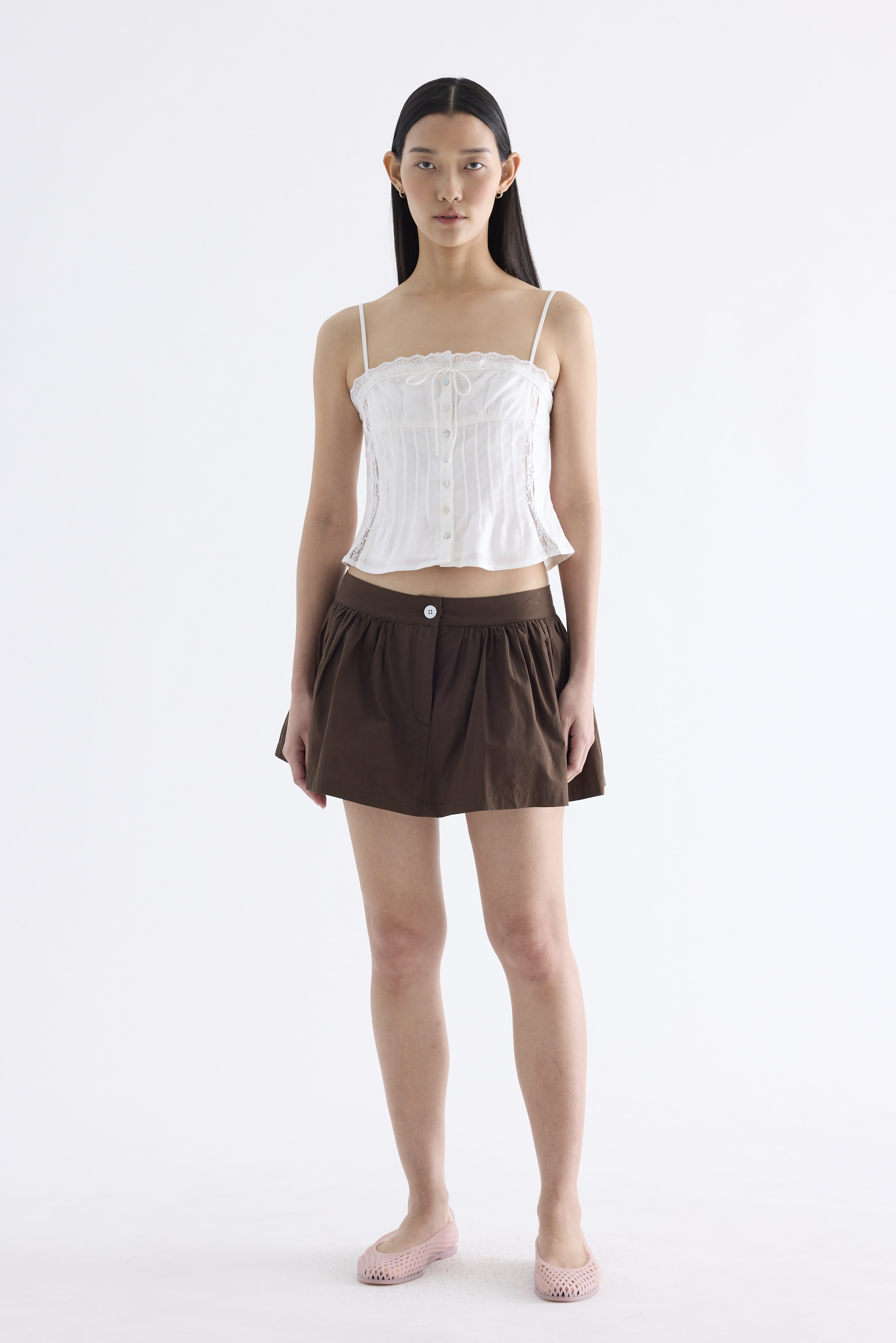 Two in one. Cut from crisp and softly structured cotton, these gathered skorts feature inner shorts, belt loops and a front zip and button closure. Worn in a relaxed fit.