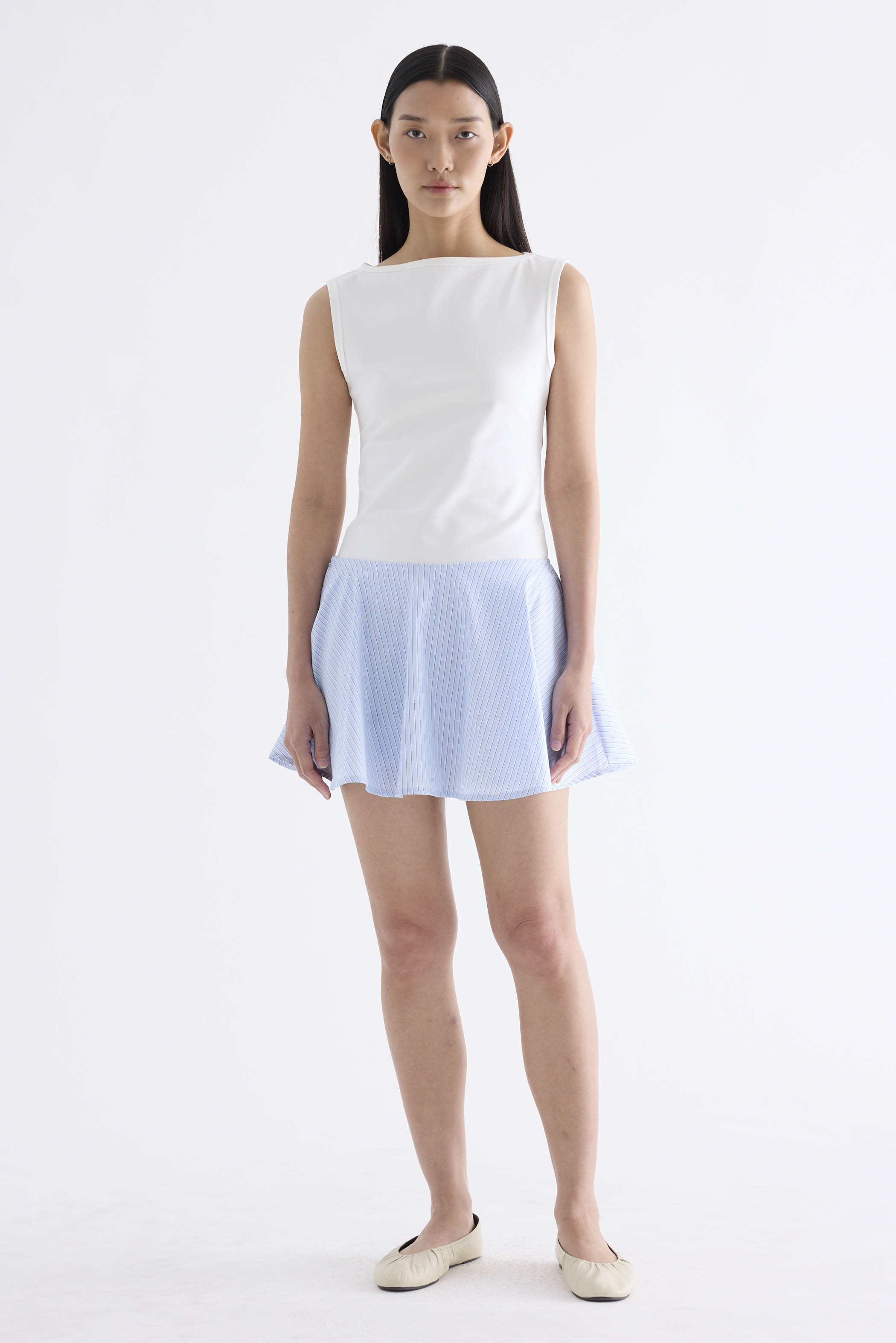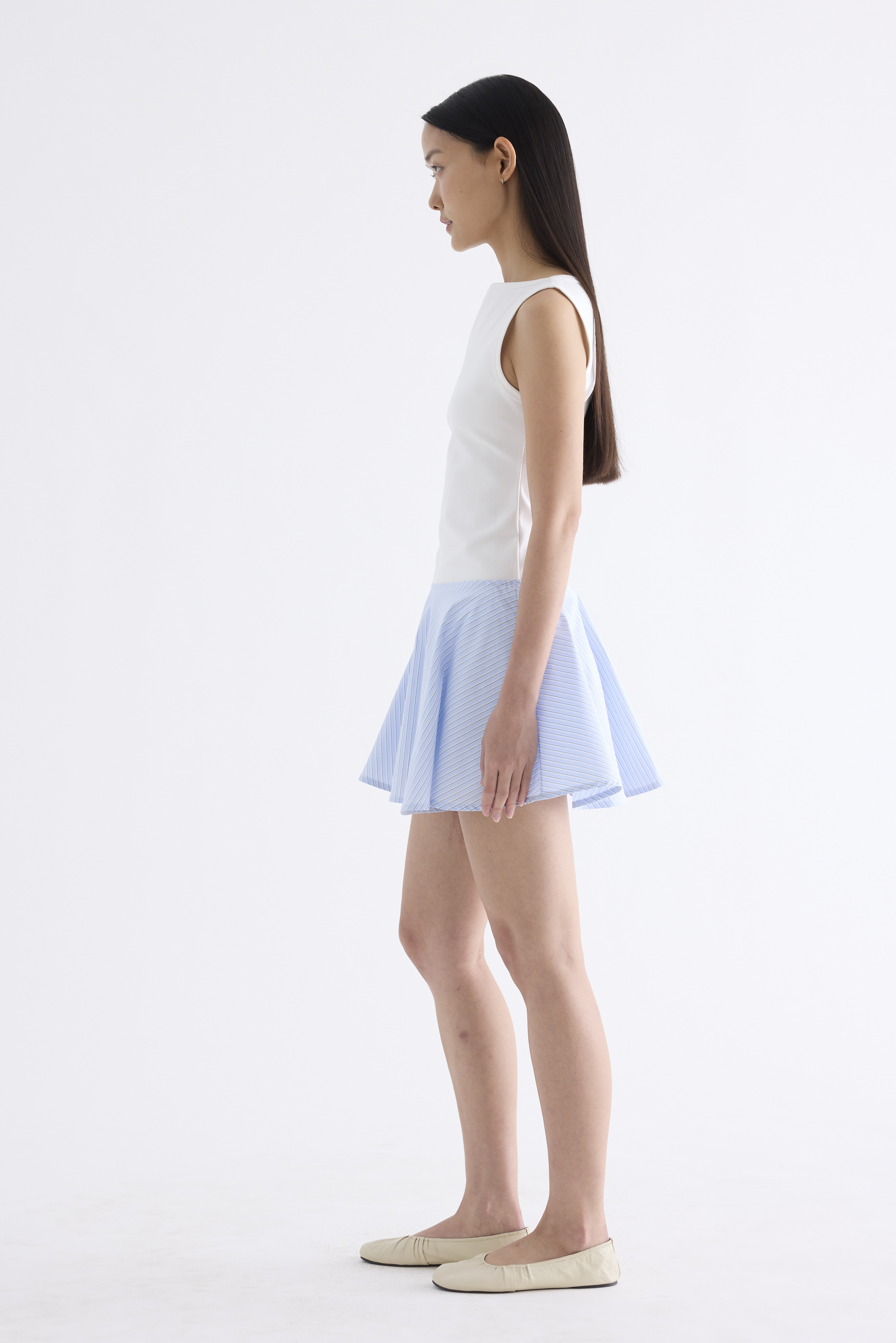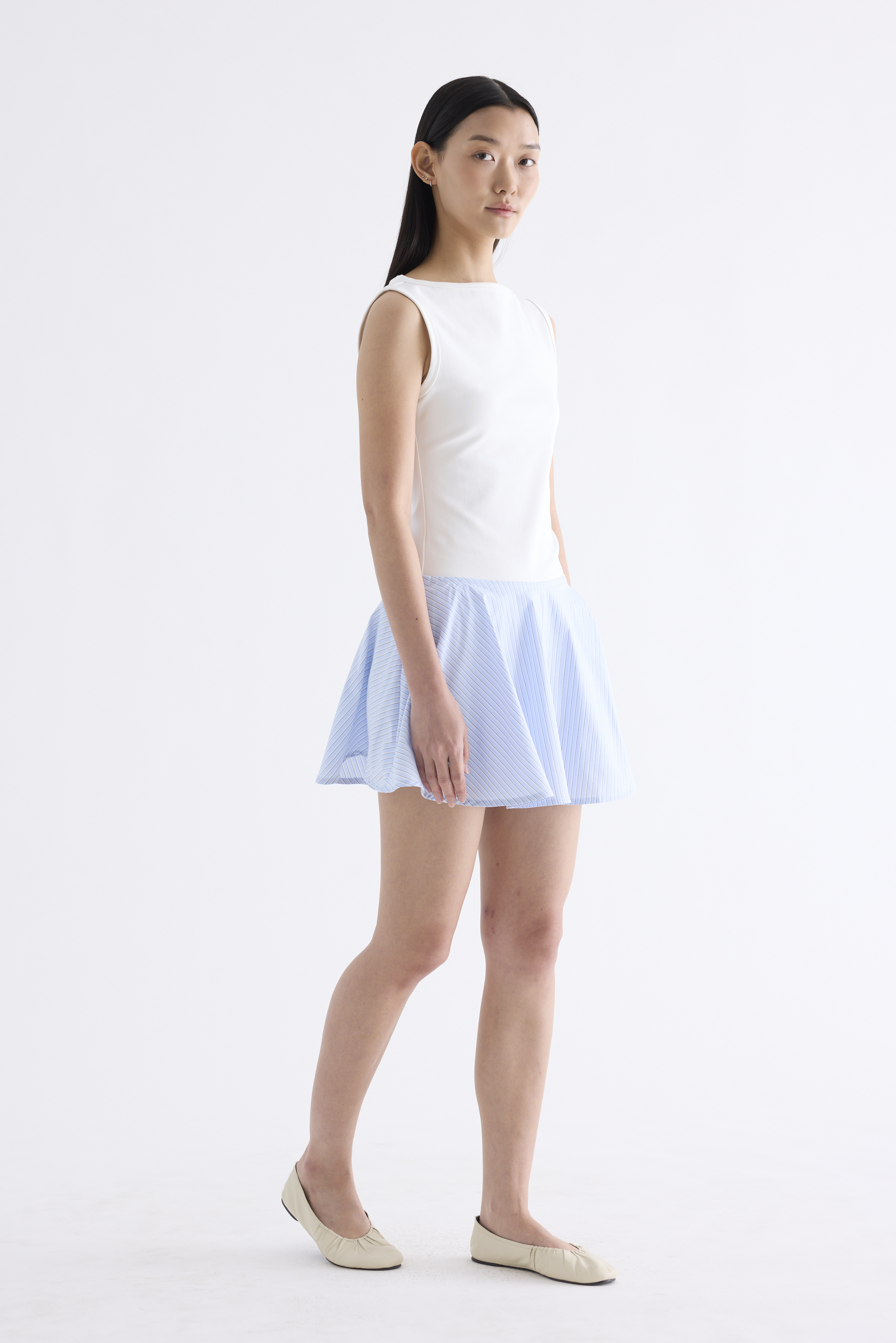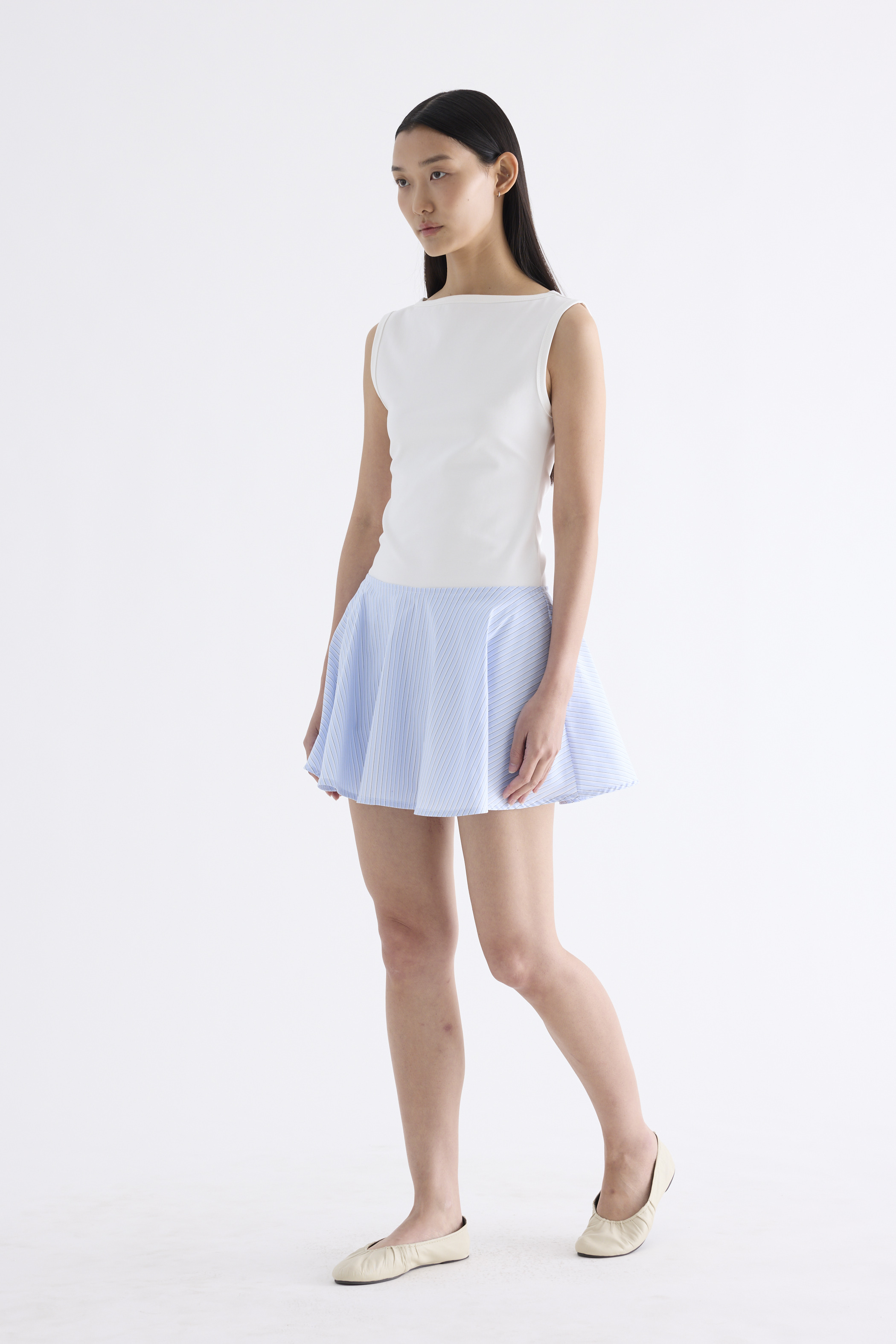 Two in one. Made from crisp and softly structured cotton, these skorts feature inner shorts, a fluttery skater silhouette and a side zip closure. Worn in a slim fit.