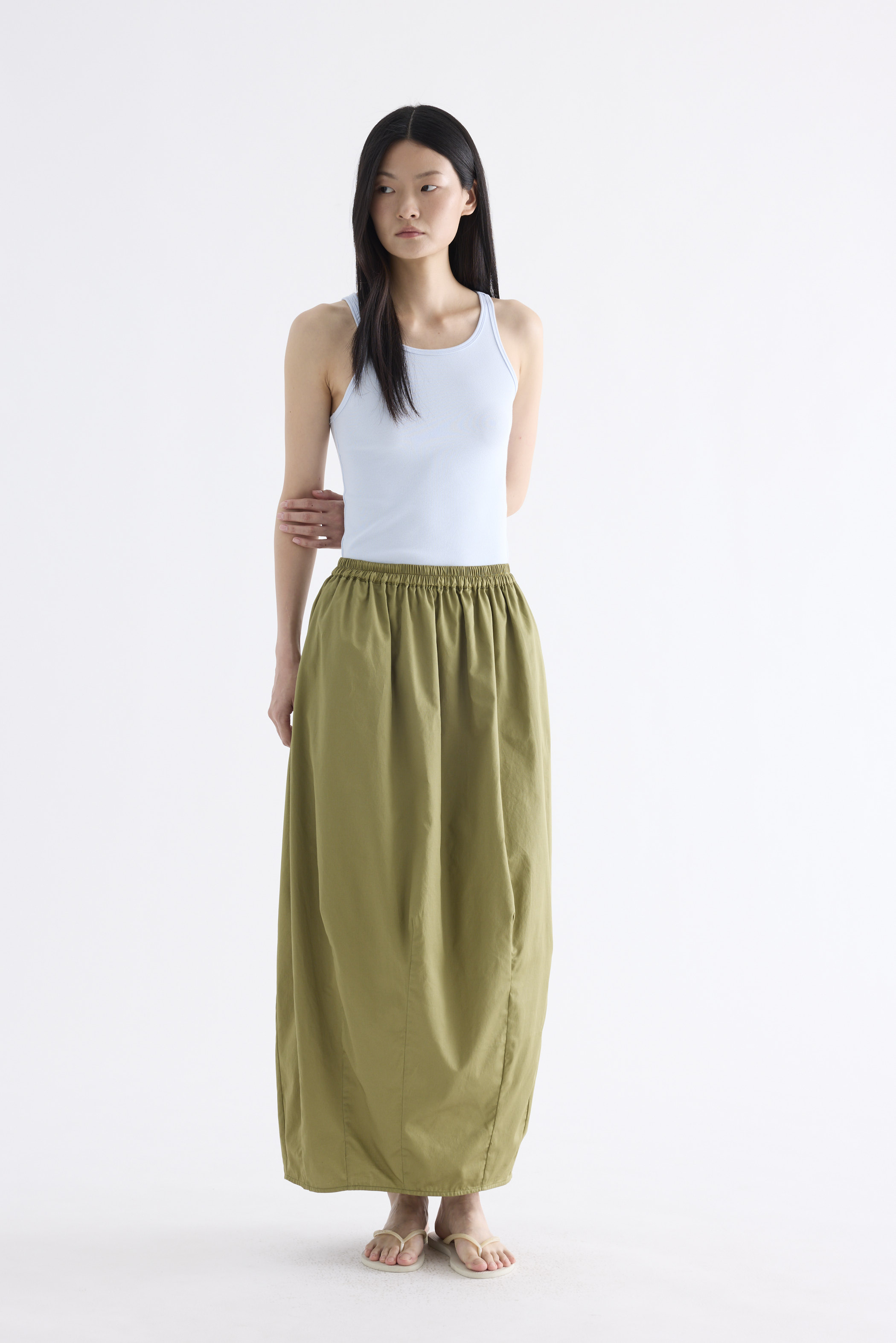 From the Postscript collection. Cut from fully lined cotton with a crisp and smooth finish, this skirt features a cocoon silhouette that tapers towards the hem, an elasticated waistband and back slit. Fits relaxed in a midaxi length.
