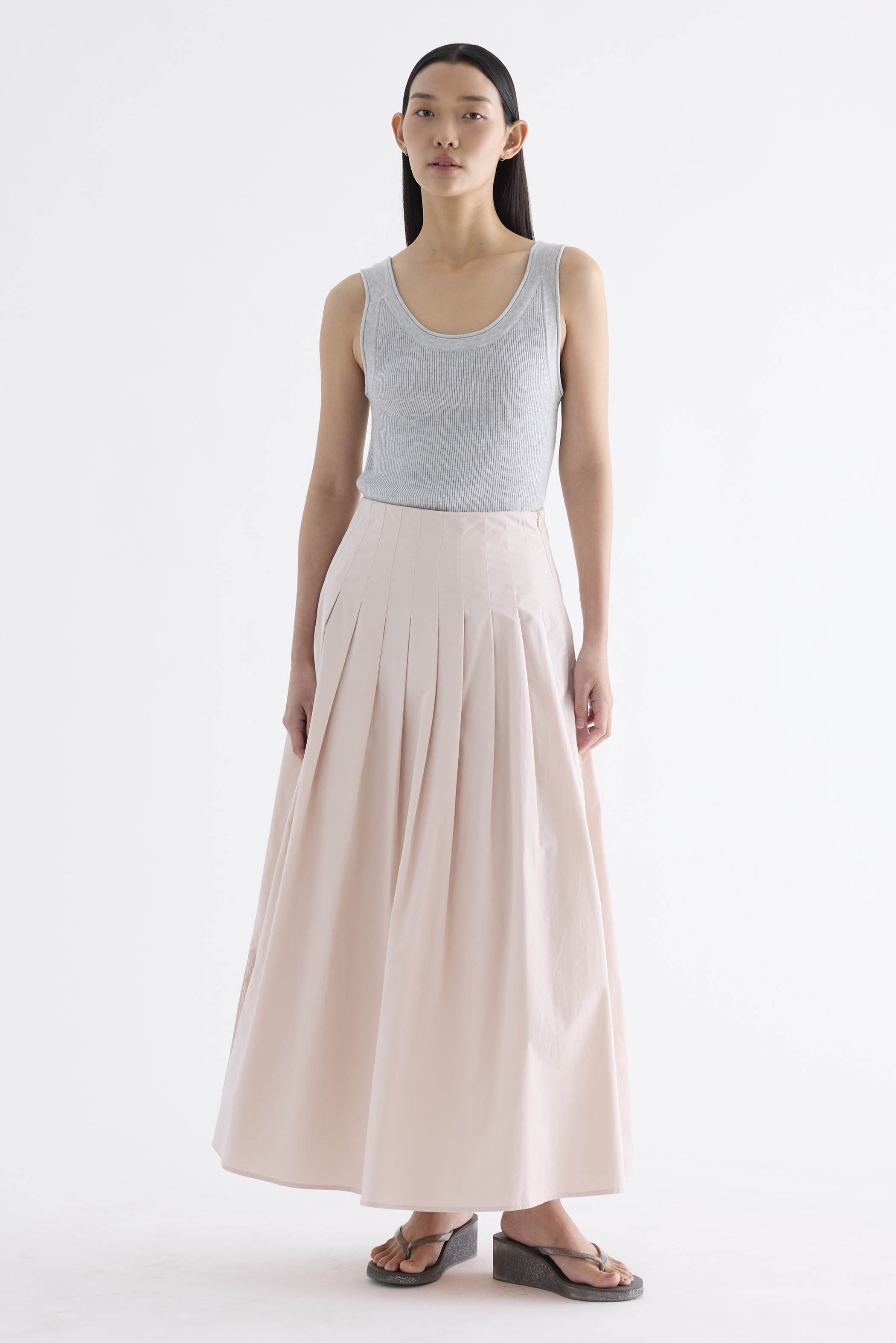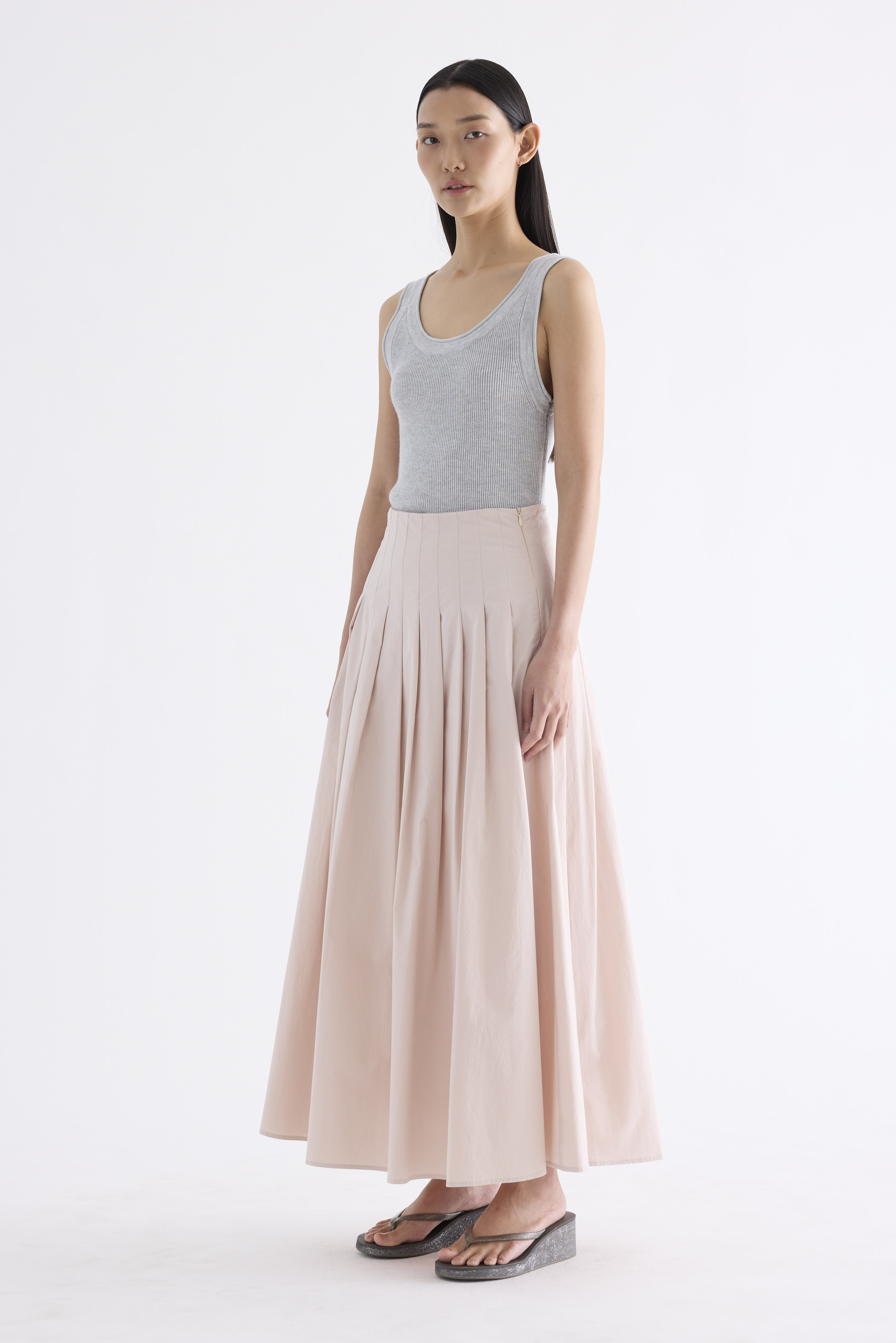 Pleats please. Made from smooth and softly structured cotton, this maxi skirt features pleats and a side zip closure. Worn in a relaxed fit.