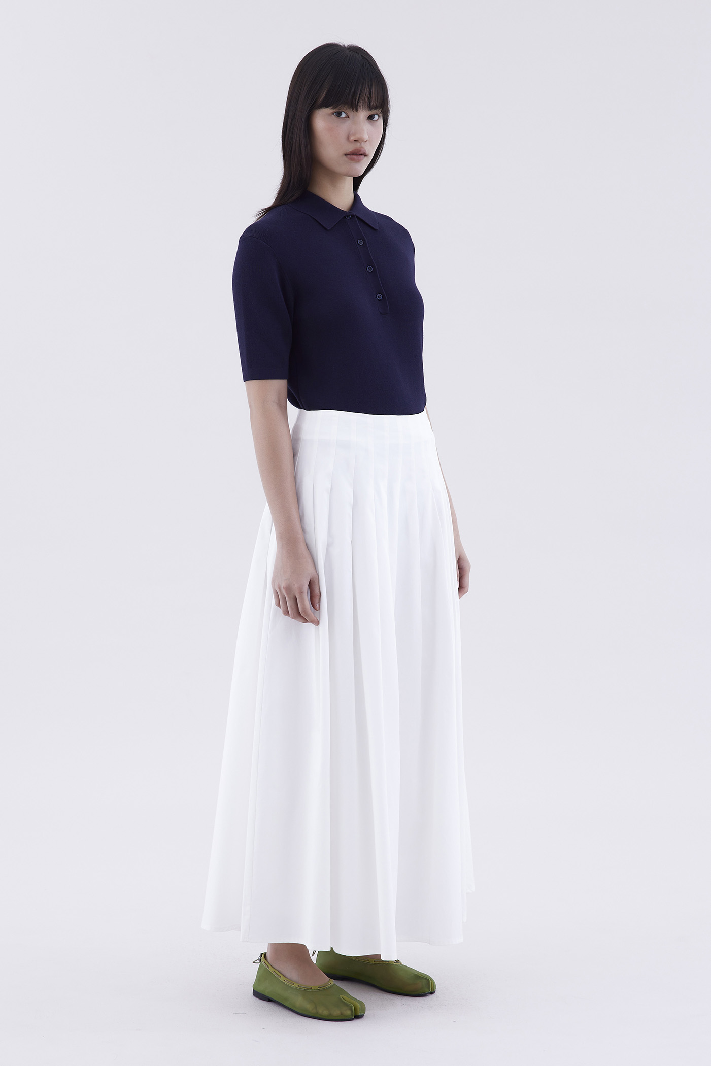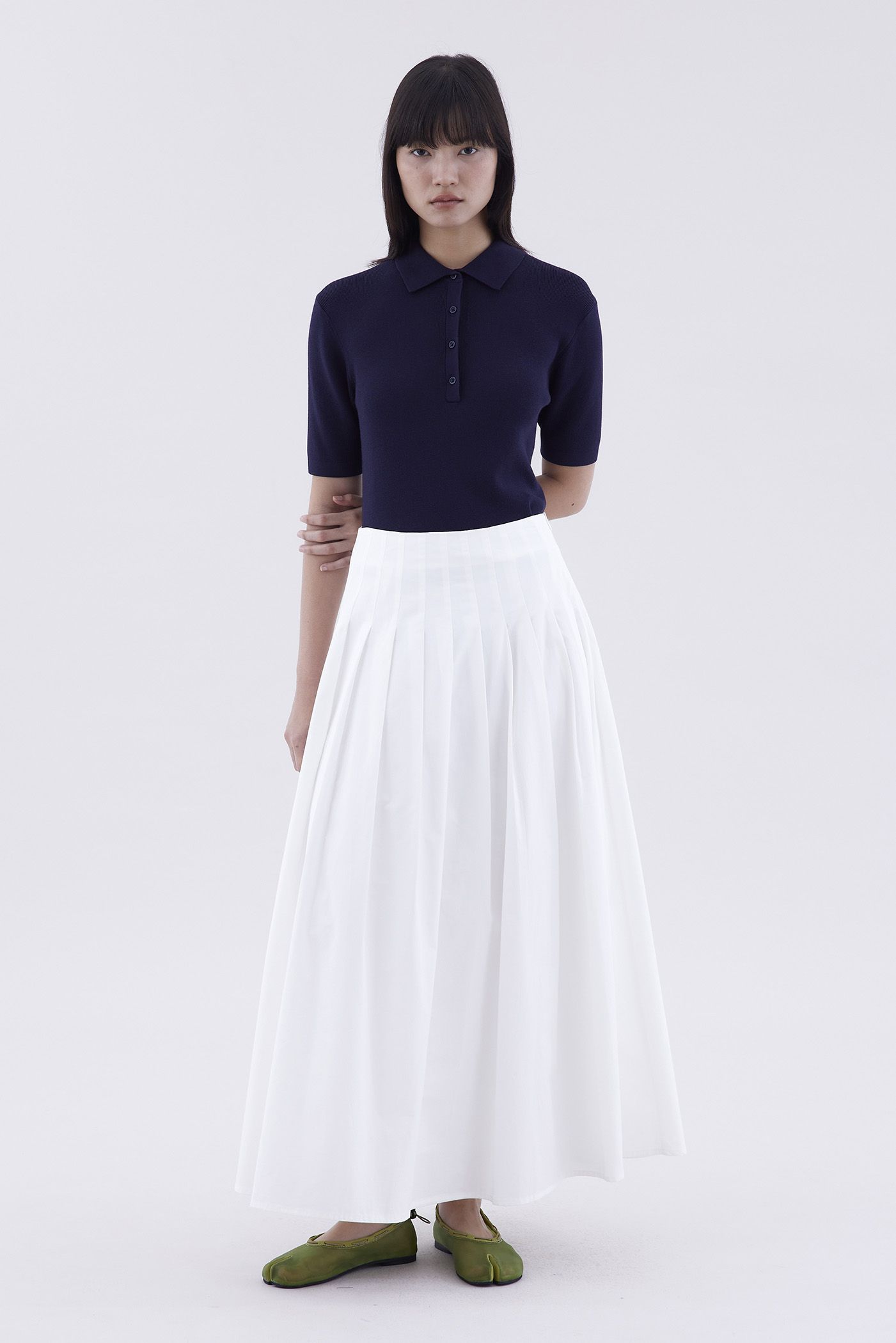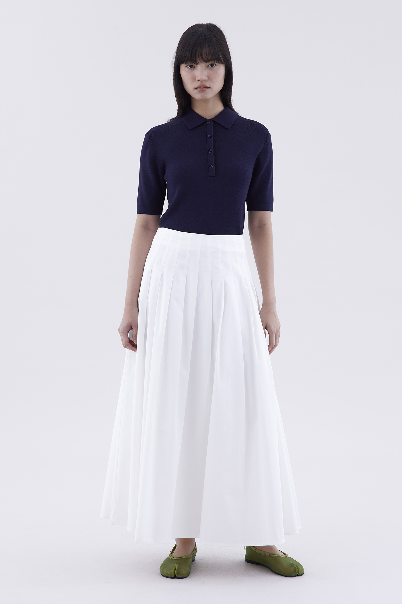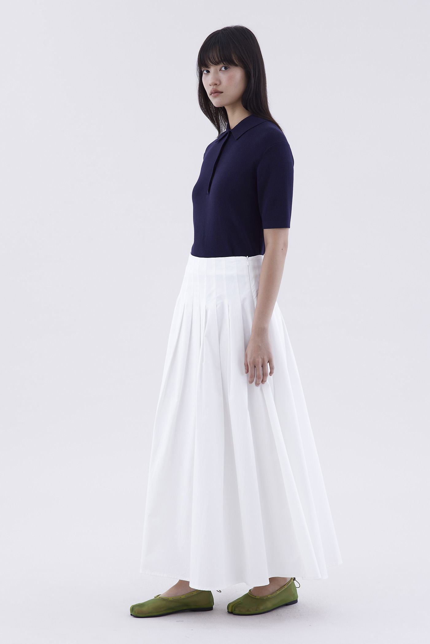 Pleats please. Made from smooth and softly structured cotton, this maxi skirt features pleats and a side zip closure. Worn in a relaxed fit.