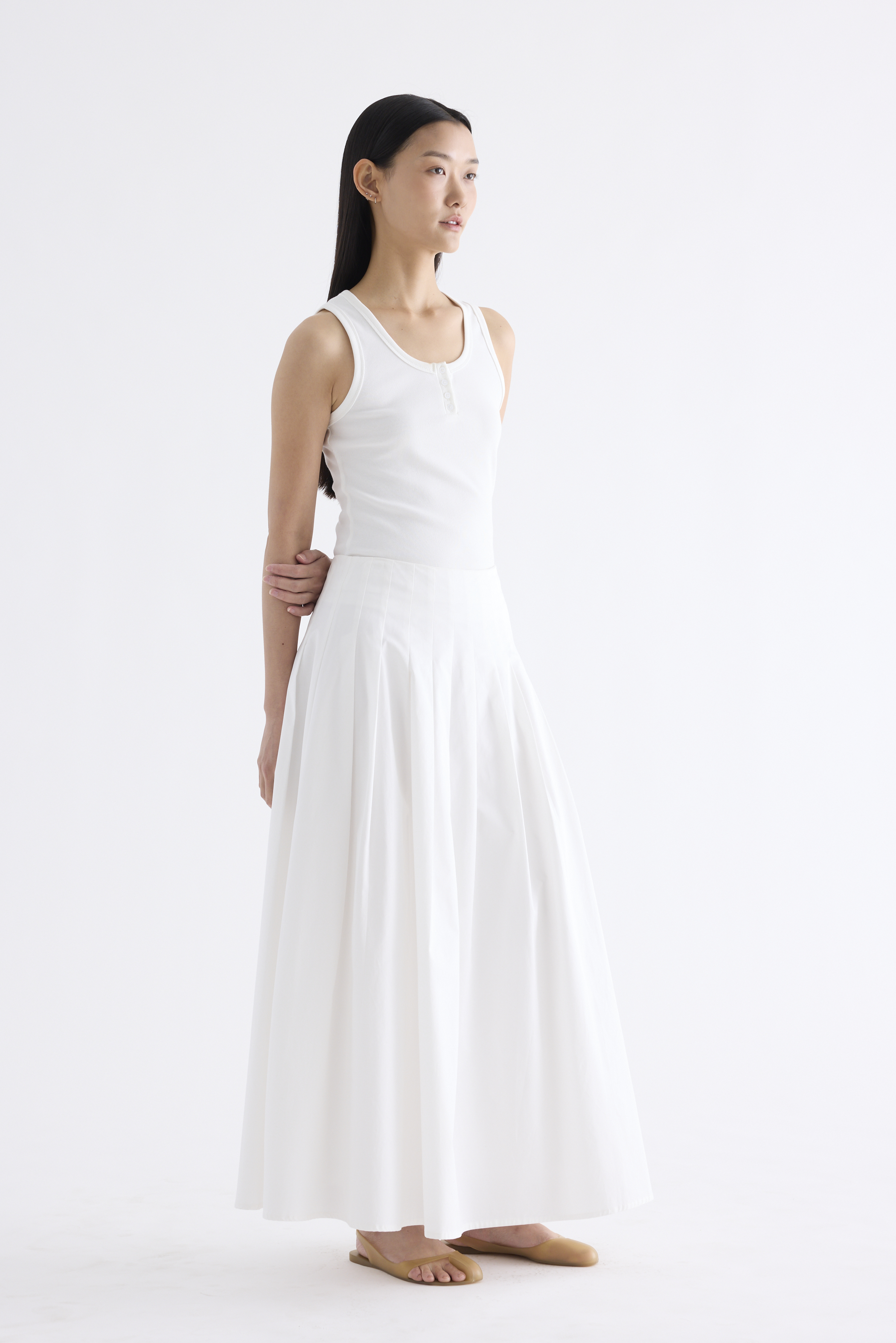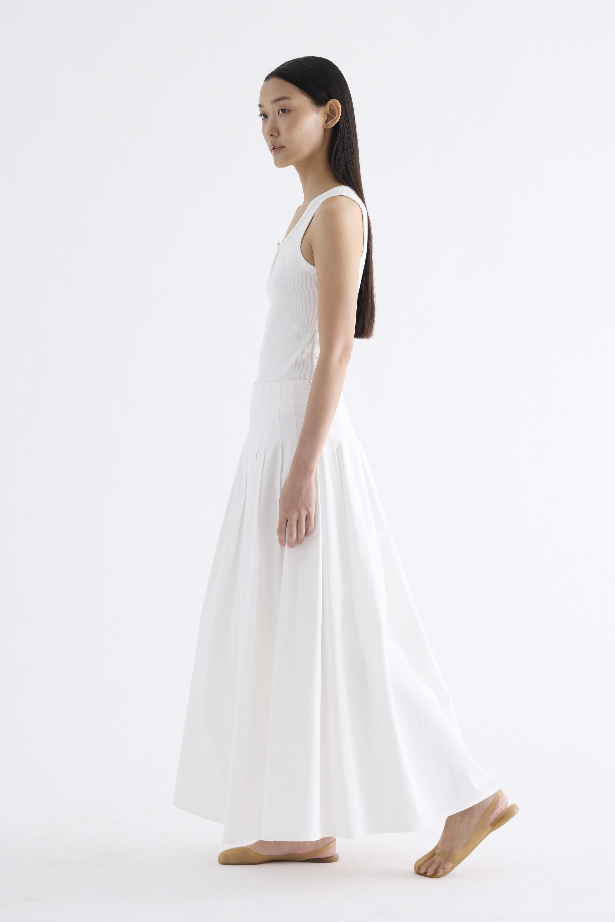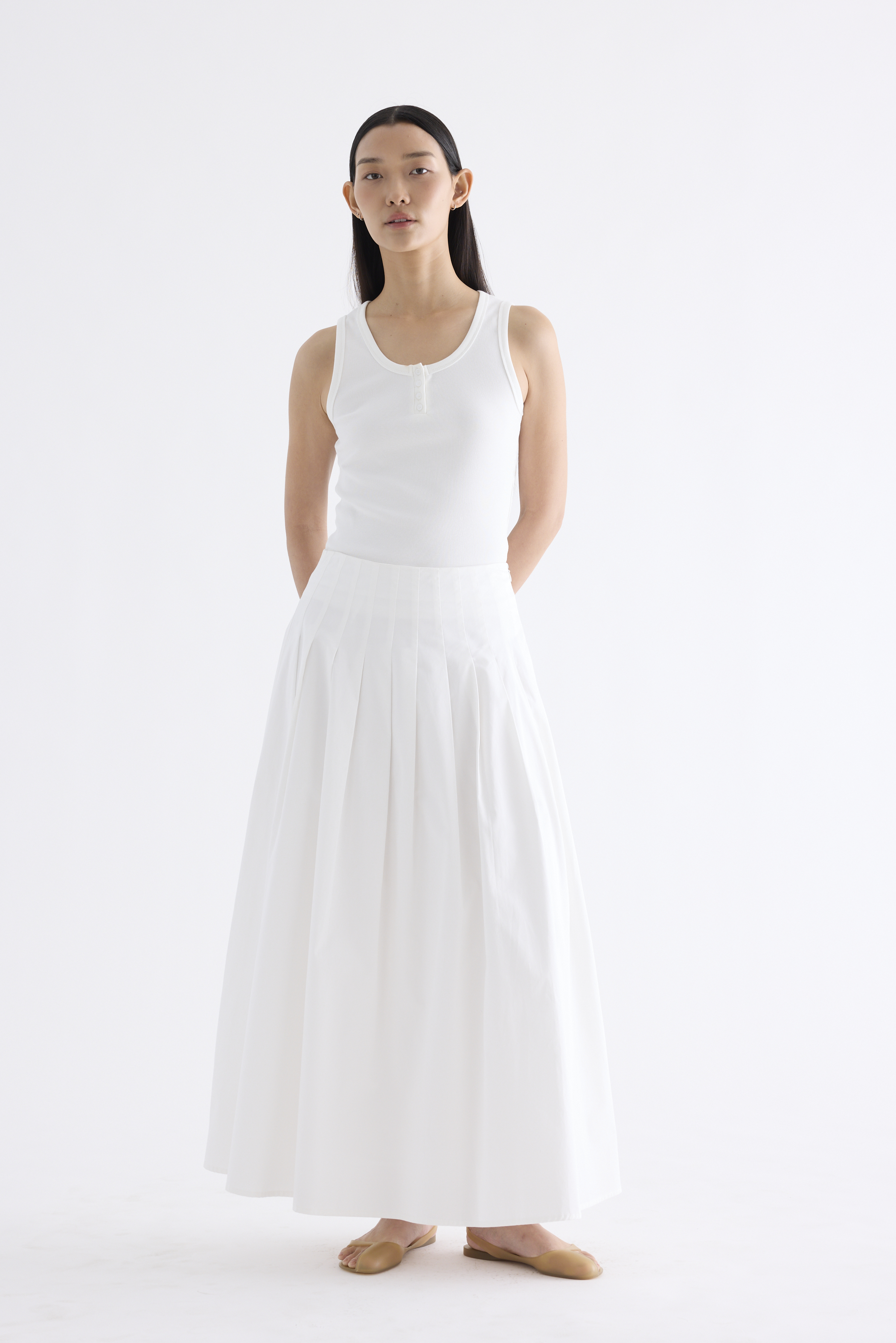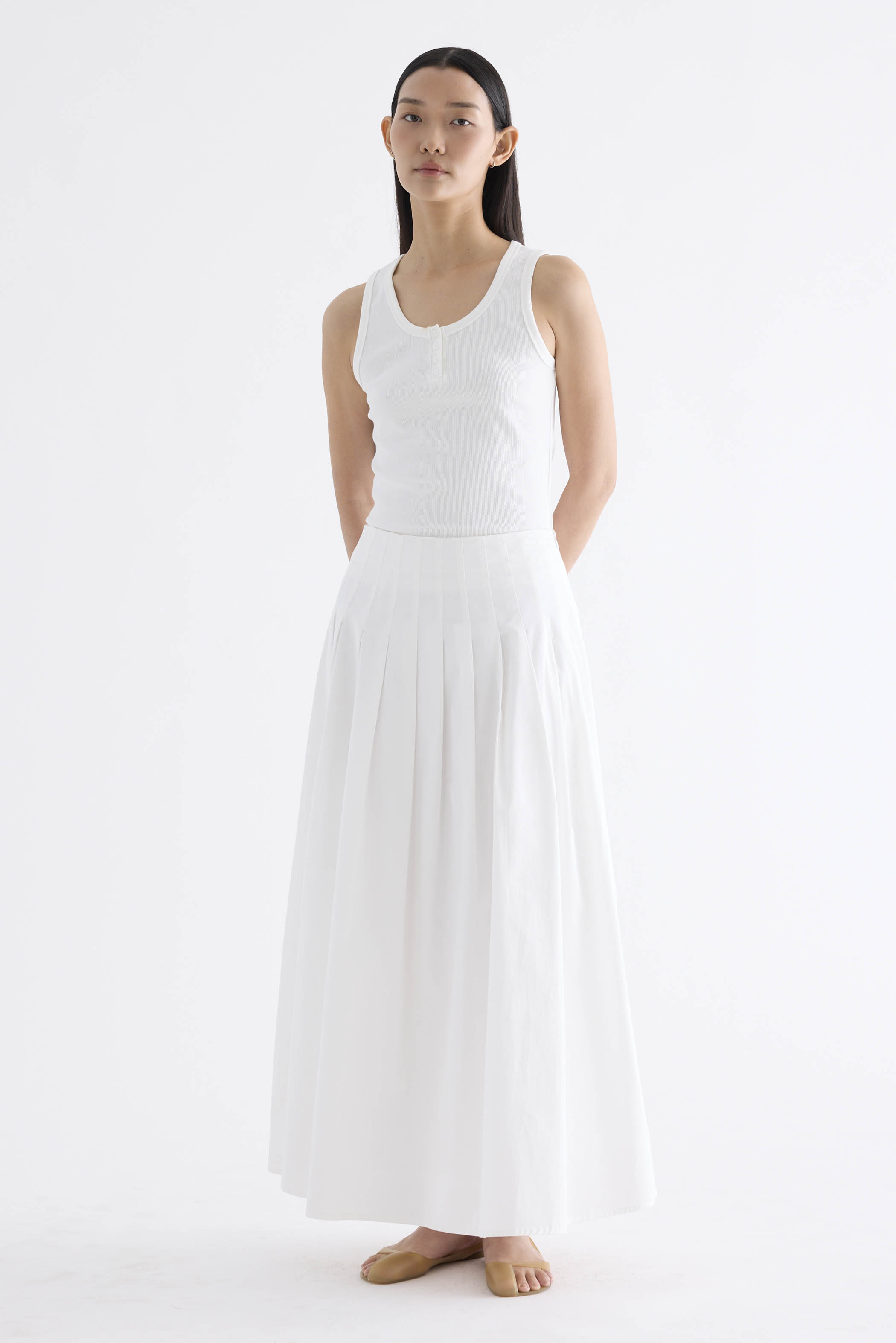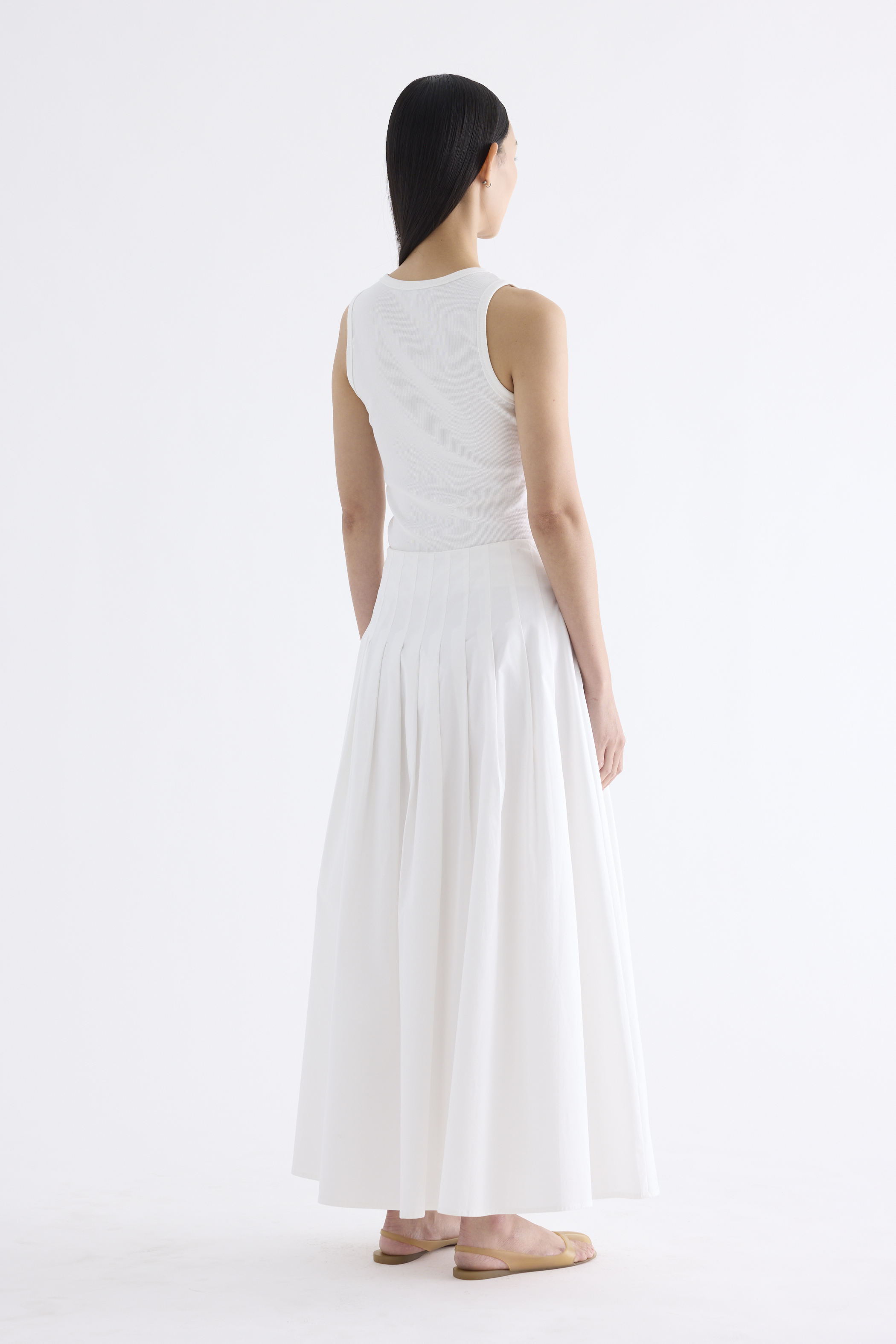 Pleats please. Made from smooth and softly structured cotton, this maxi skirt features pleats and a side zip closure. Worn in a relaxed fit.