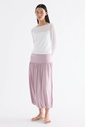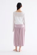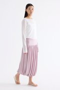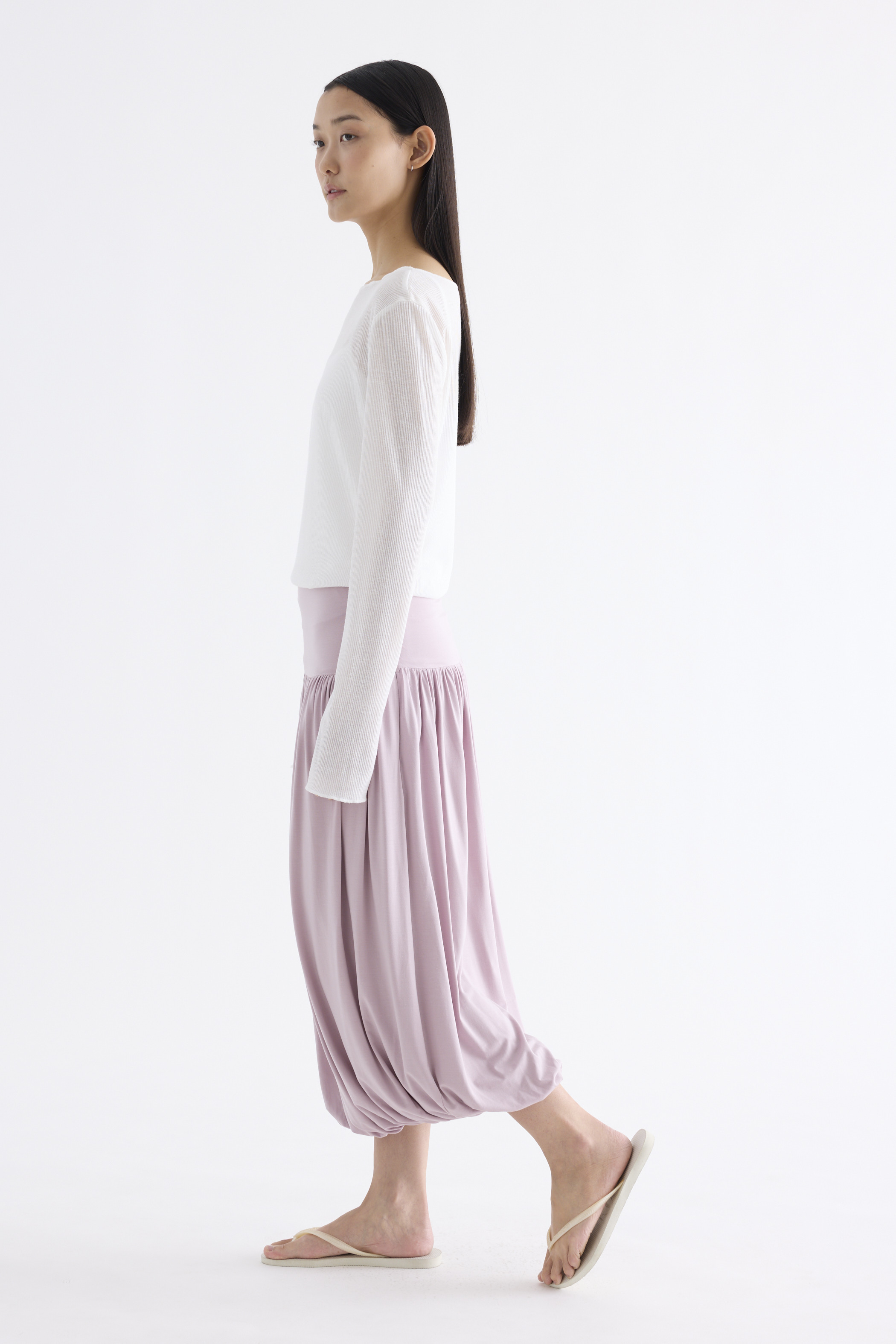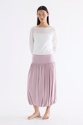 Volume, up. Made from smooth and stretchy fabric, this midi skirt features an extended waist panel and a gathered silhouette with a bubble hem. Worn in a relaxed fit with a size zip closure.