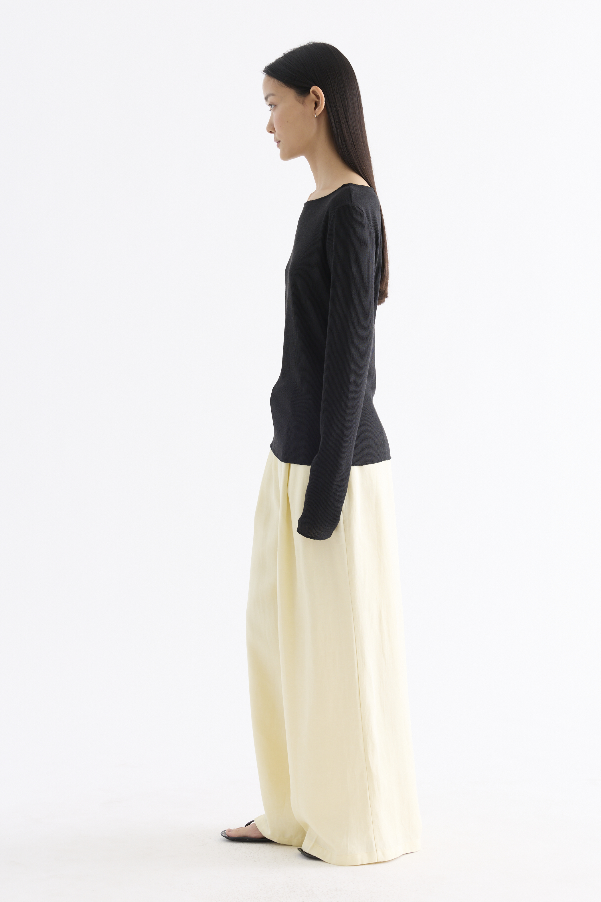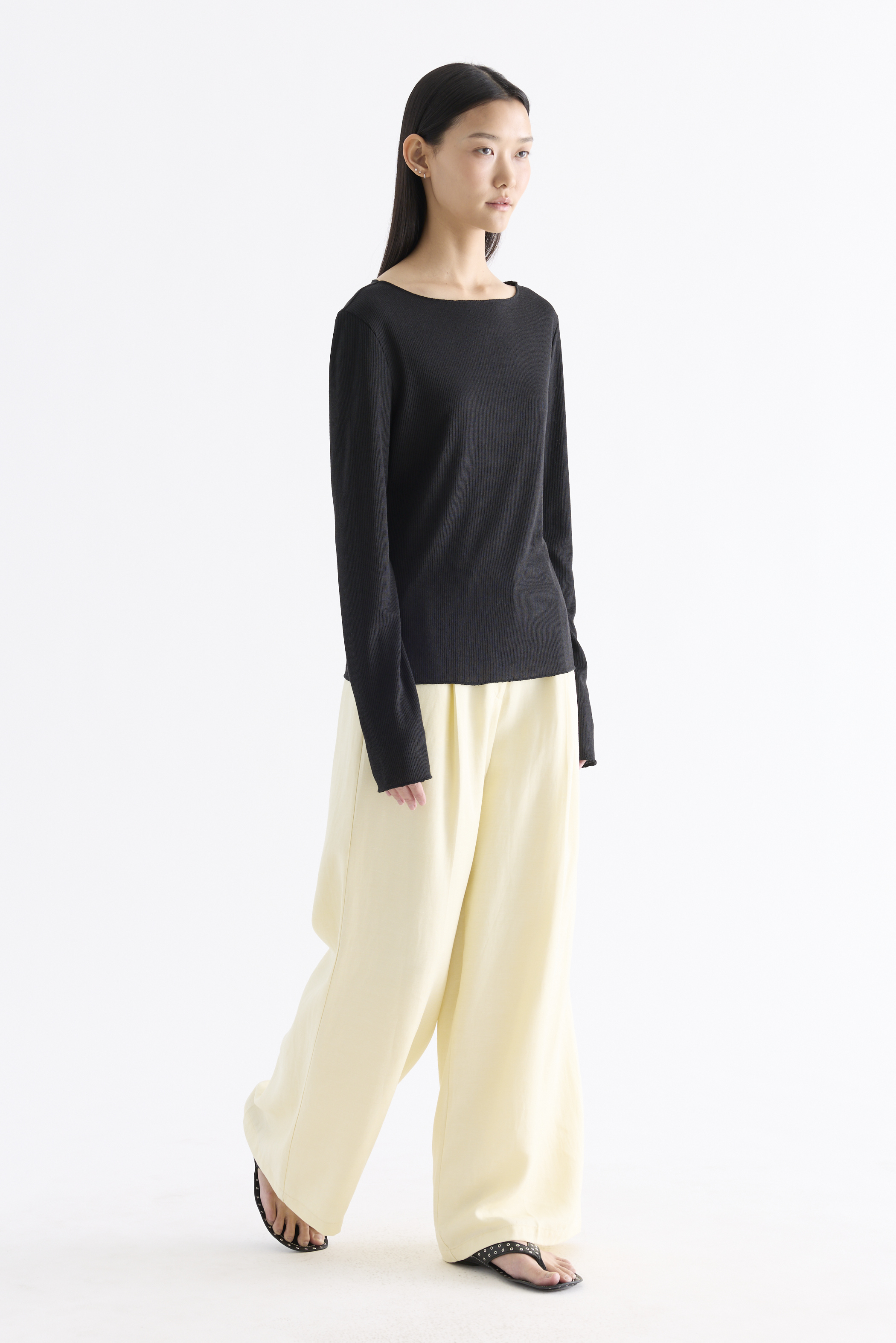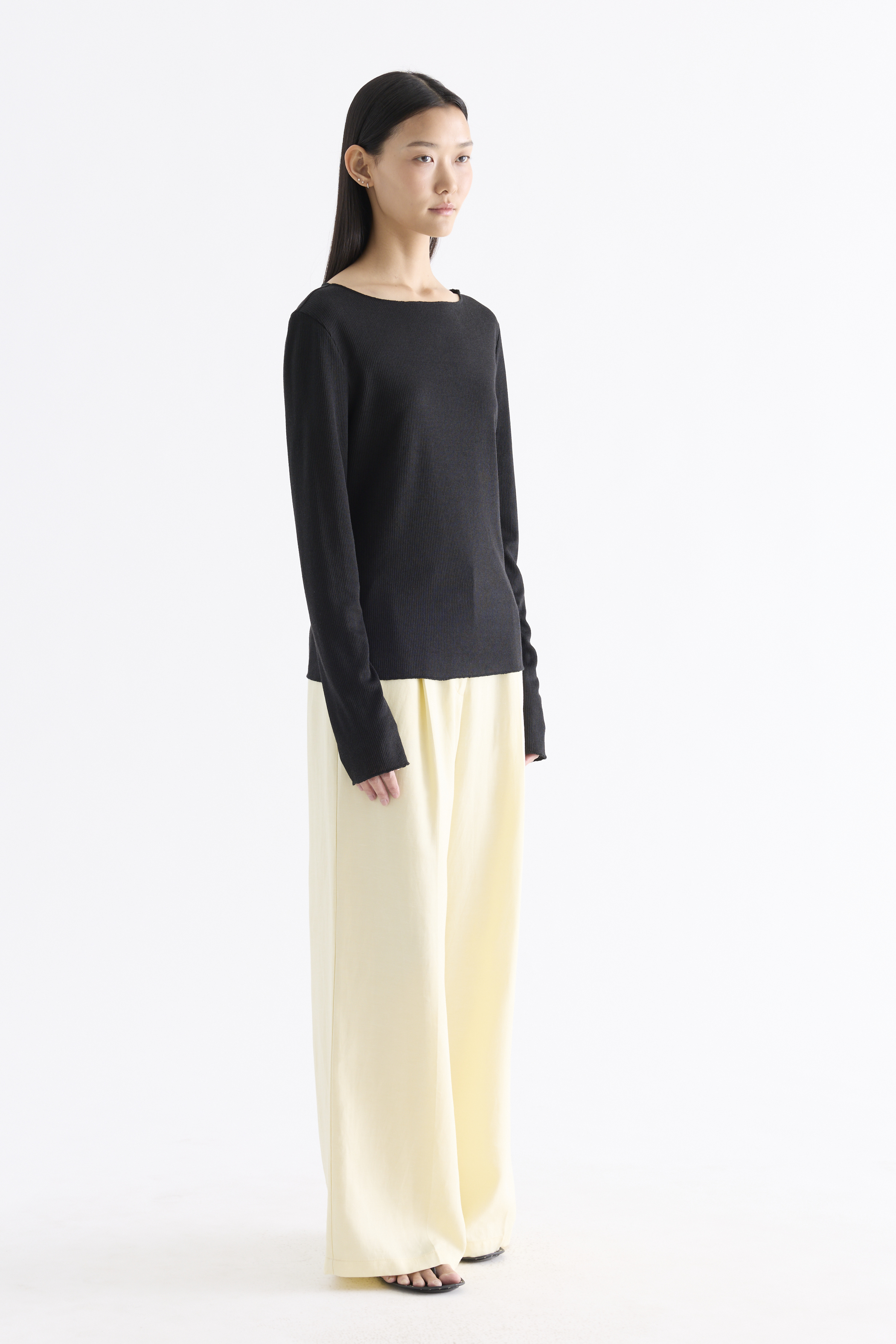 Sheer to impress. Made from soft and light fabric, this top features a wide neckline, long sleeves and a relaxed fit.
