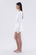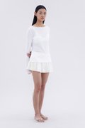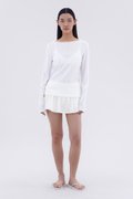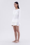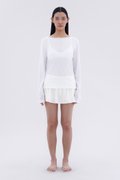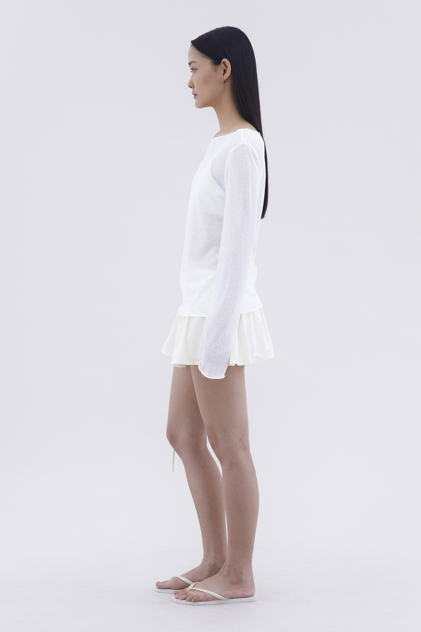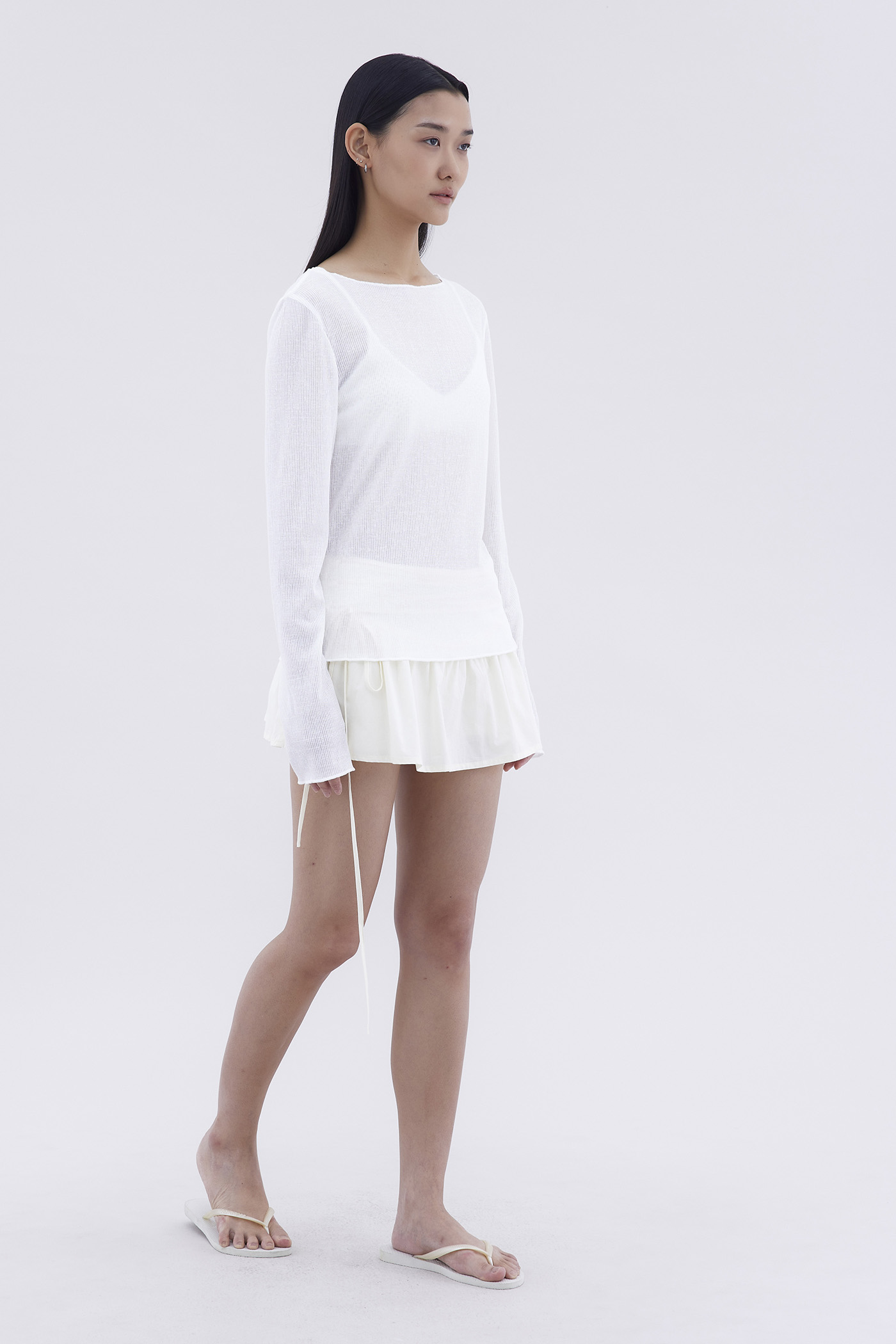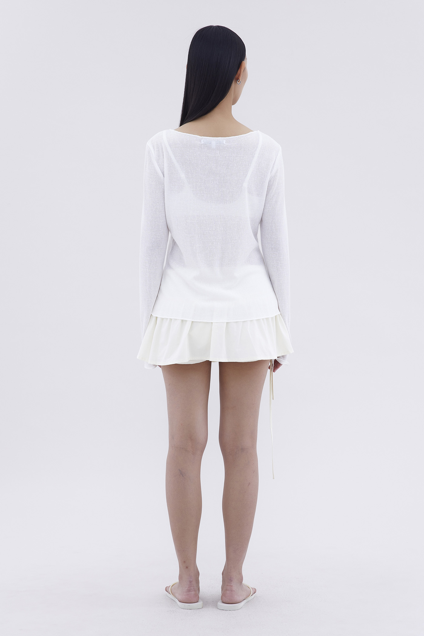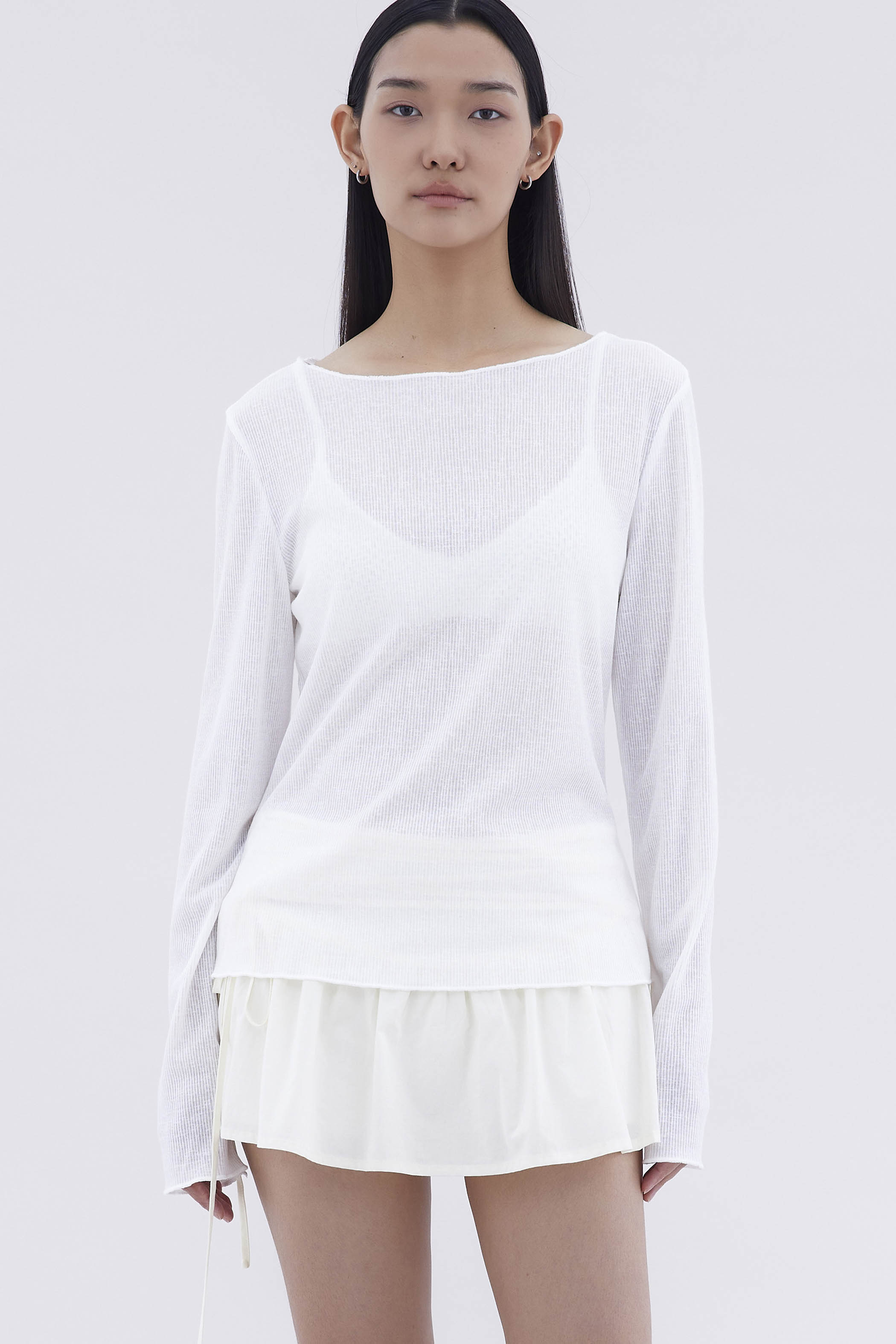 Sheer to impress. Made from soft and light fabric, this top features a wide neckline, long sleeves and a relaxed fit.