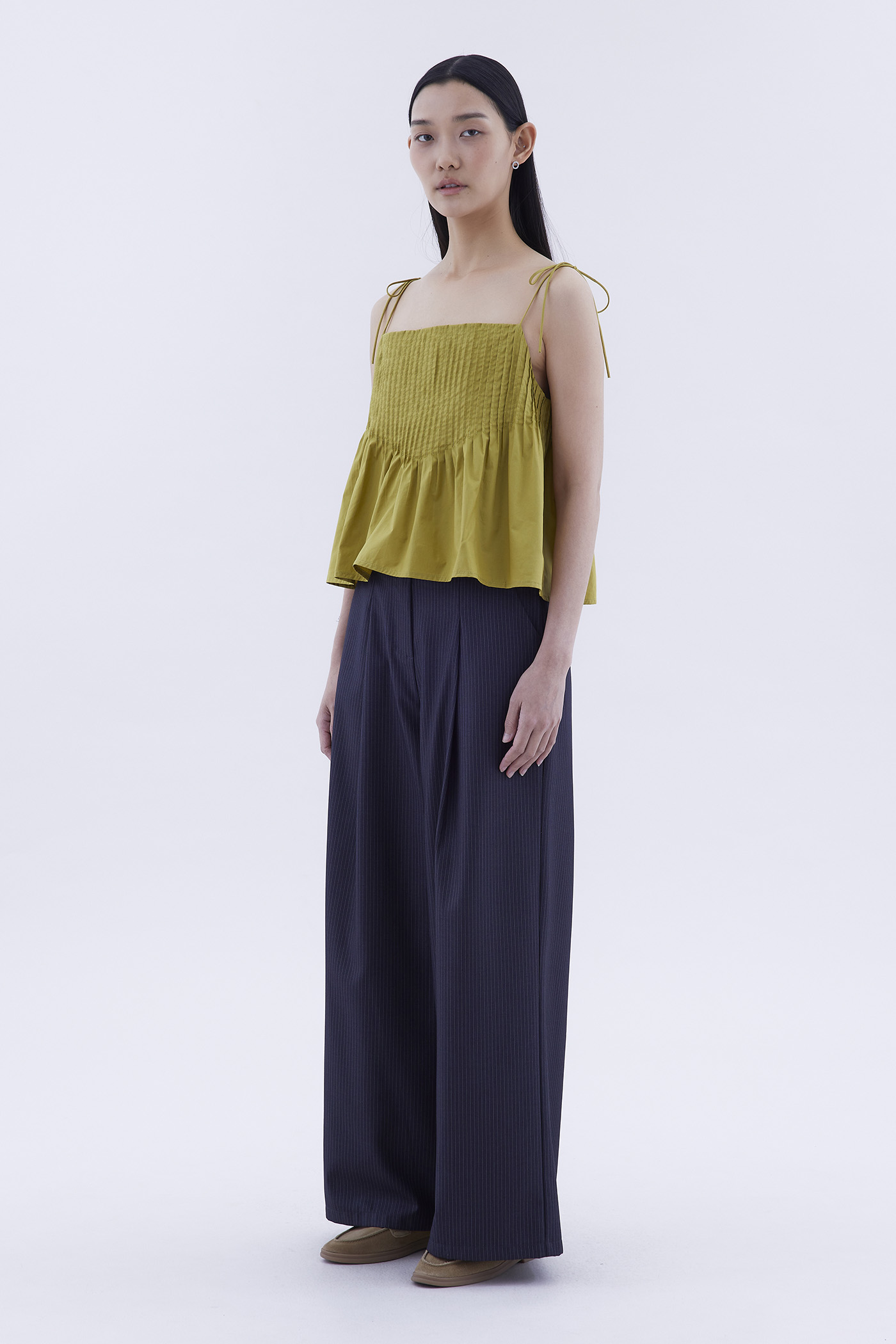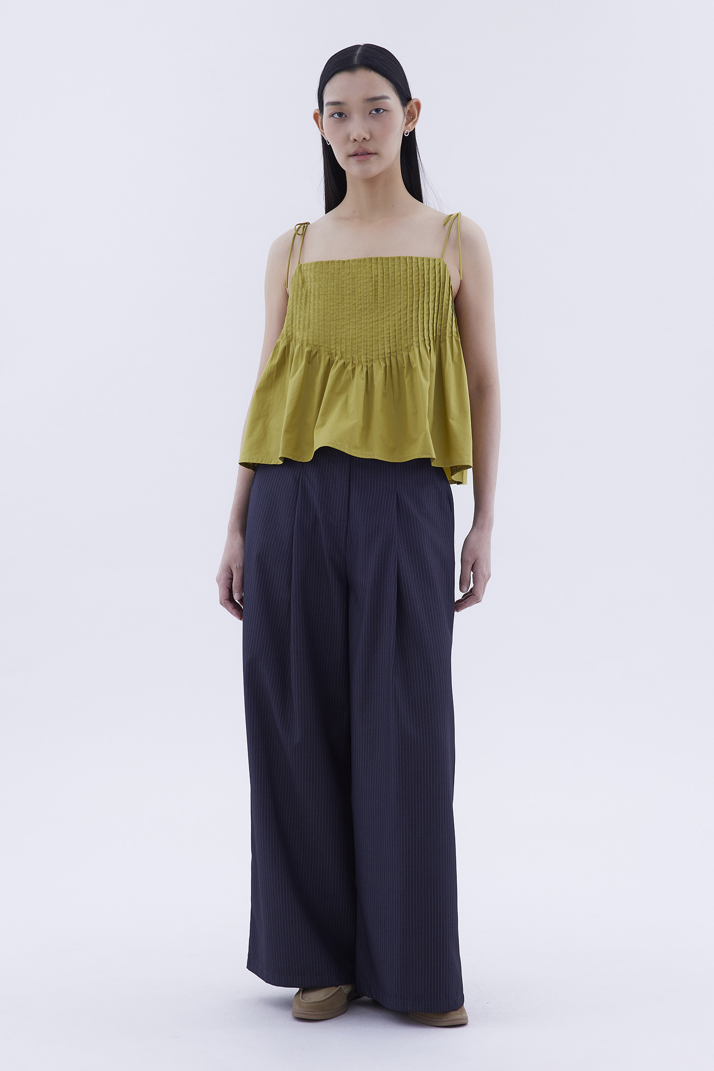Tactile. Made from light and crisp cotton, this sleeveless top features pin-tuck pleats, a straight neckline and slim self-tying shoulder straps. Worn in a relaxed fit.