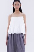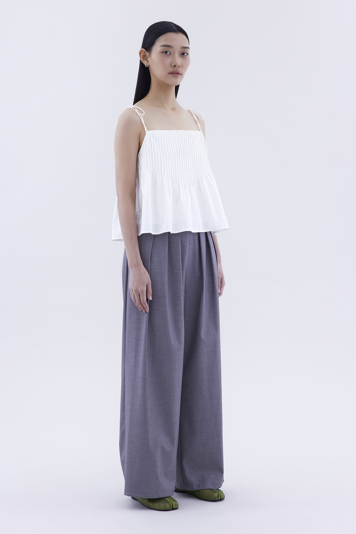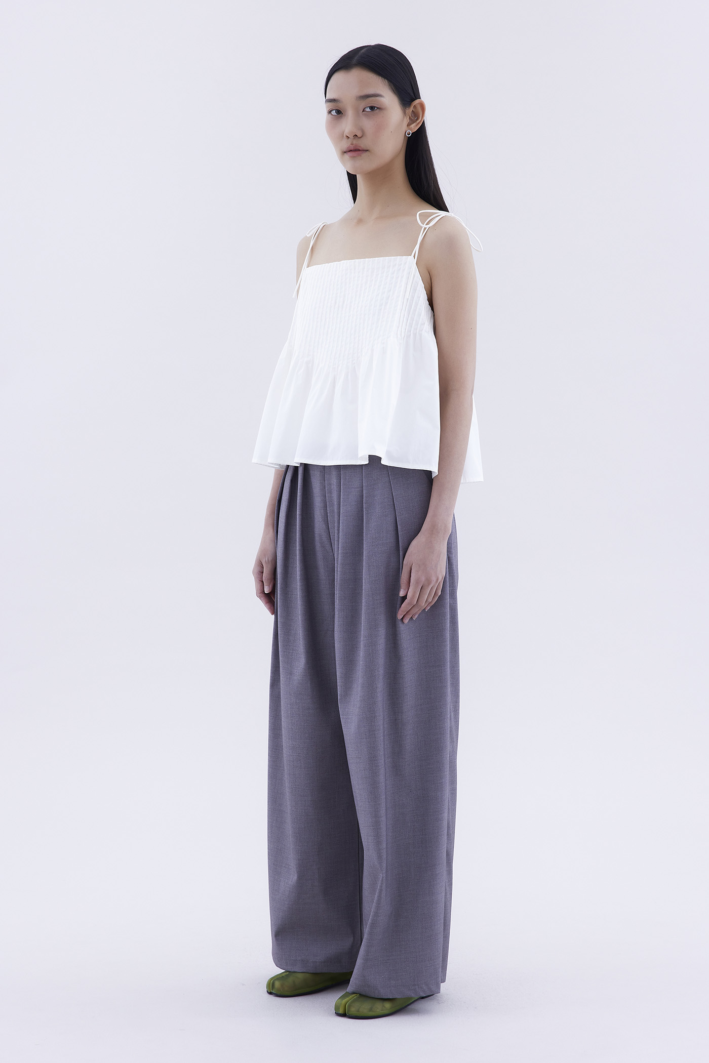 Tactile. Made from light and crisp cotton, this sleeveless top features pin-tuck pleats, a straight neckline and slim self-tying shoulder straps. Worn in a relaxed fit.