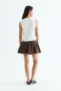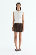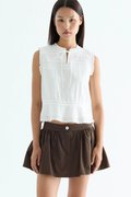 Warm-weather approved. Cut from airy and softly structured seersucker cotton, this top features a frill-trimmed neckline, front keyhole opening with tie-strap, pleat and lace detailing, as well as a lace-trimmed hem. Worn in a slim fit with a side zip closure.