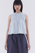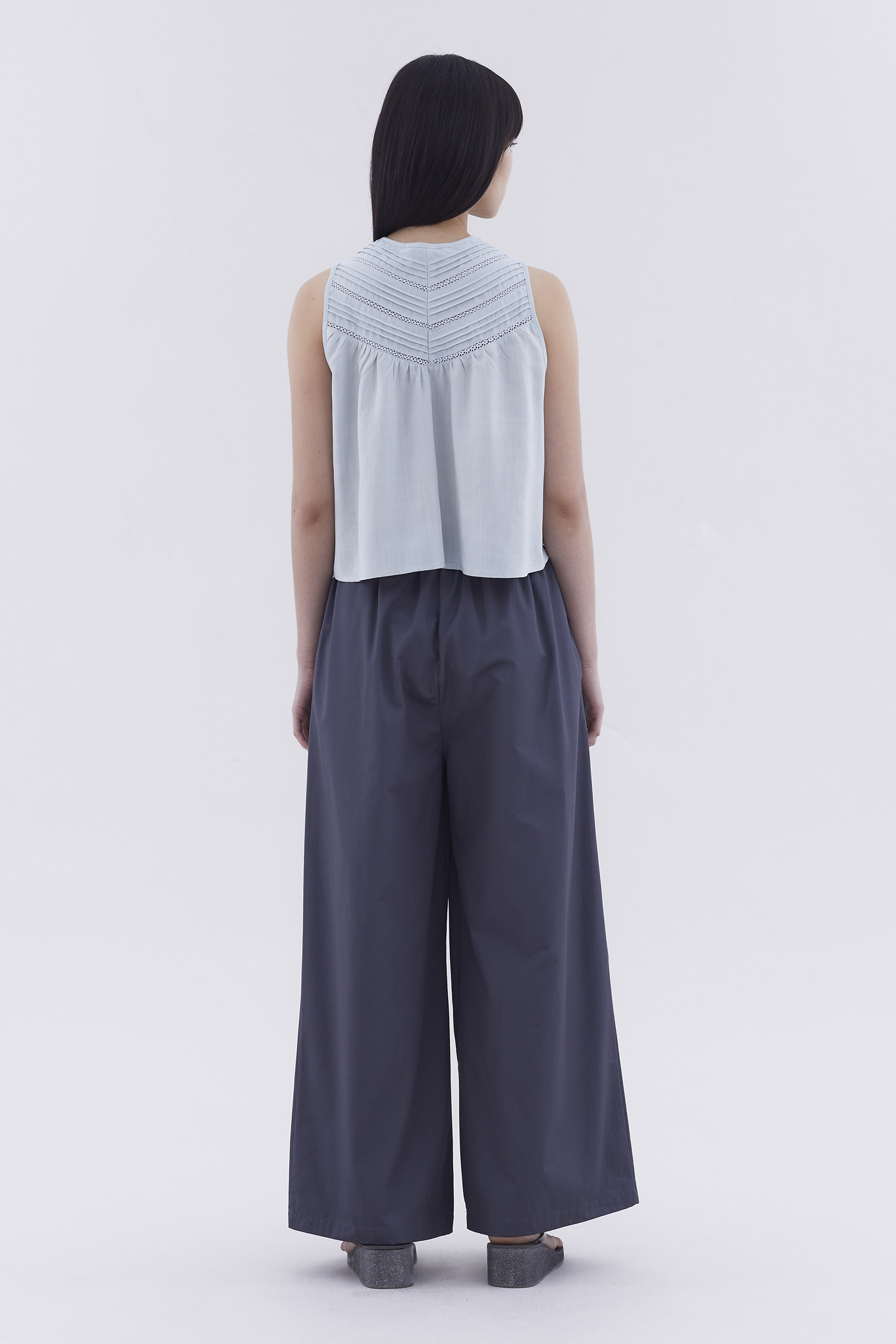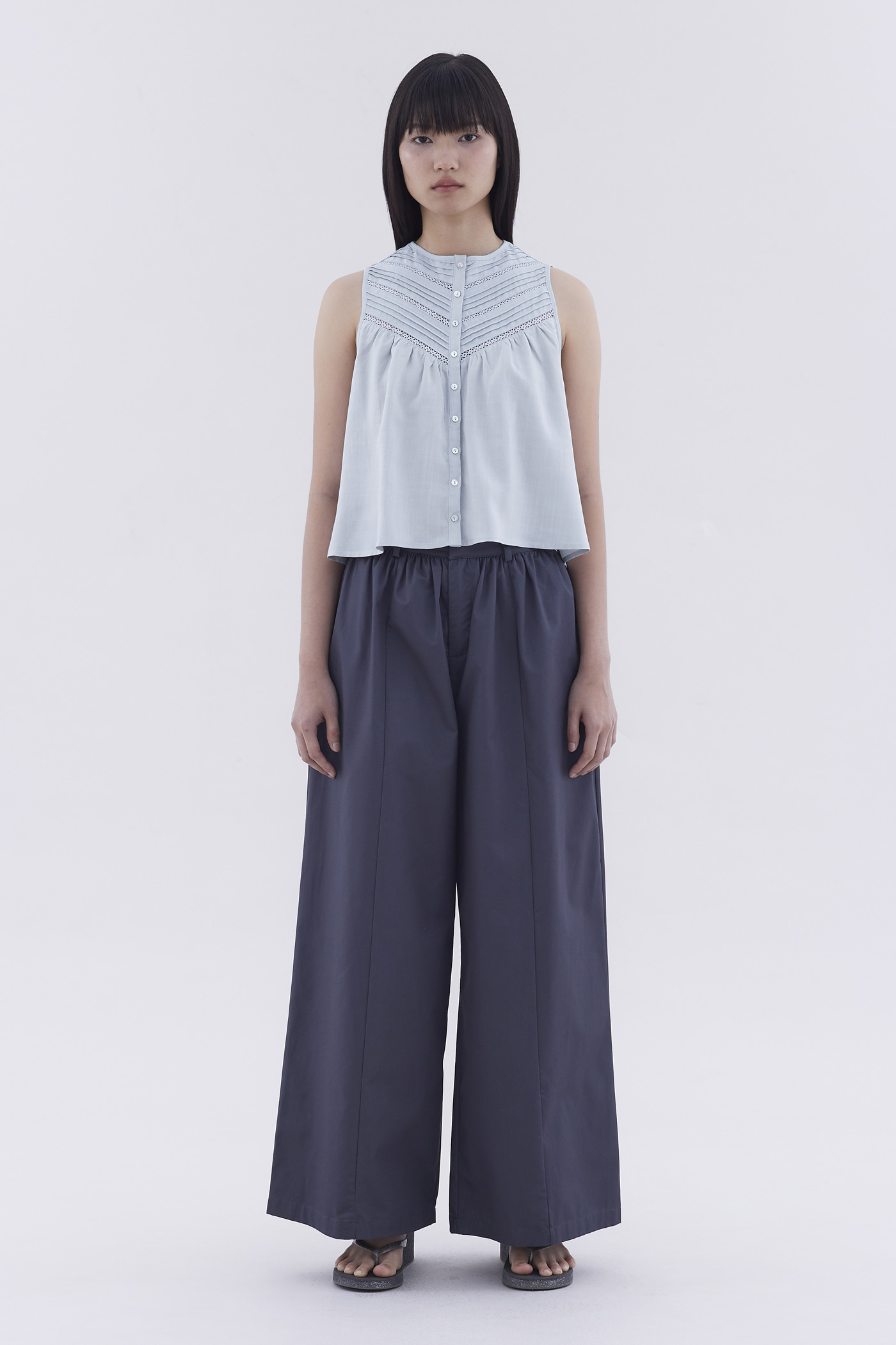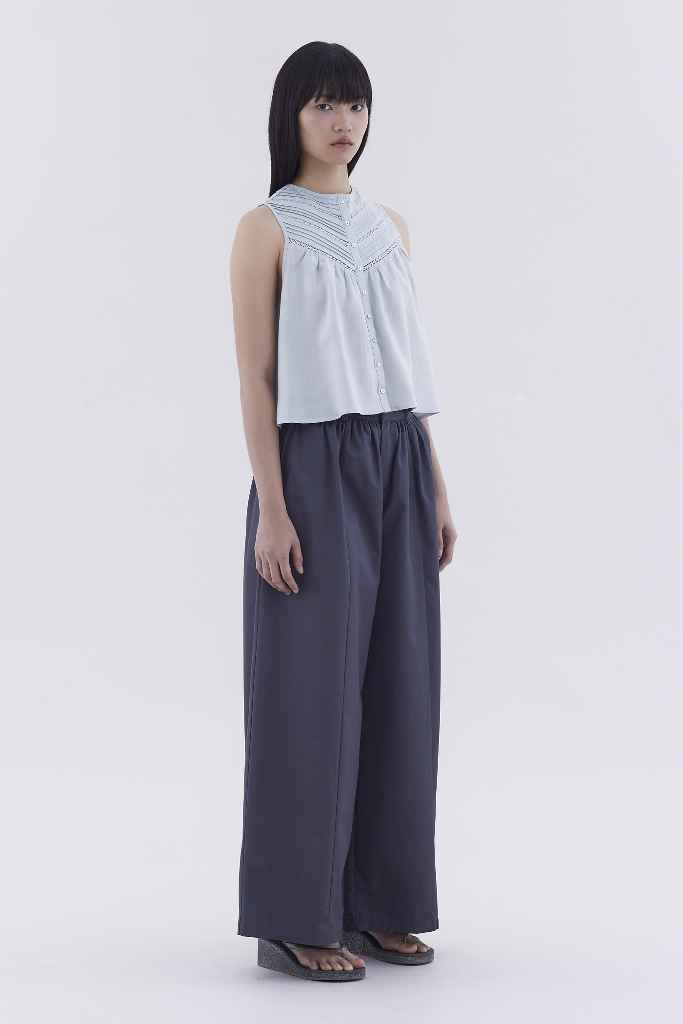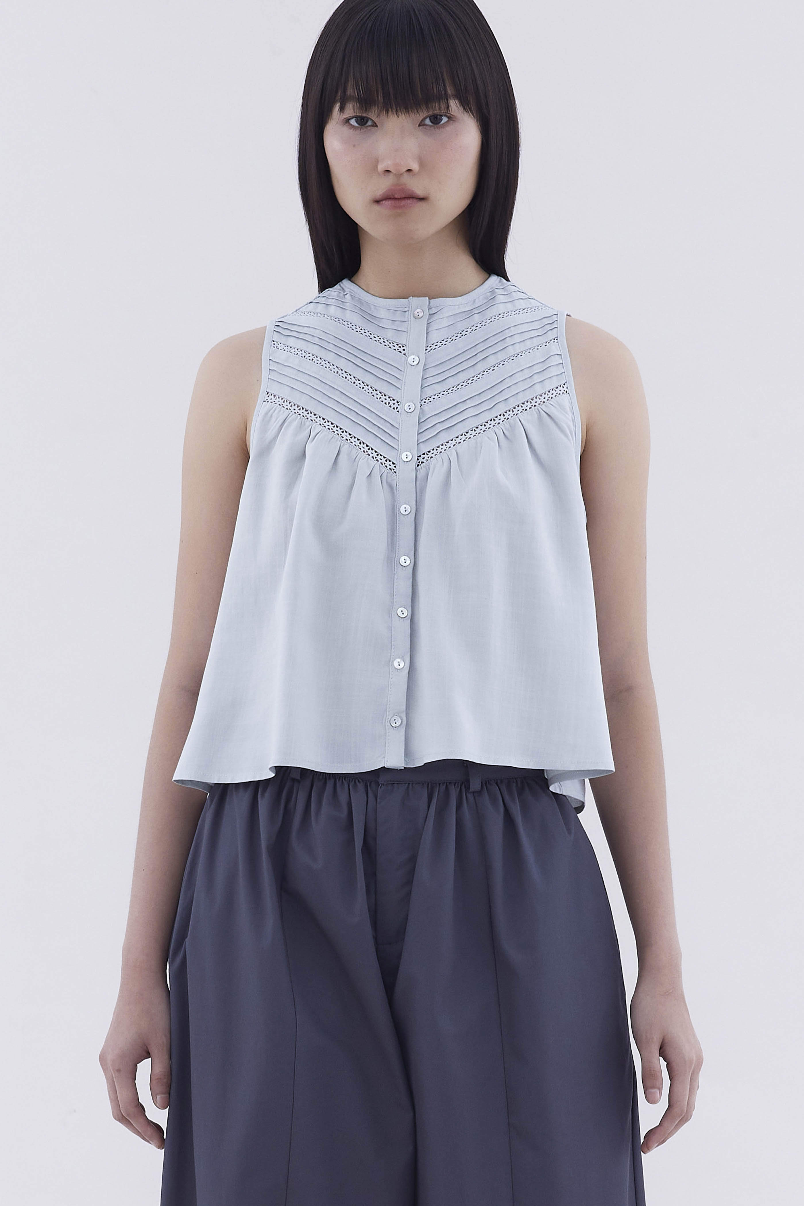 Cool off. Cut from airy and non-stretch Tencel, this sleeveless top features a round neckline, V-shaped pin-tuck pleats and lace panels, as well as a button-down front. Worn in a slim fit.
