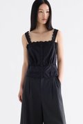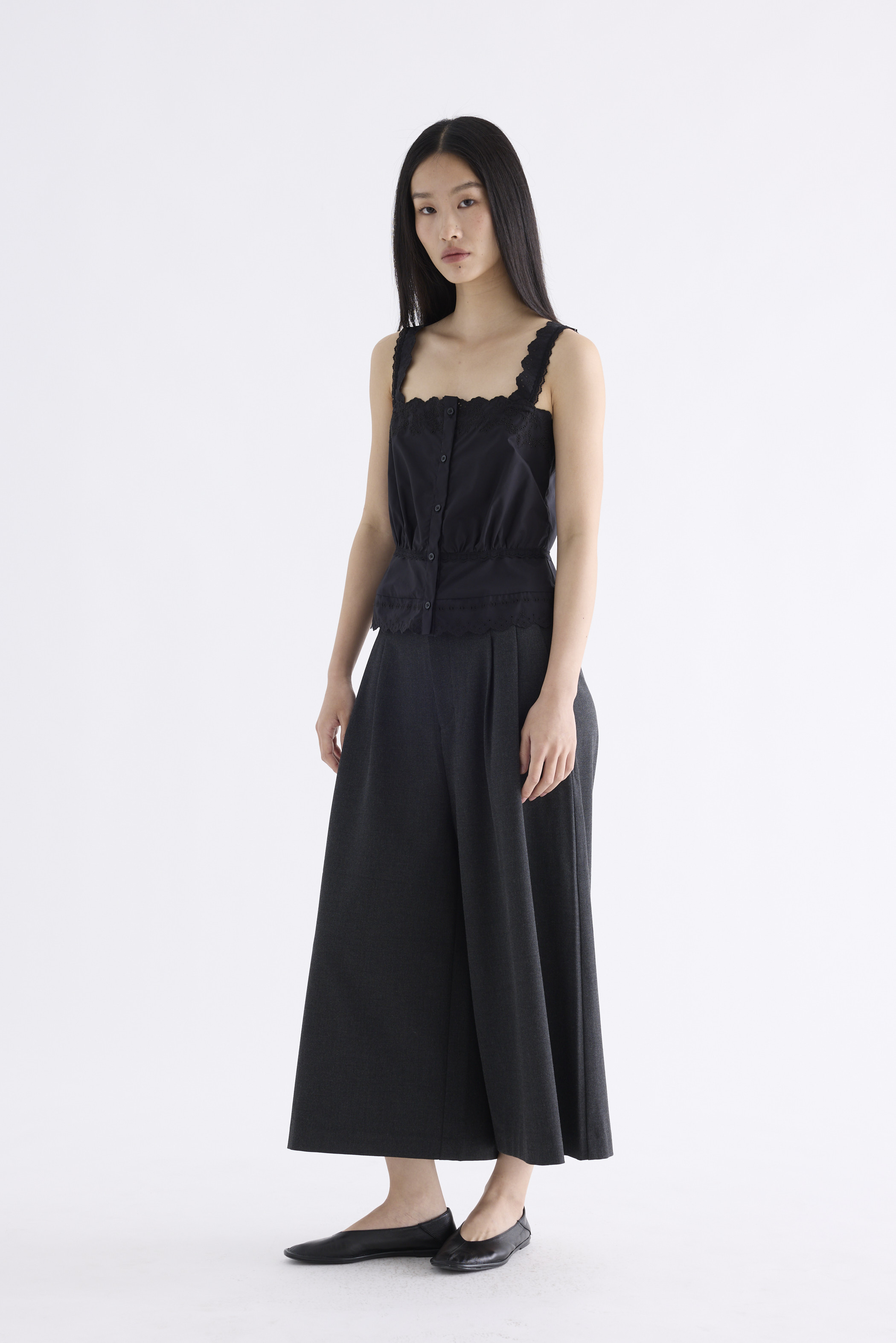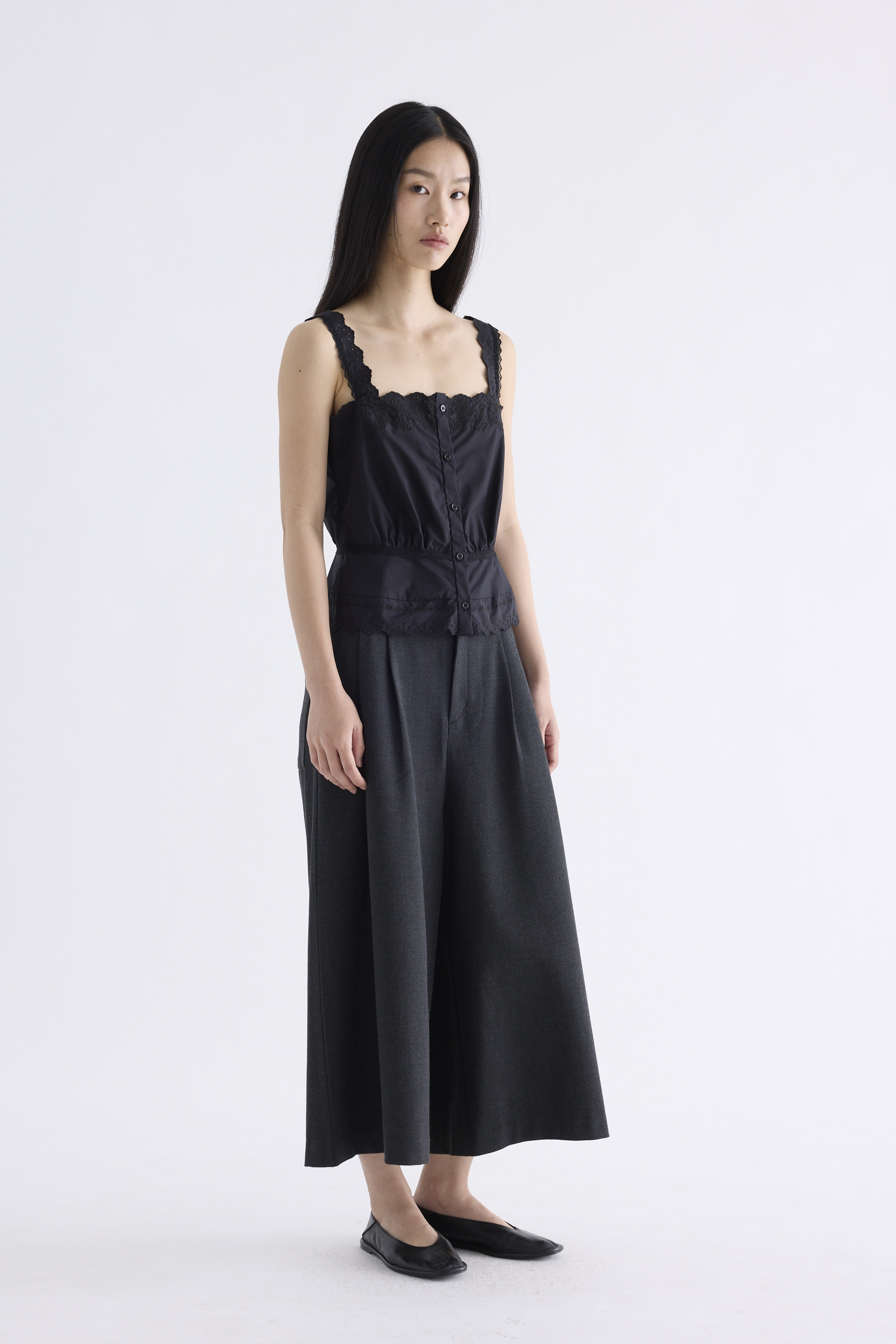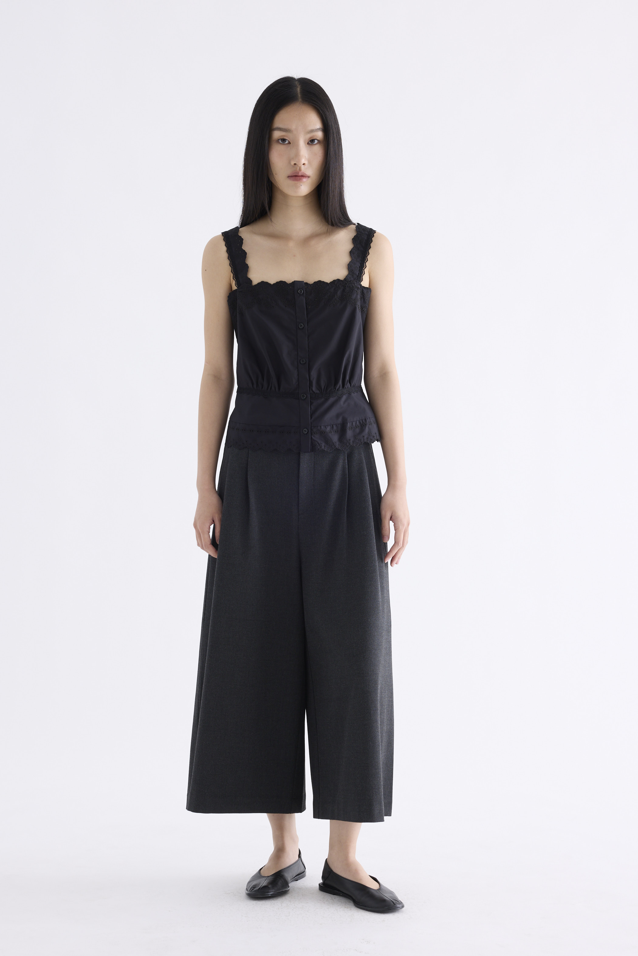 From the Postscript collection. This button-down top is cut from 100% organic cotton with a crisp and softly structured finish. Features lace shoulder straps, a lace-trimmed neckline and hem, and a subtly gathered lace-trimmed waist. Fits relaxed.