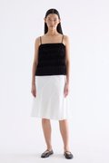 Statement lines. Made from softly structured fabric, this sleeveless top features twisted pleats at the front, slim adjustable shoulder straps, a straight neckline and a partially elasticated back. Worn in a slim fit.