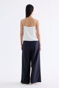 Statement lines. Made from softly structured fabric, this sleeveless top features twisted pleats at the front, slim adjustable shoulder straps, a straight neckline and a partially elasticated back. Worn in a slim fit.