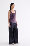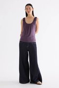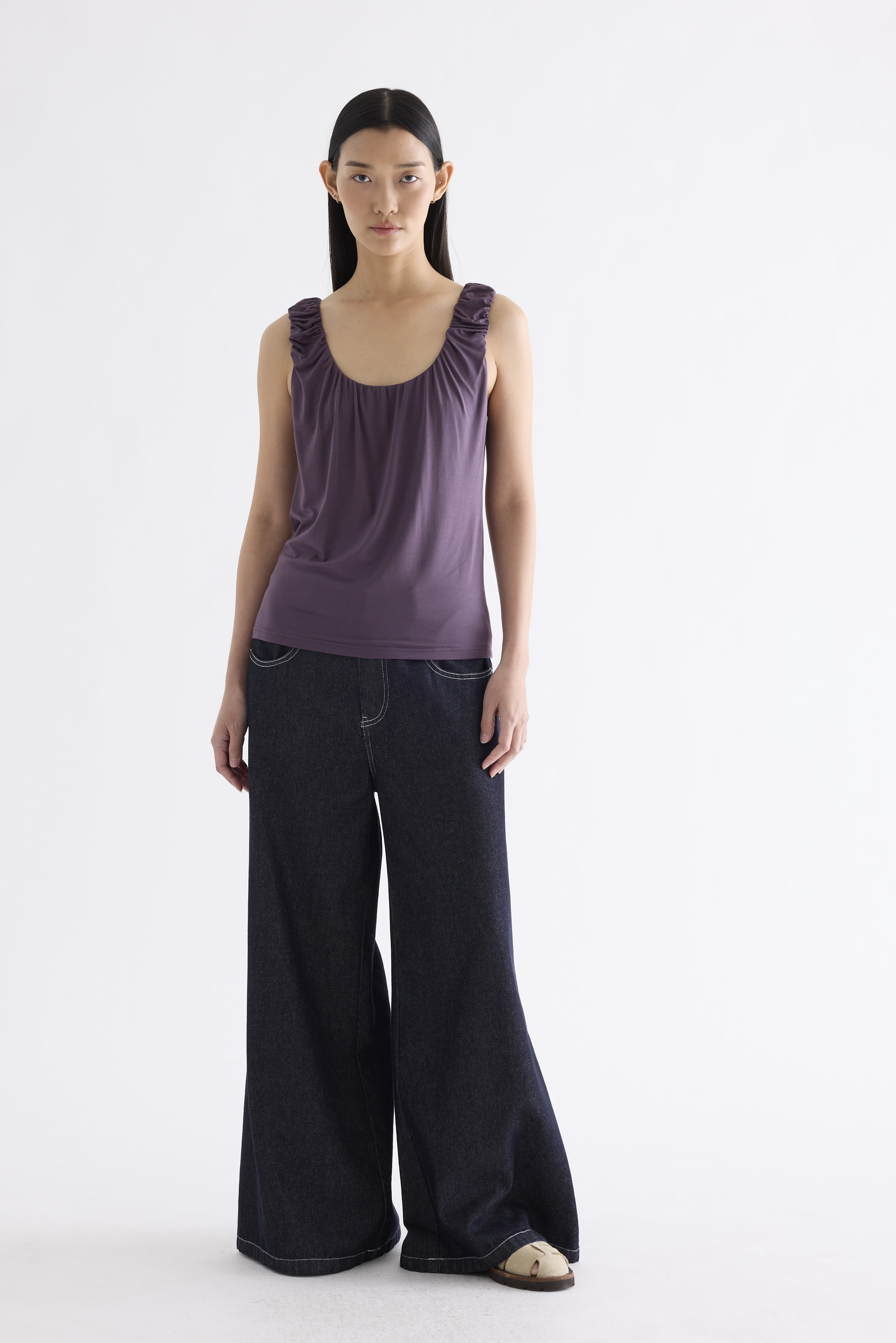 For the love of textures. Made from smooth and stretchy fabric, this sleeveless top features a U-shaped neckline and ruched shoulder straps. Worn in a slim fit.