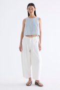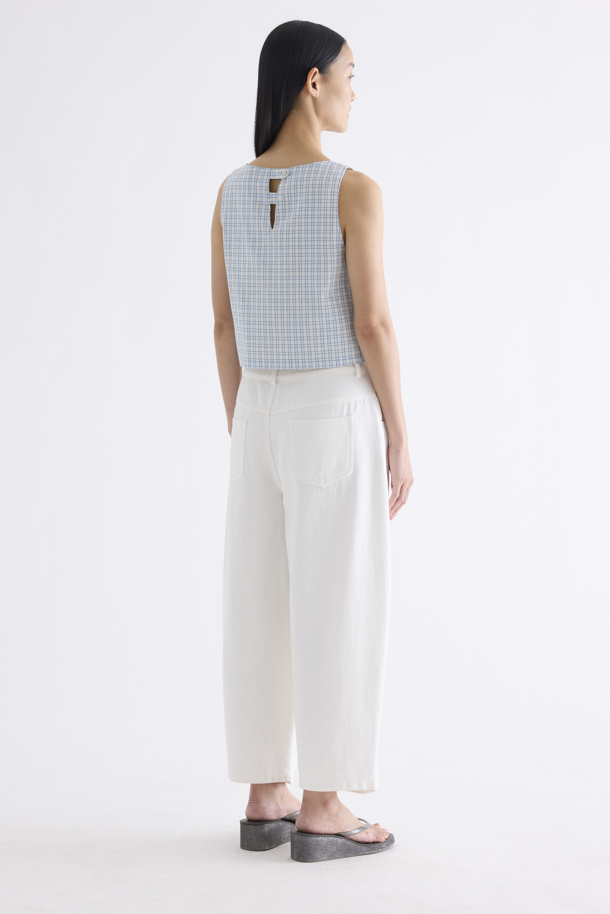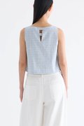 Clean lines. Made from airy and softly structured cotton, this sleeveless top features a round neckline and back buttons. Fits relaxed in a flattering boxy silhouette.