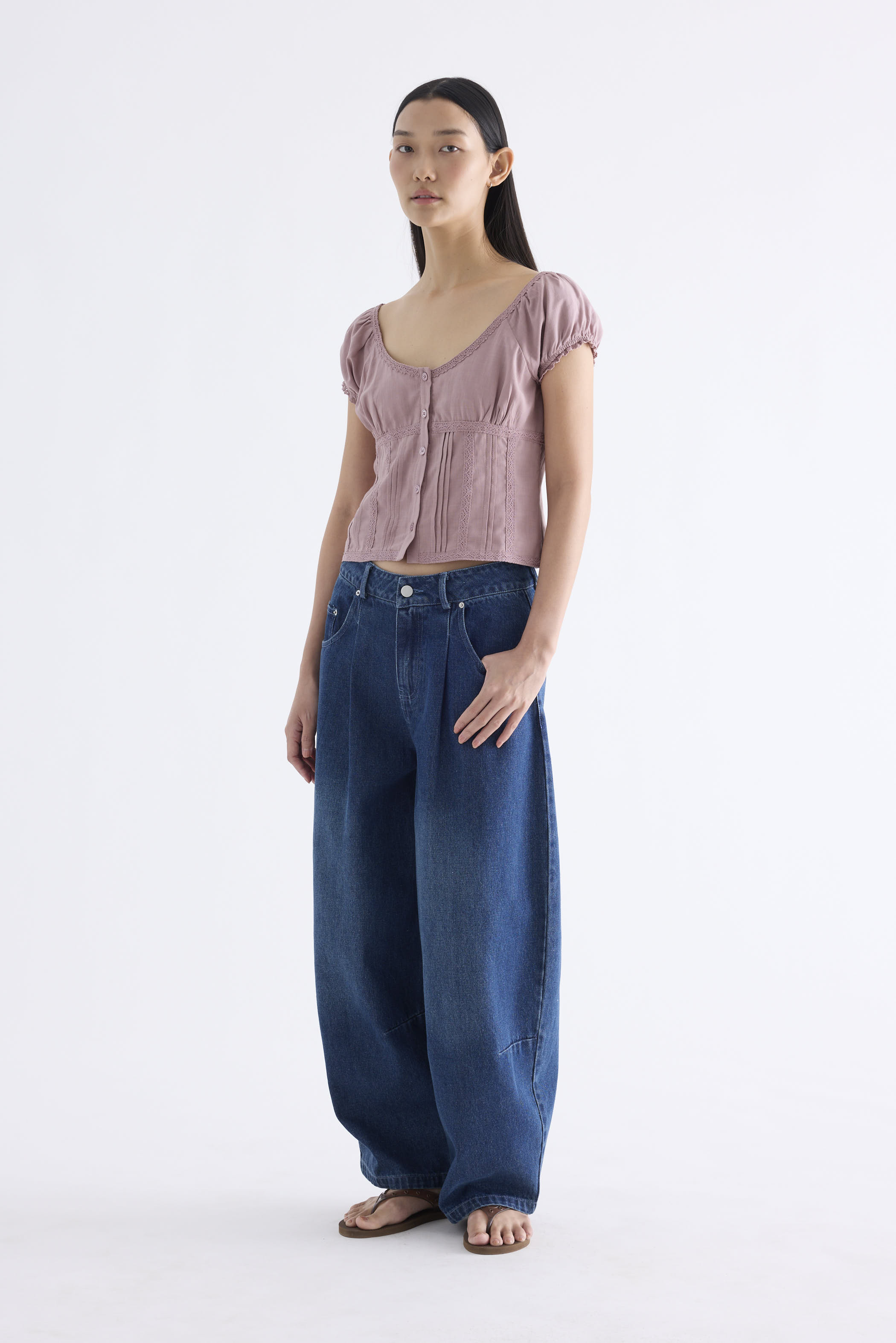 Detail oriented. Made from structured and non-stretch Tencel, this lace-trimmed top features a scooped neckline, elasticated lace-trimmed cap sleeves, pin-tuck pleats and lace panels. Worn in a slim fit with a button-down front.