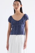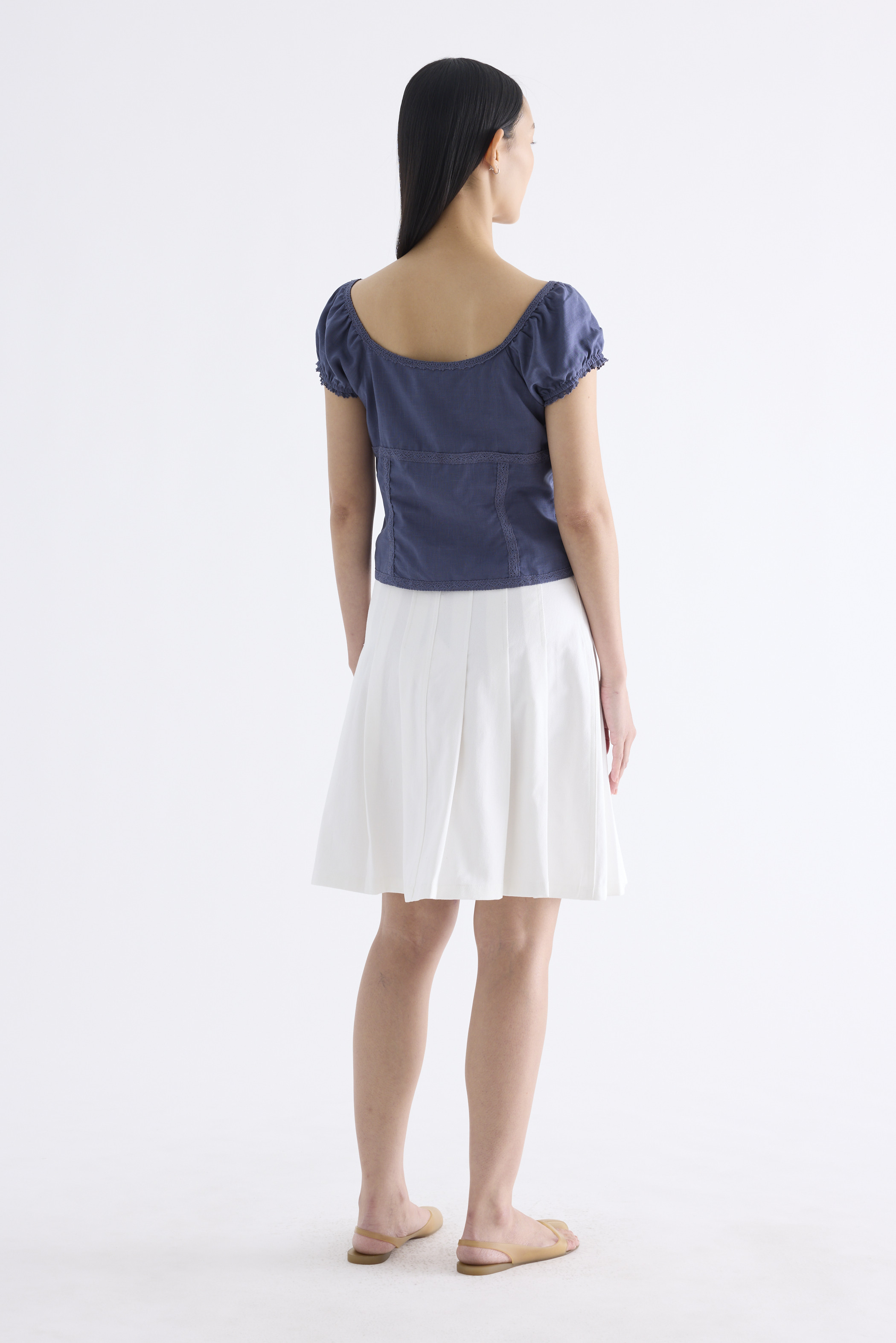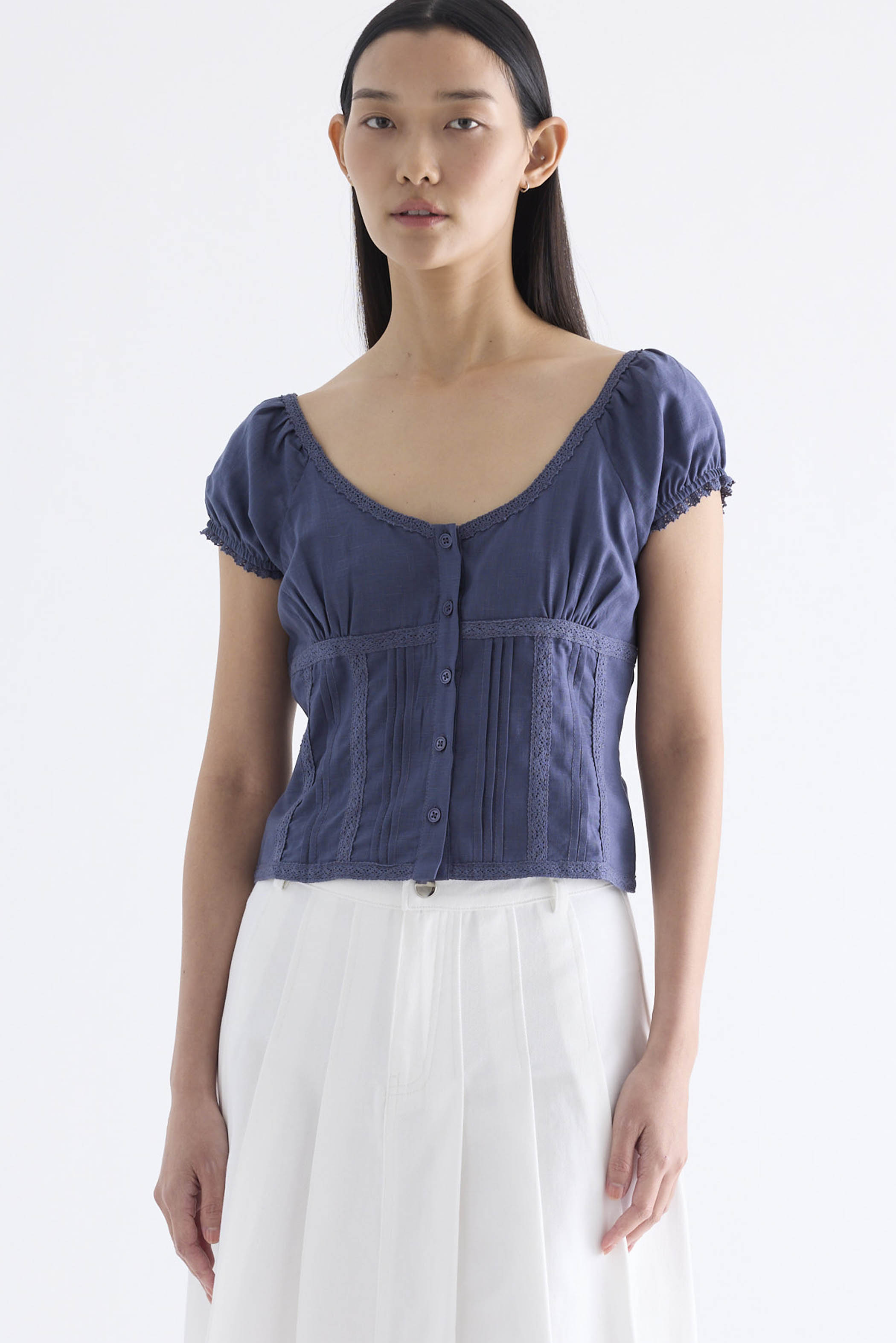 Detail oriented. Made from structured and non-stretch Tencel, this lace-trimmed top features a scooped neckline, elasticated lace-trimmed cap sleeves, pin-tuck pleats and lace panels. Worn in a slim fit with a button-down front.