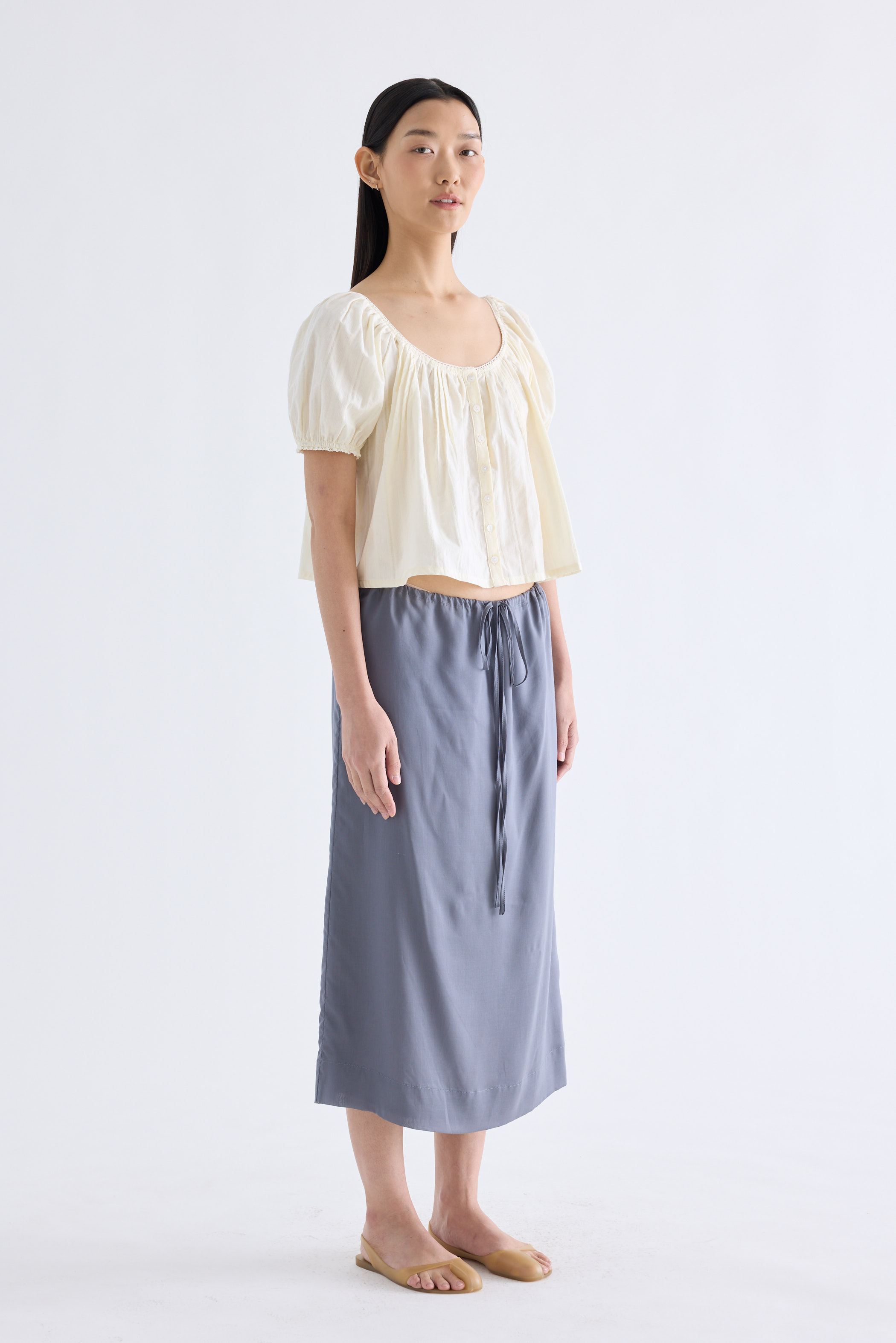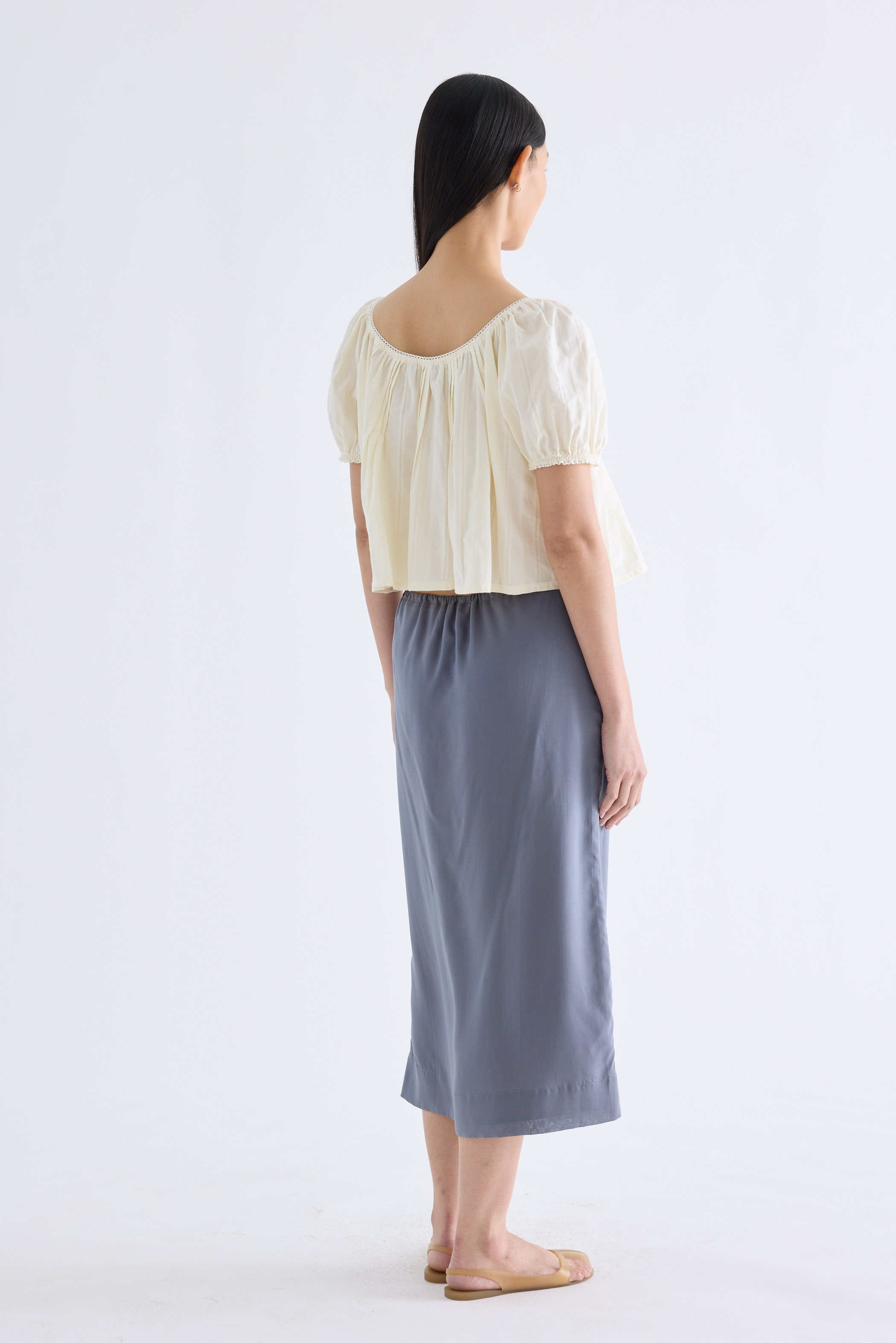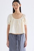 Volume up. Made from airy and striped cotton, this blouse features pleats, a lace-trimmed scoop neckline, short elasticated puffy sleeves and a button-down front. Worn in a relaxed fit.