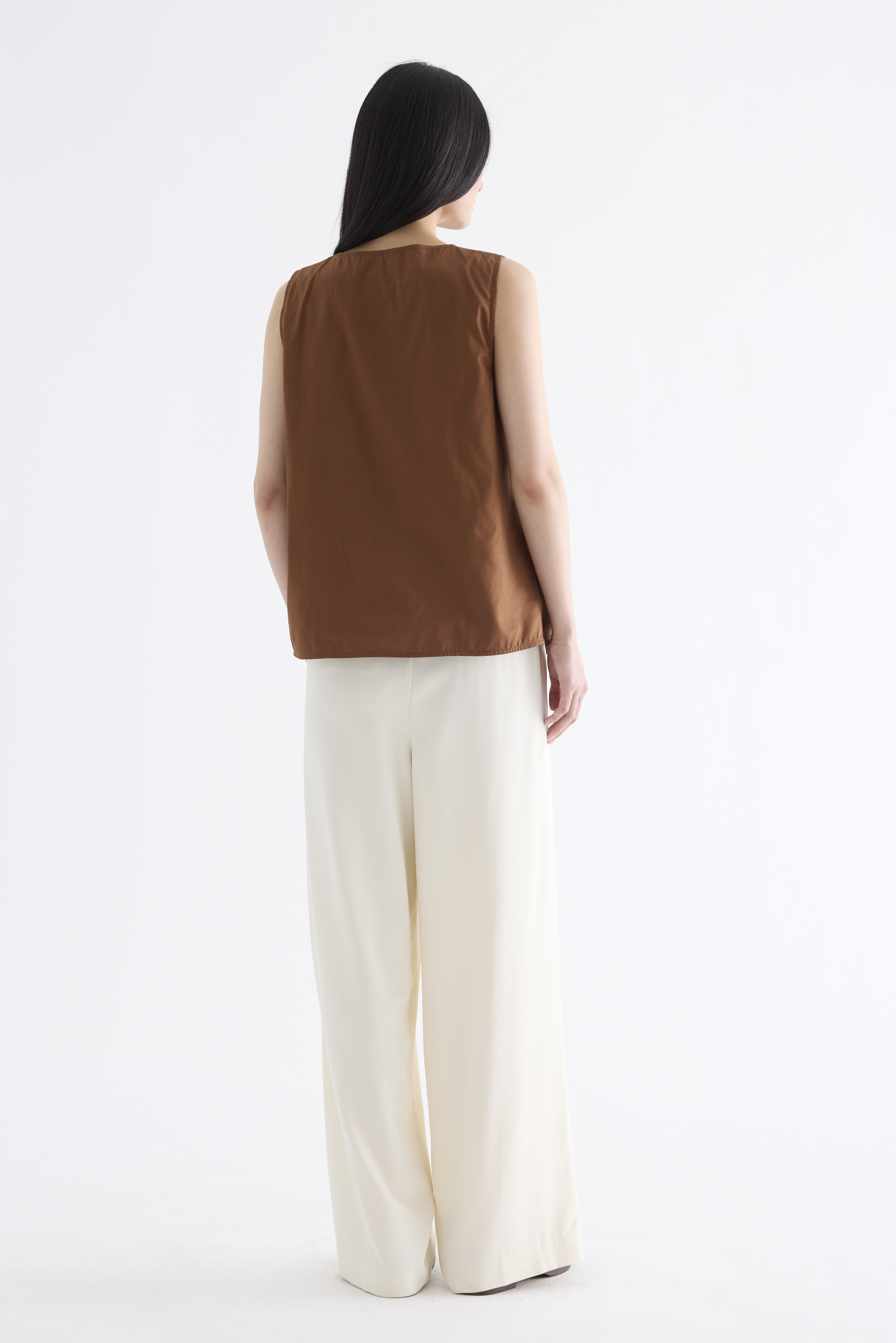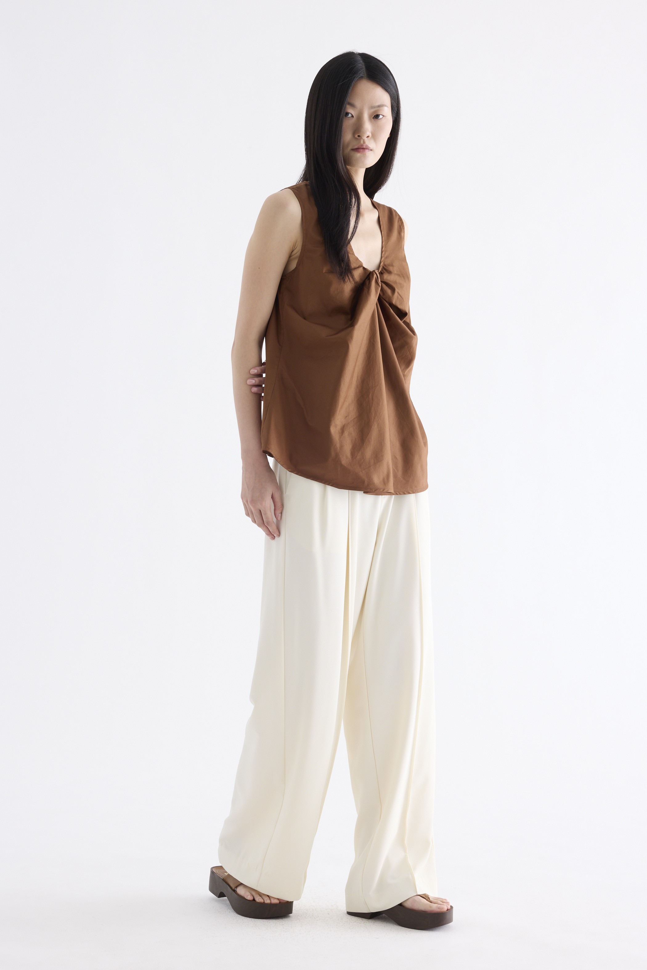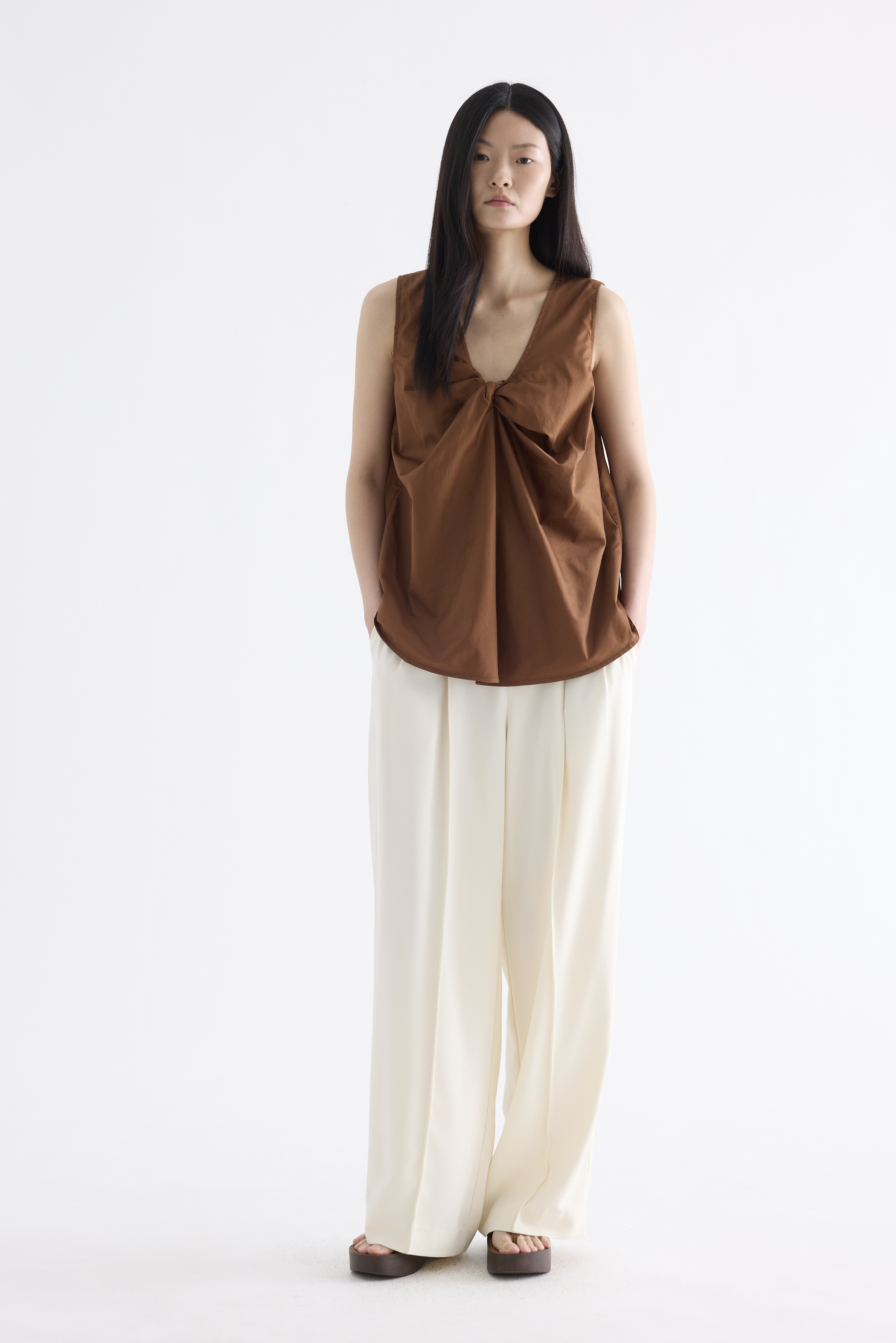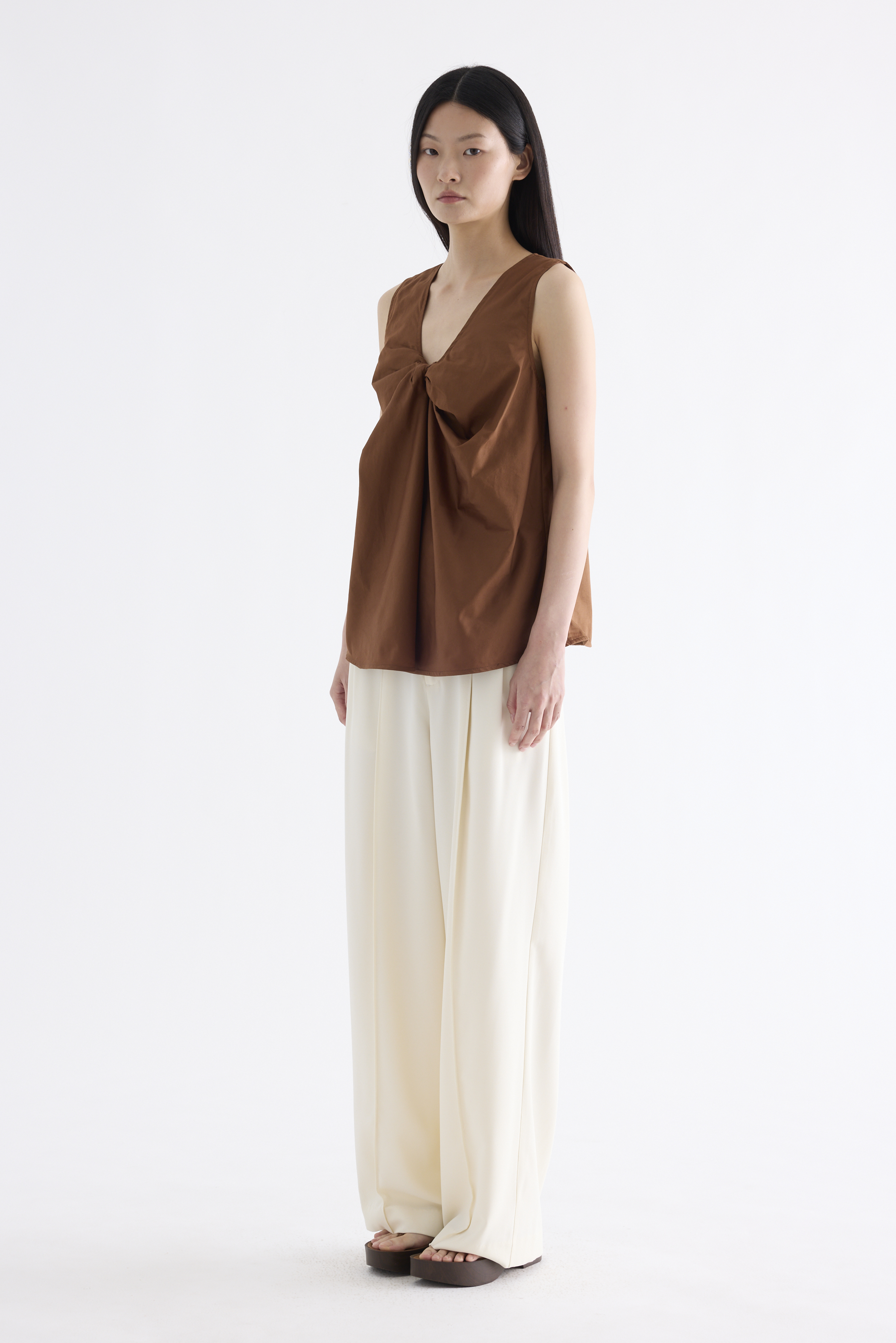 From the Postscript collection. Cut from fully lined cotton with a light and crisp finish, this sleeveless top features a V-neckline with a statement front twist, and a gently flared silhouette. Worn in a relaxed fit.