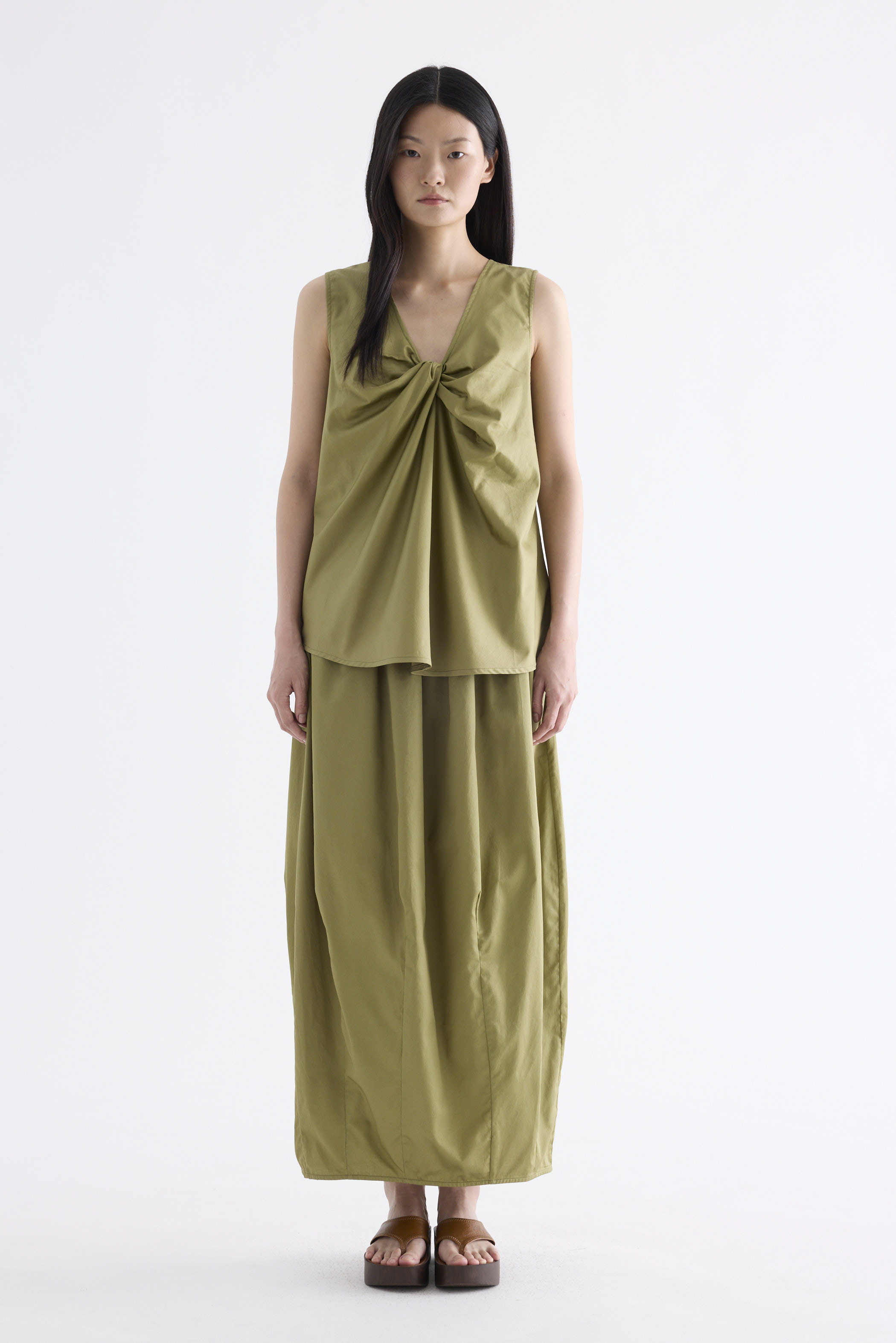 From the Postscript collection. Cut from fully lined cotton with a light and crisp finish, this sleeveless top features a V-neckline with a statement front twist, and a gently flared silhouette. Worn in a relaxed fit.