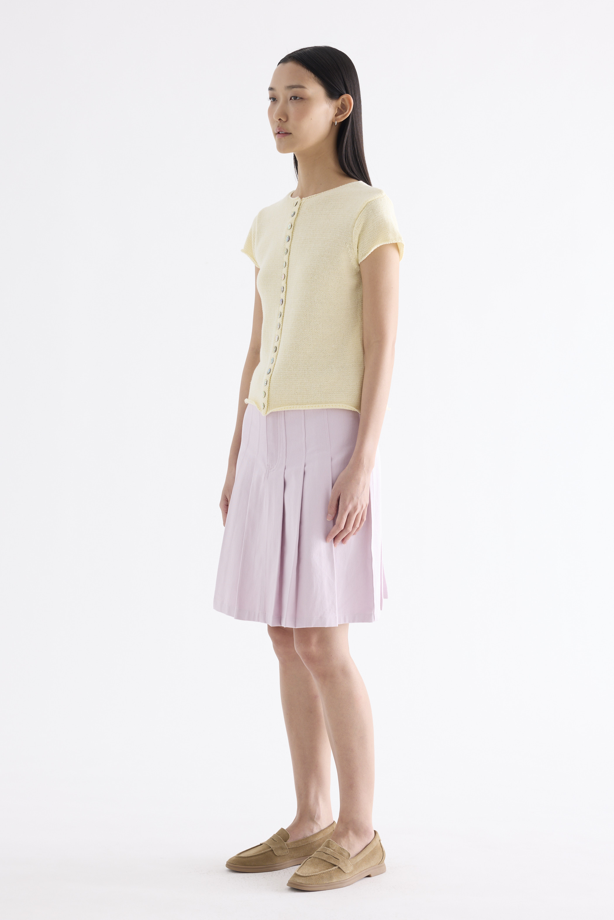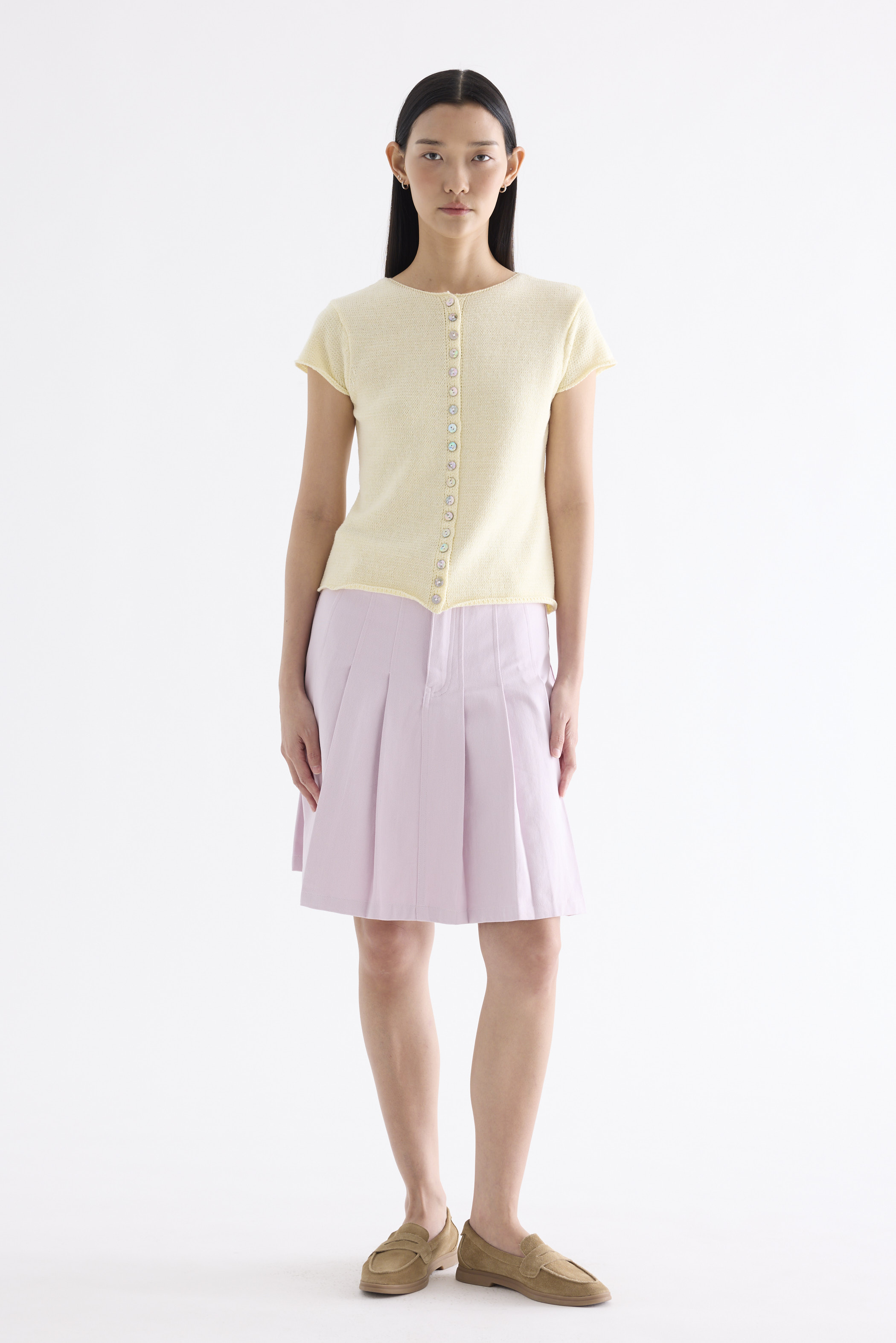 Subtle details. Made from soft and cosy knit, this top features a round neckline, button-down front and rolled hem. Worn in a slim fit.