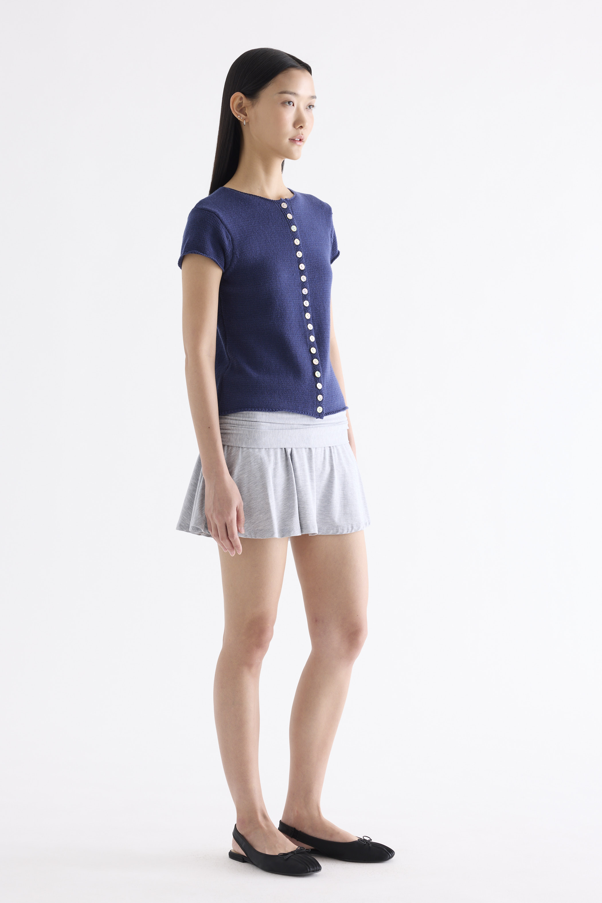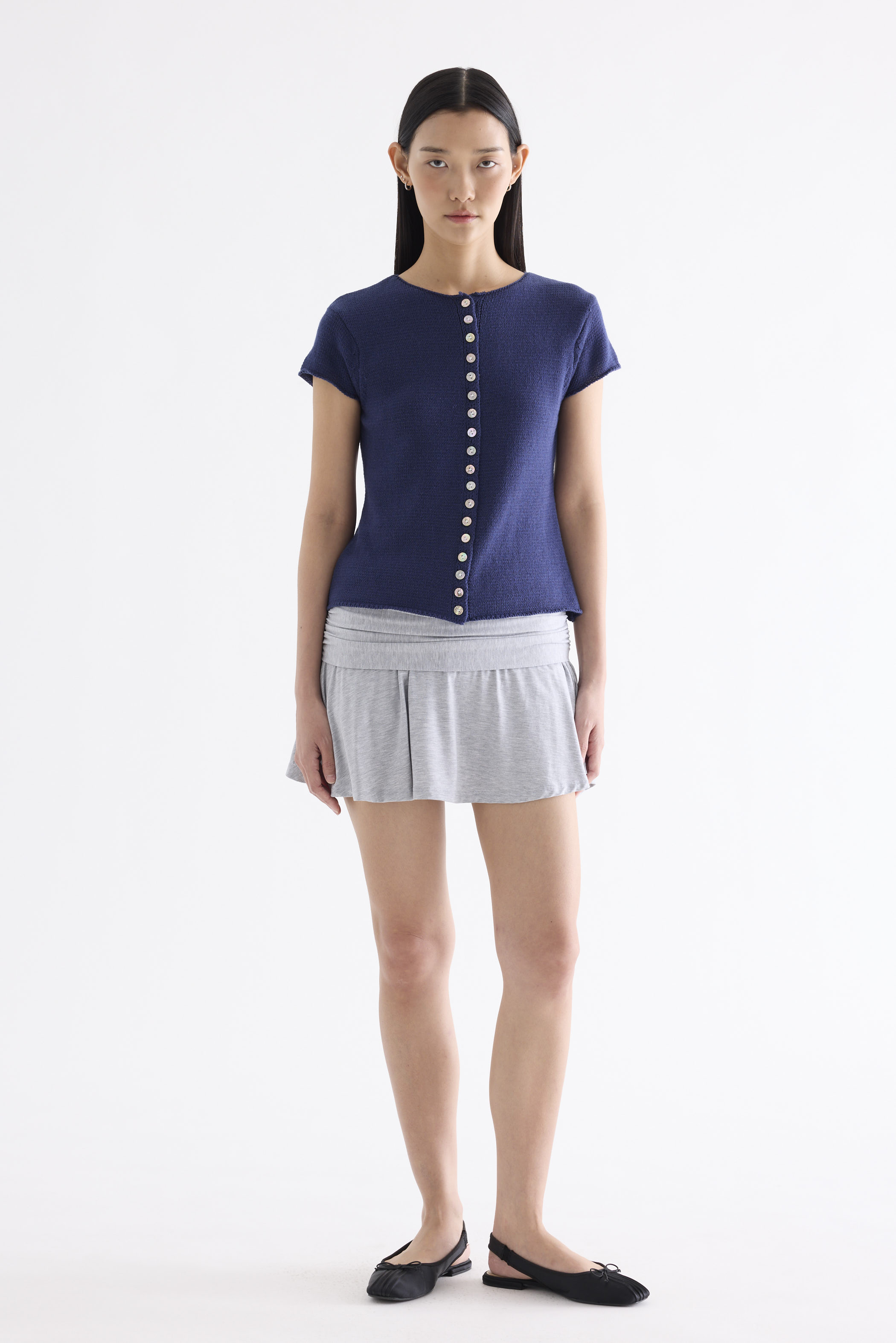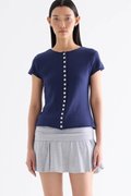 Subtle details. Made from soft and cosy knit, this top features a round neckline, button-down front and rolled hem. Worn in a slim fit.