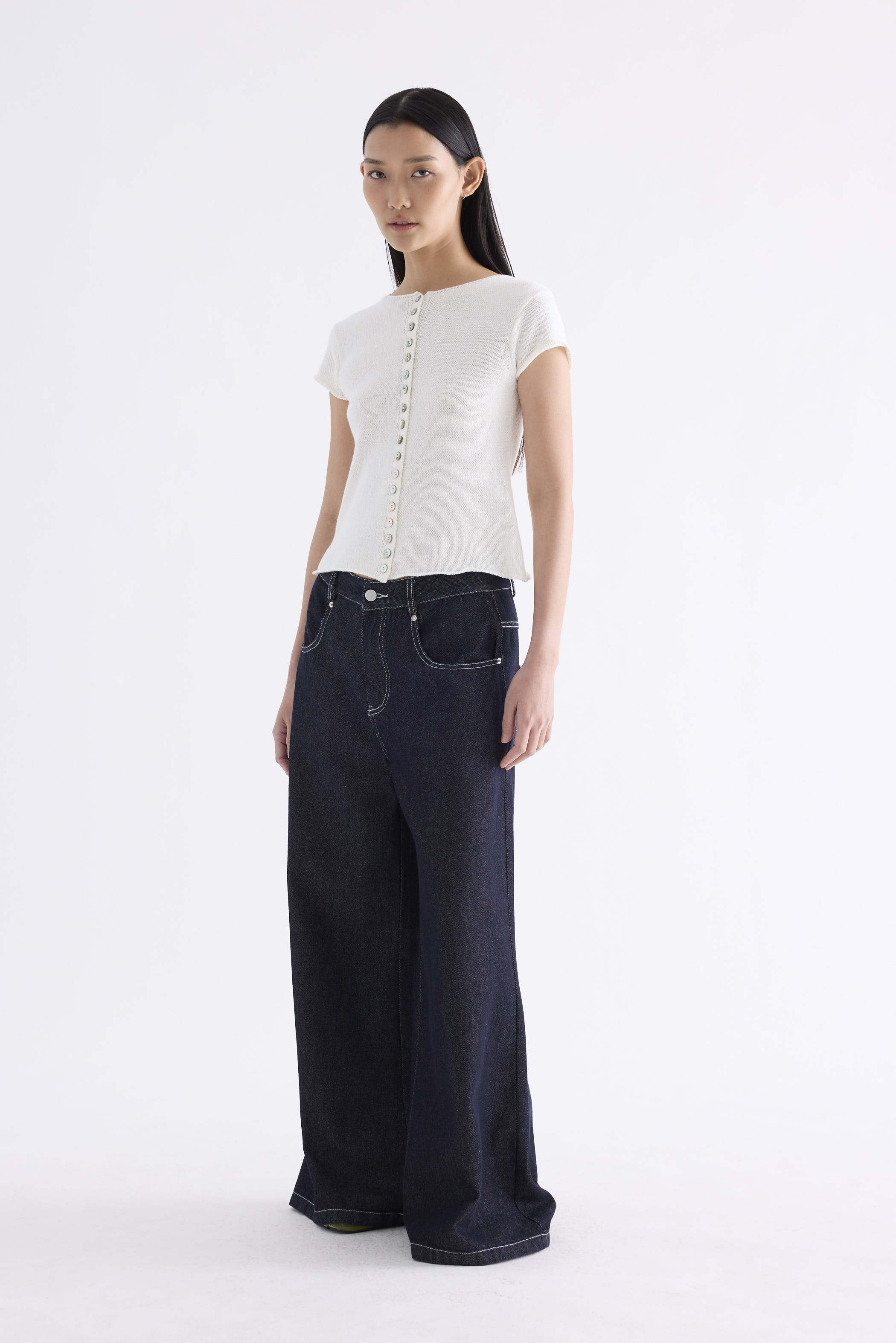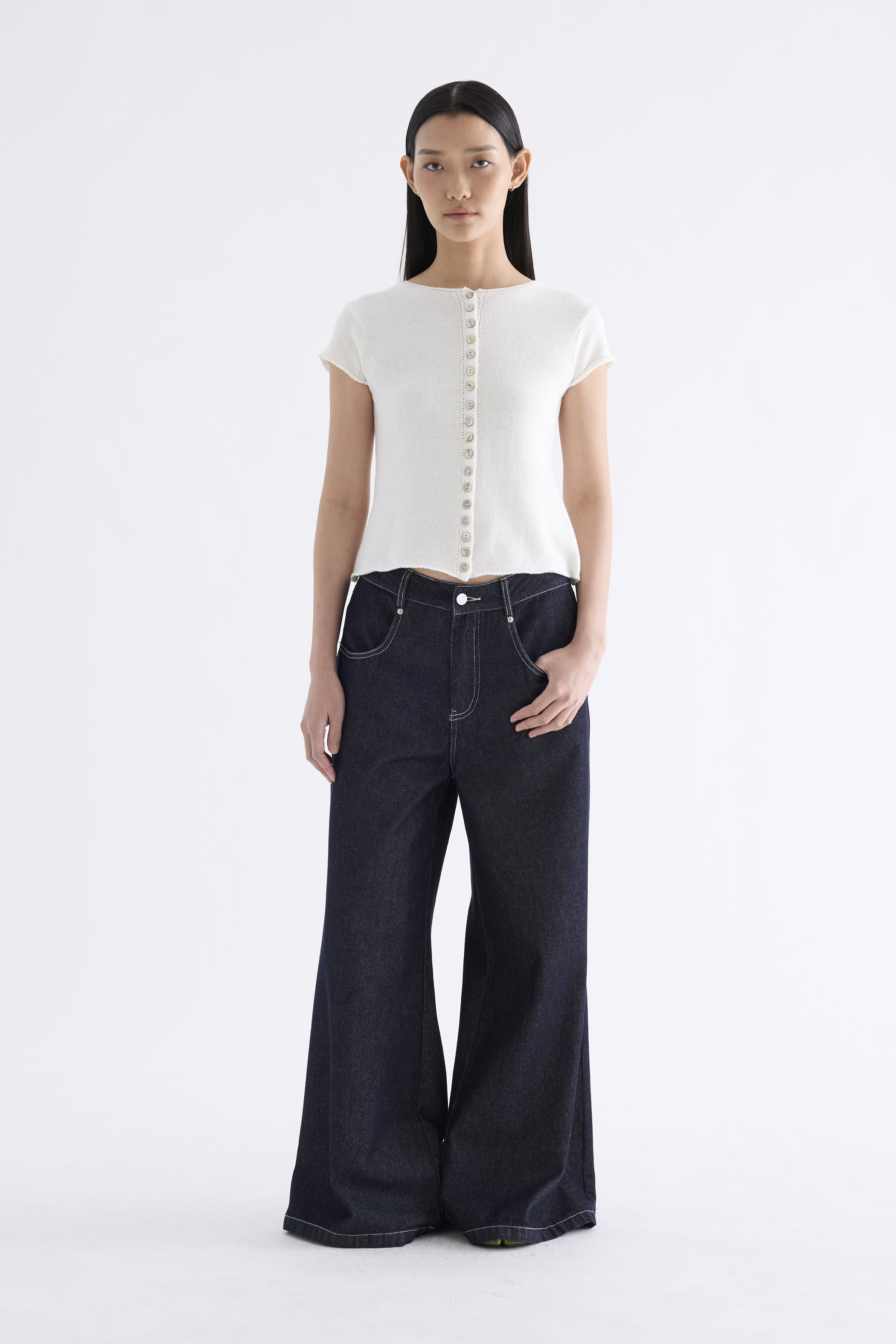 Subtle details. Made from soft and cosy knit, this top features a round neckline, button-down front and rolled hem. Worn in a slim fit.