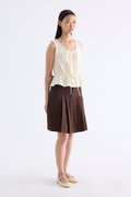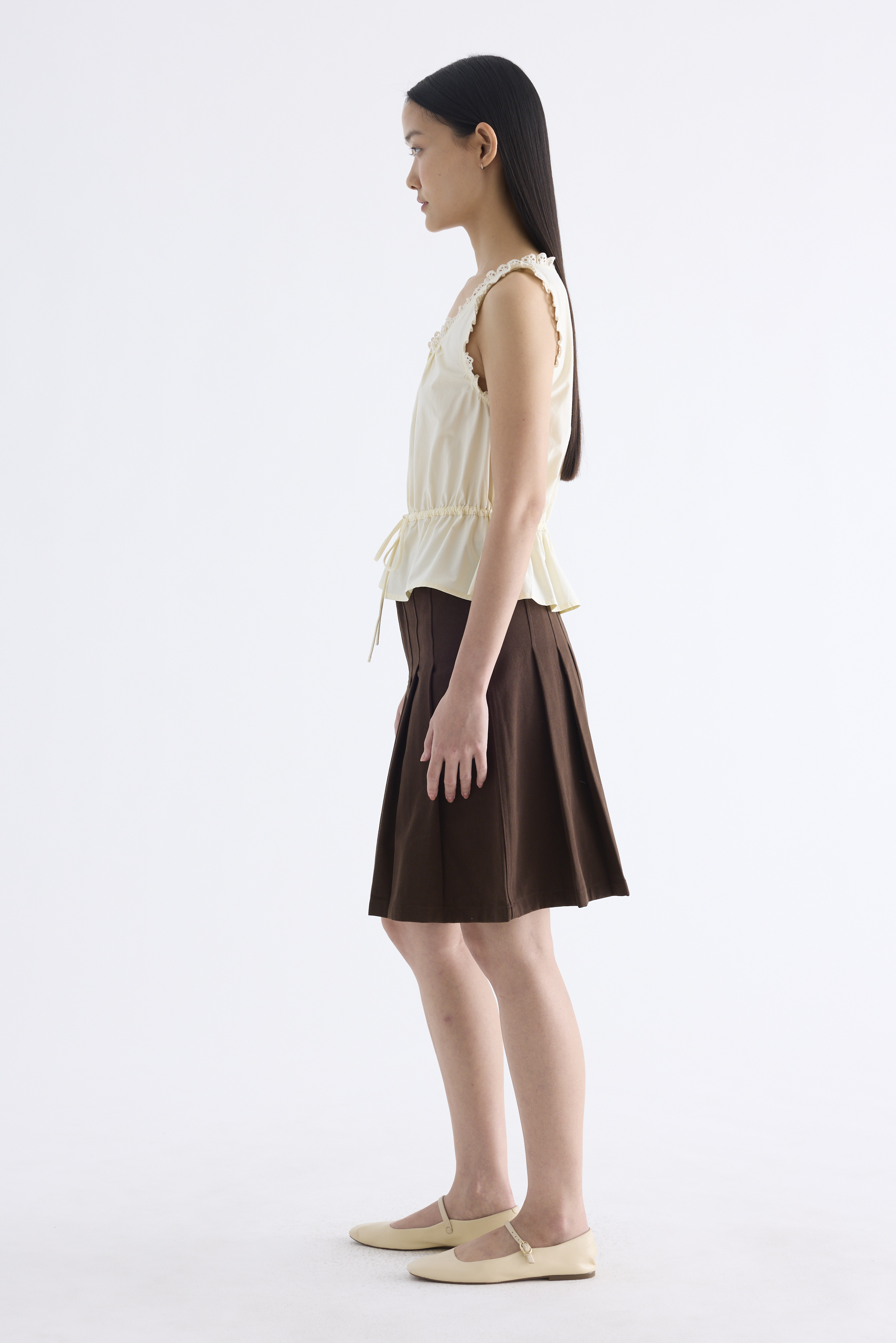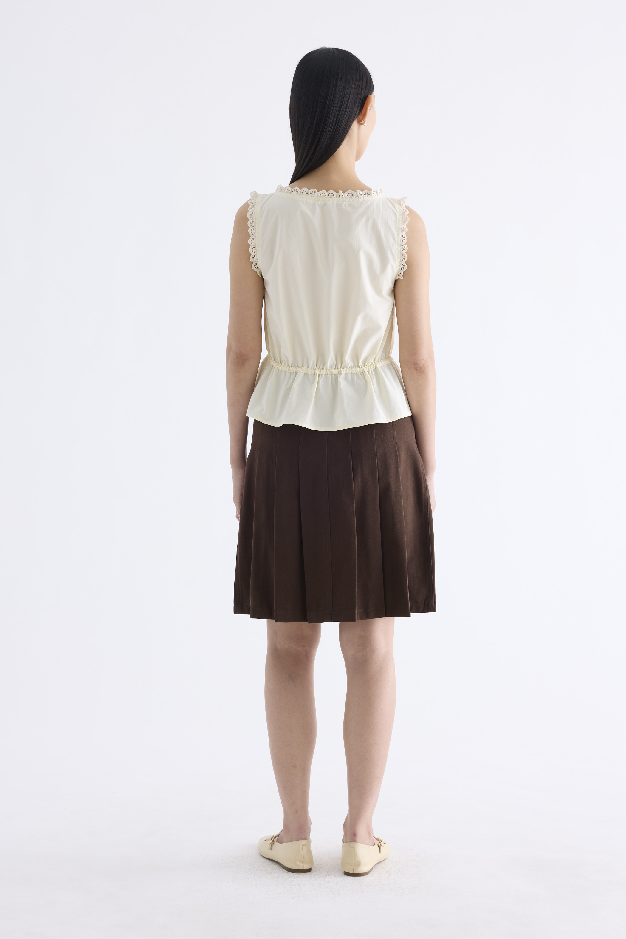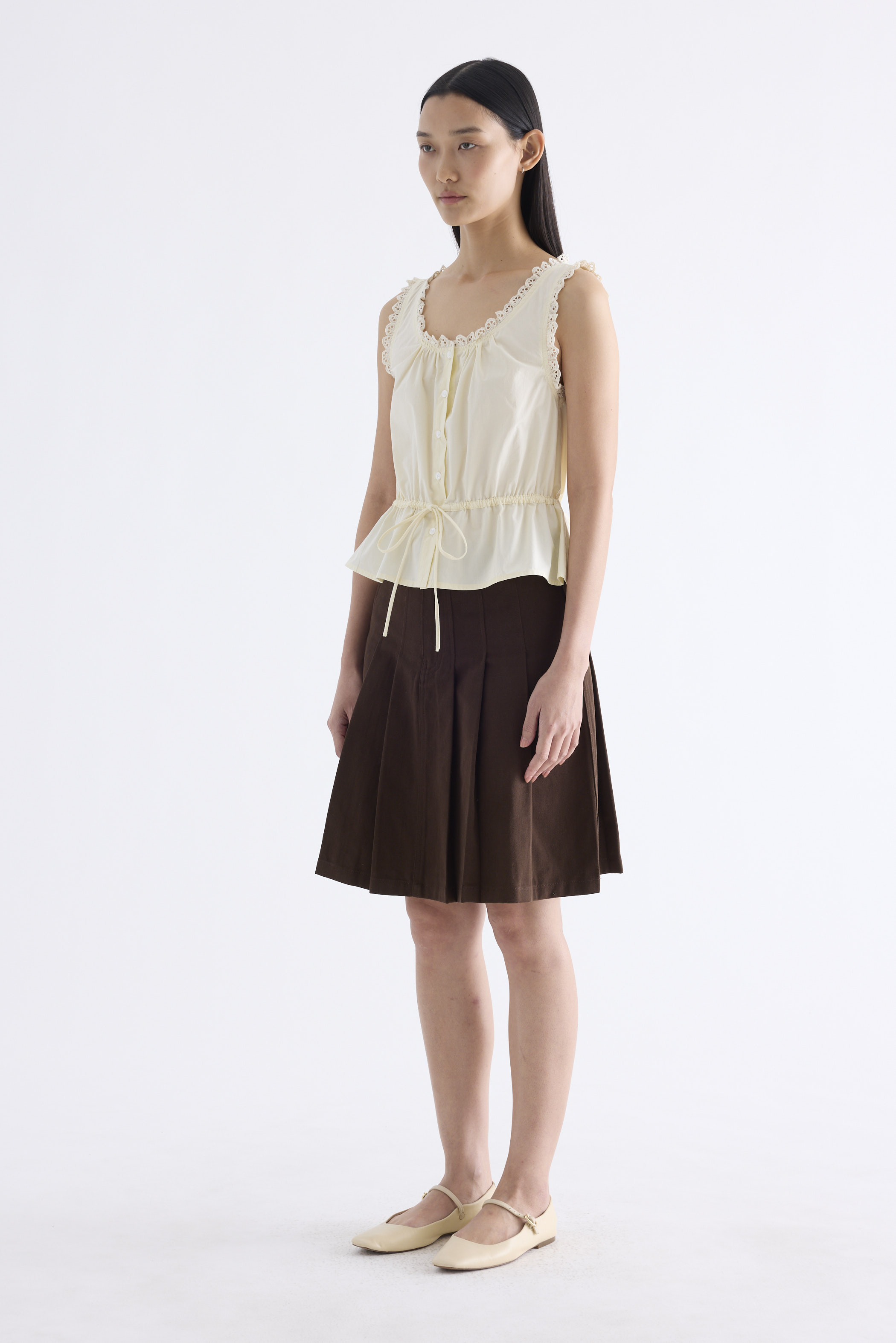 Details first. Made from smooth and softly structured cotton, this sleeveless top features a lace-trimmed U-shaped neckline, lace-trimmed shoulder straps, an adjustable drawstring waist-tie and a button-down front. Worn in a slim fit.