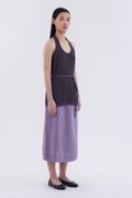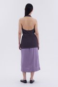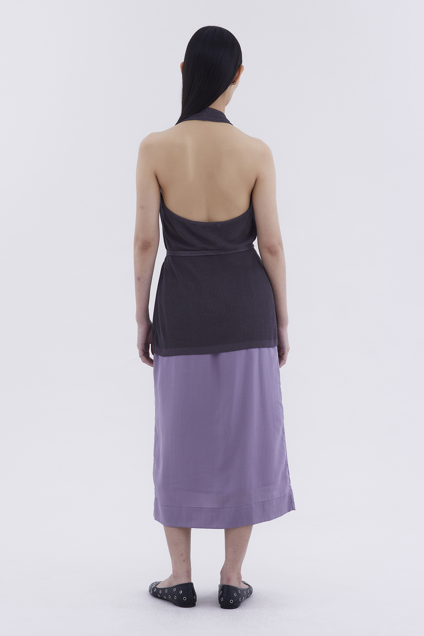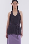 Cool. Made from light and airy knit, this longline top features a halter neckline, an open back and an attached waist tie-strap. Worn in a slim fit.